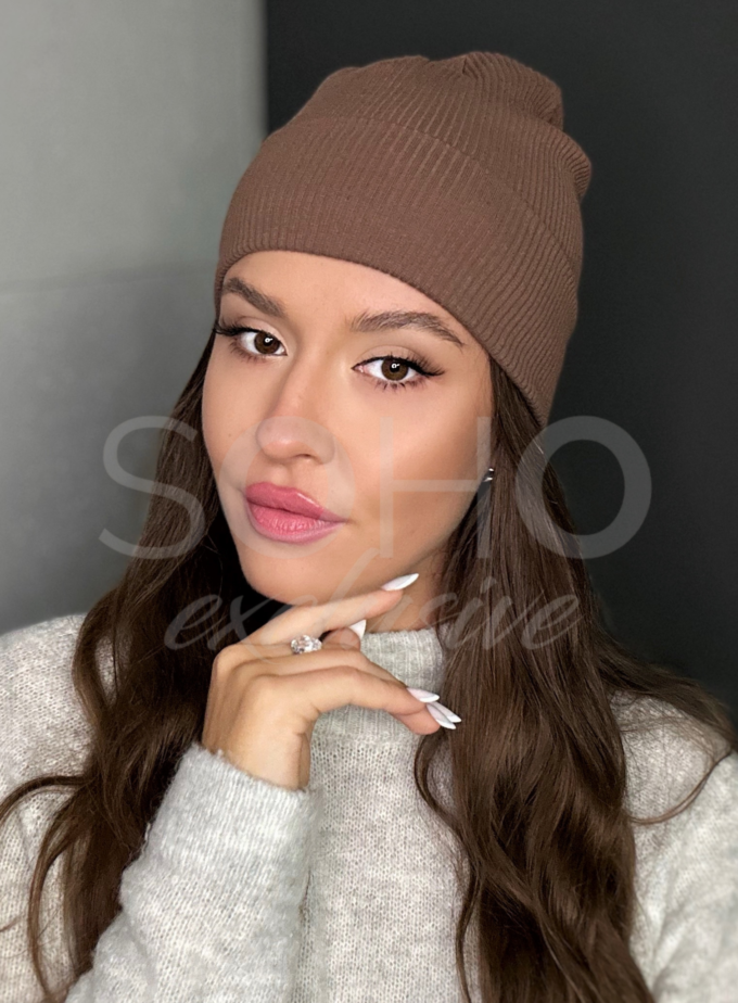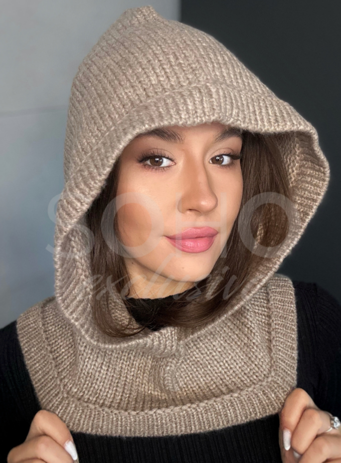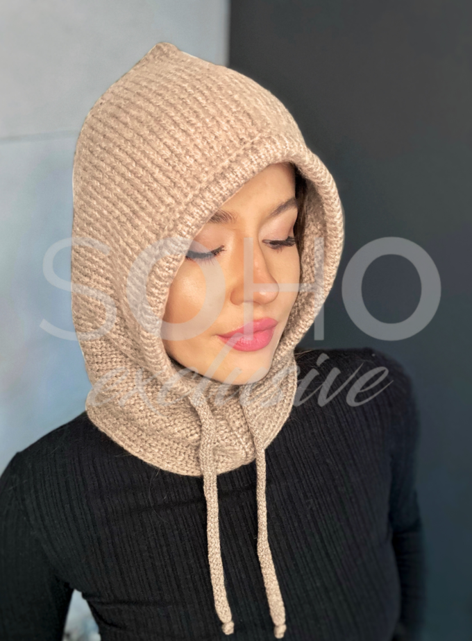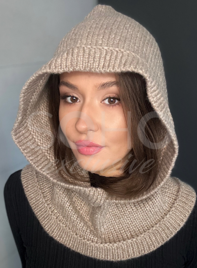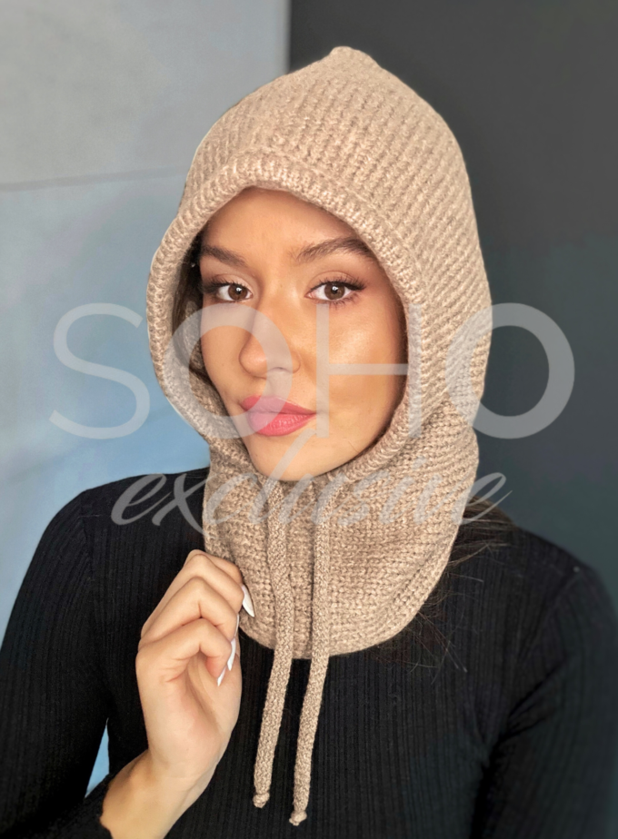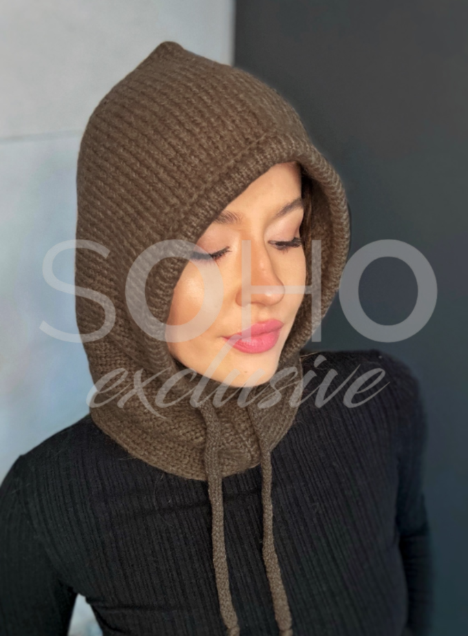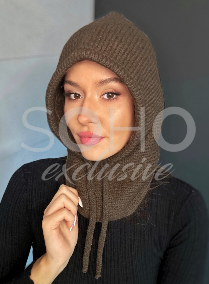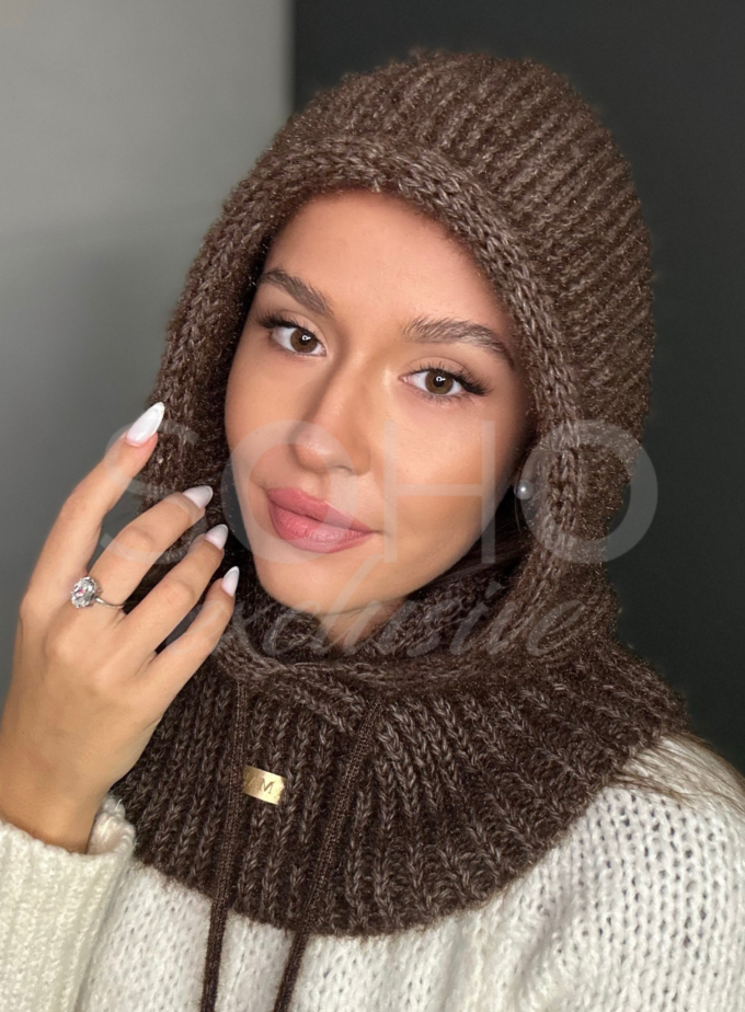 Płaszcz alpaka damski kobiecy wygodny modny sweter długi next kaptur suwak brązowy 2181