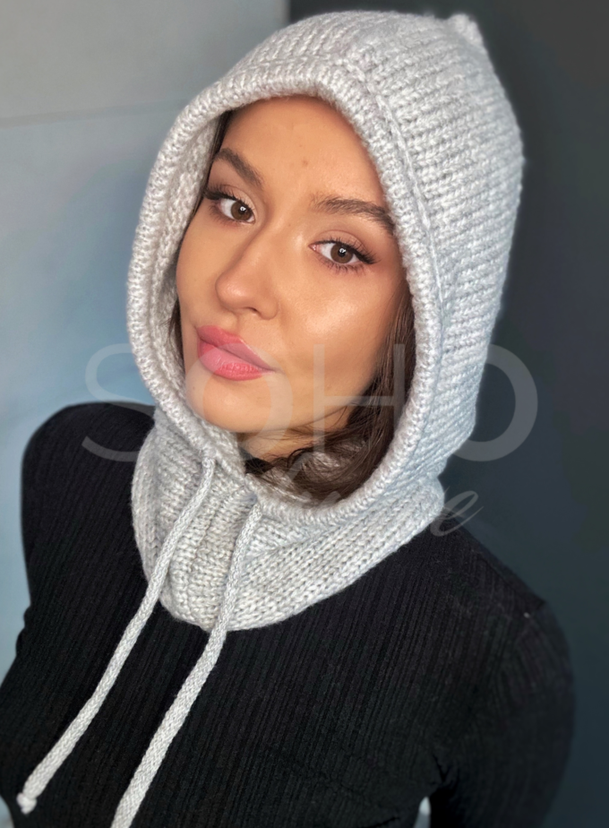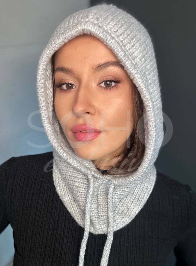Płaszcz alpaka damski kobiecy wygodny modny sweter długi next kaptur suwak szary 2181