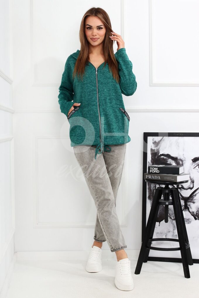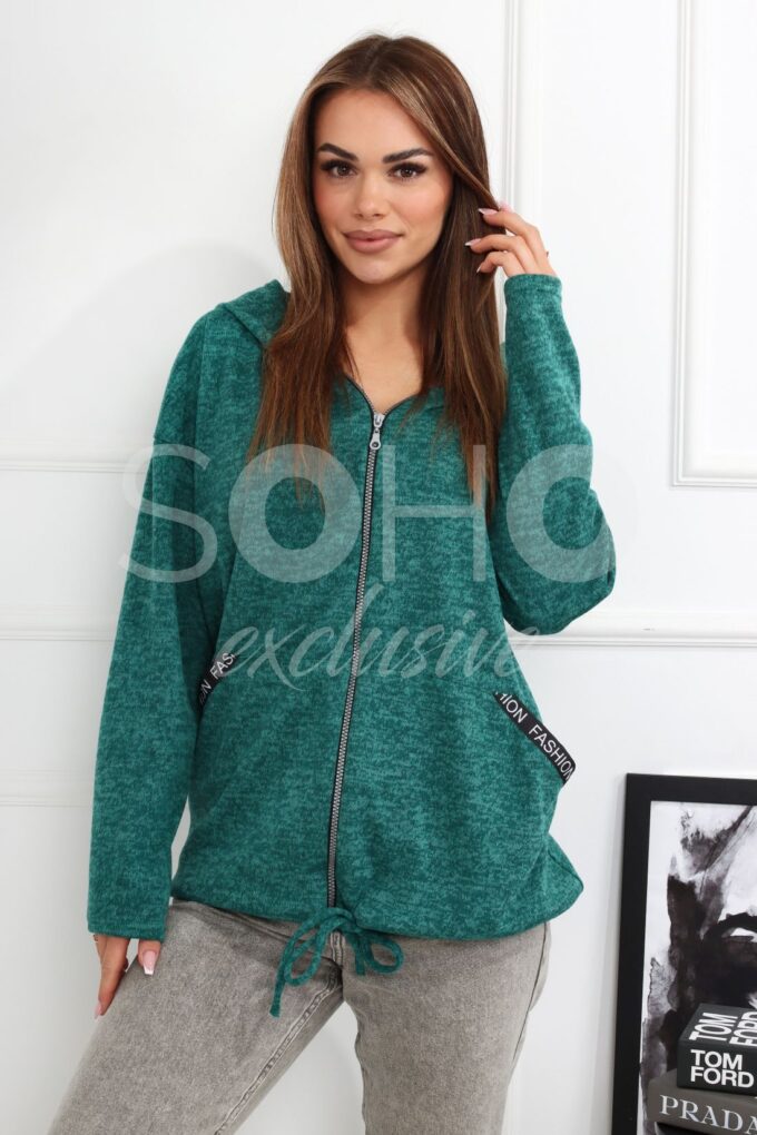 Bluza damska z kapturem oversize zielona 2702