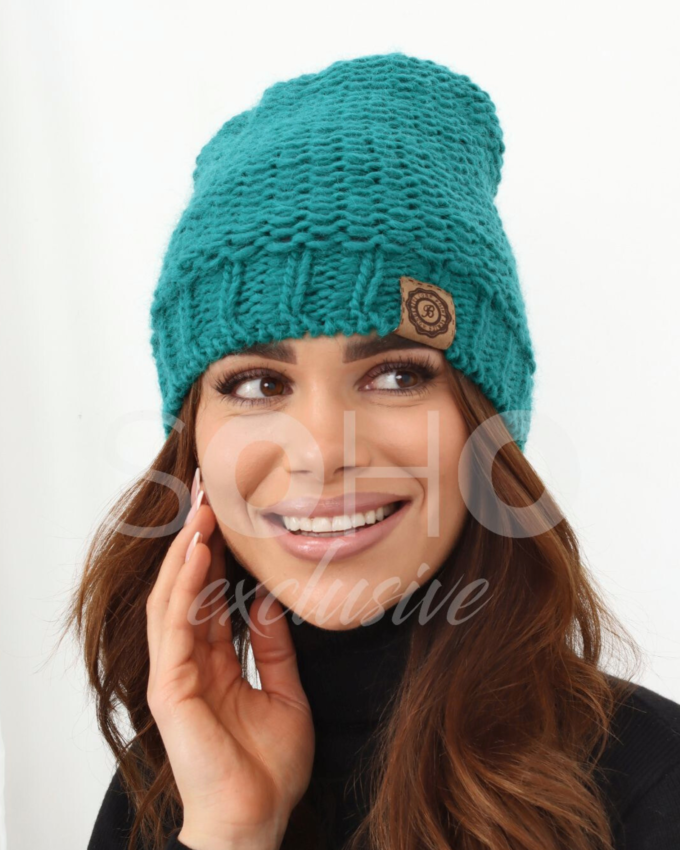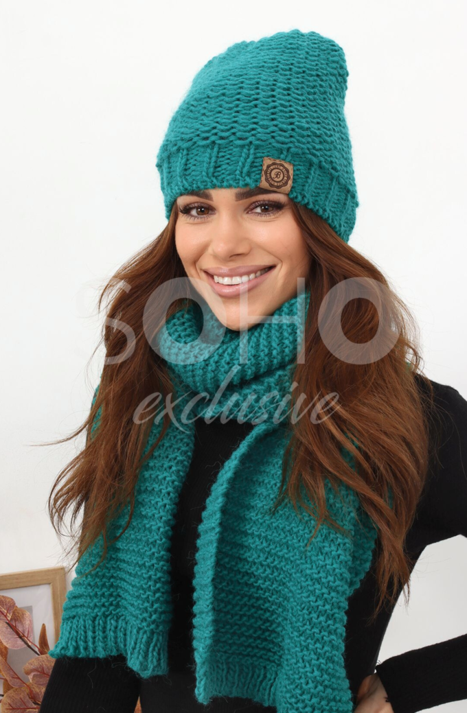 Komplet damski czapka beanie komin golf tuba duży zestaw zielony ciemny 2476
