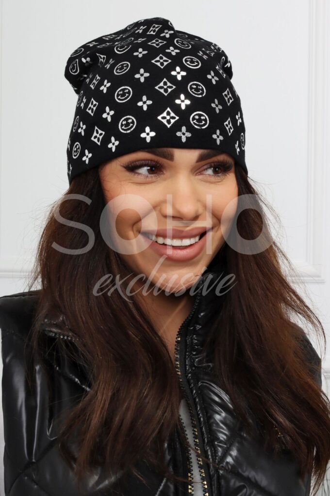 Czapka ciepła zimowa polski wygodna gruba kobieca butelkowa zielona z czarnym 2503