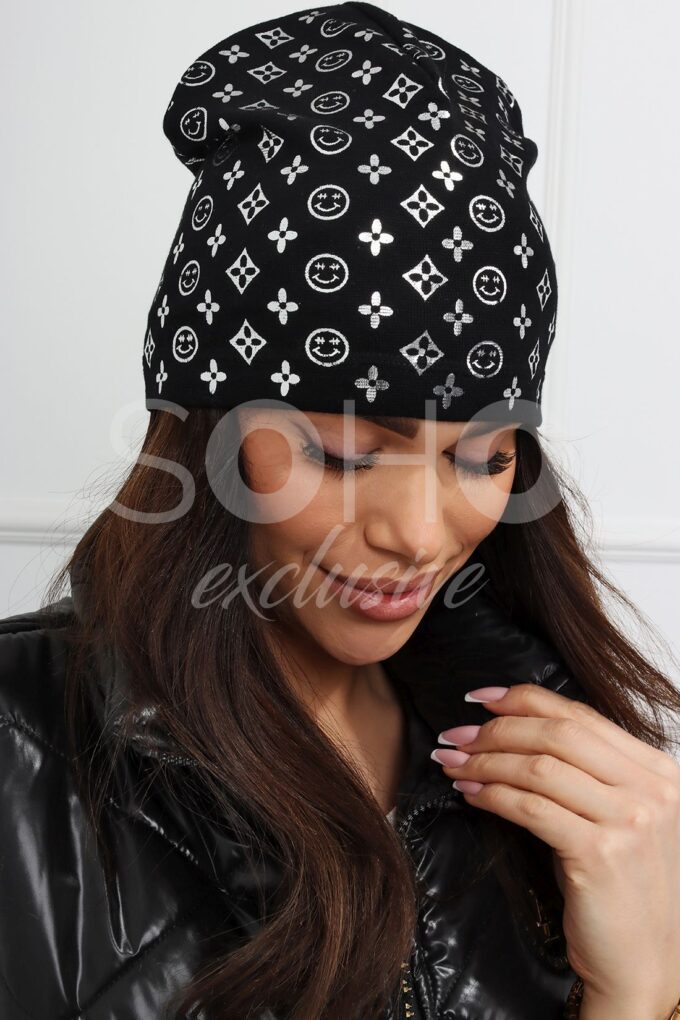 Czapka ciepła zimowa polski wygodna gruba kobieca karmelowa z czarnym 2503