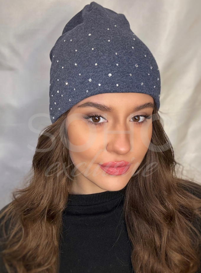 Czapka damska sportowa modna wygodna ciepła chabrowa 2427