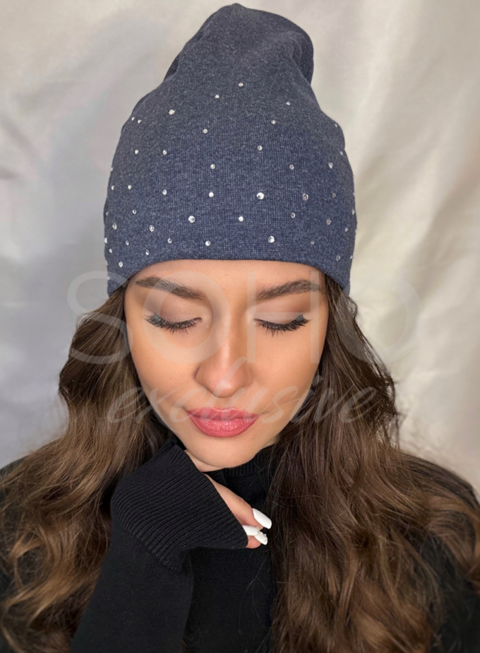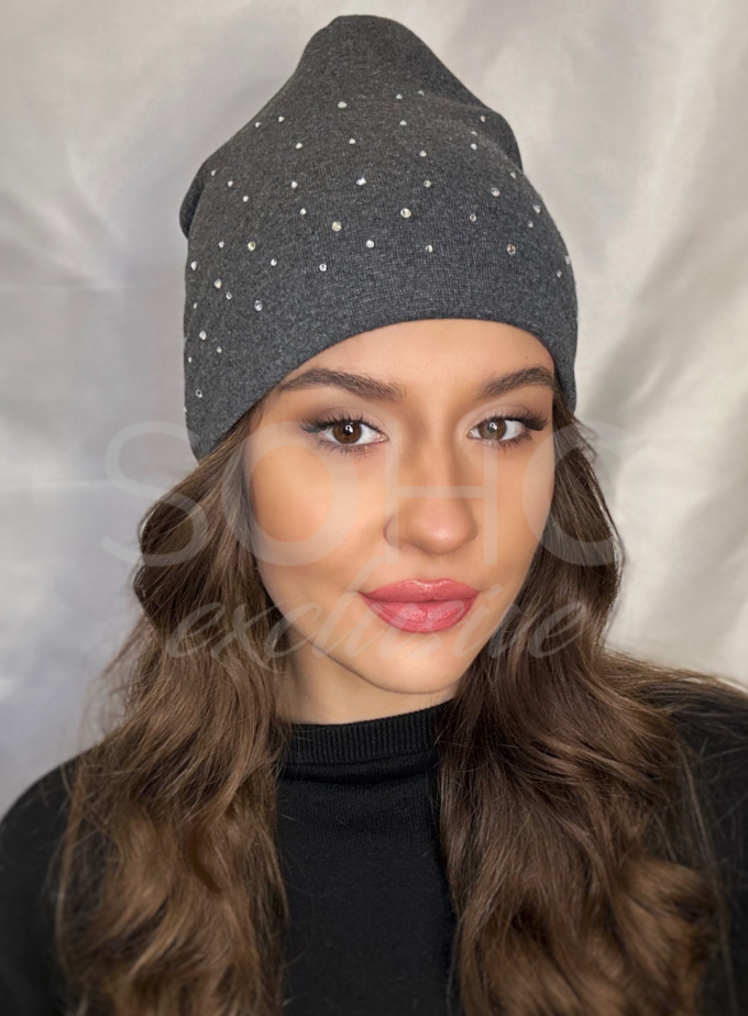 Czapka damska modna wygodna ciepła zimowa szara 2252