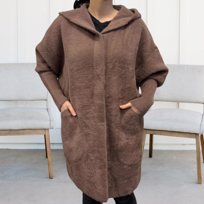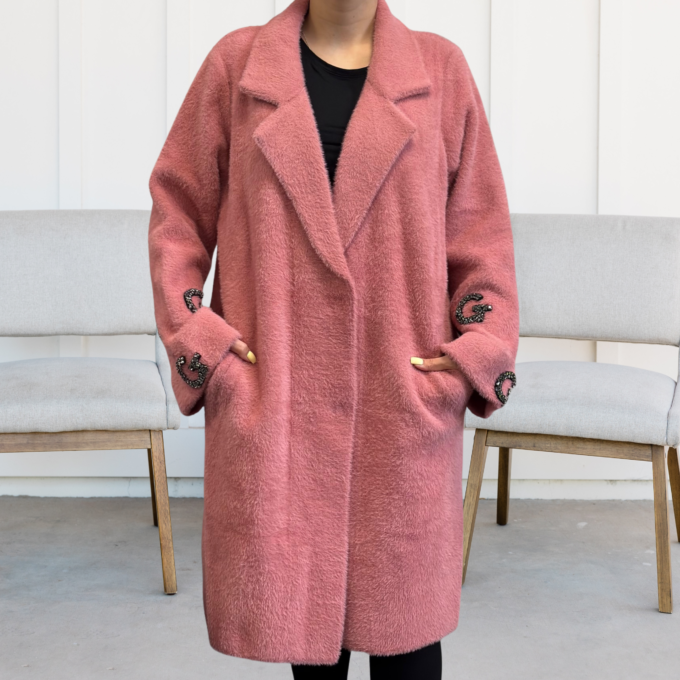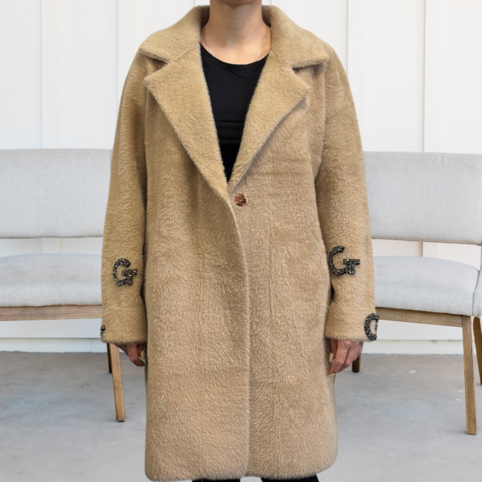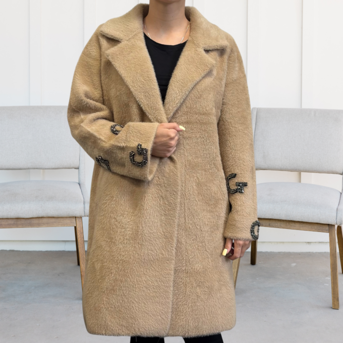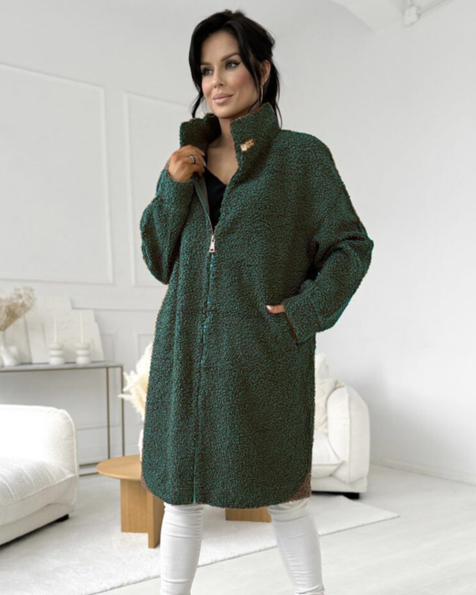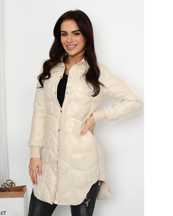 Kurtka damska modna wygodna kobieca długa klasyczna beżowa 1917