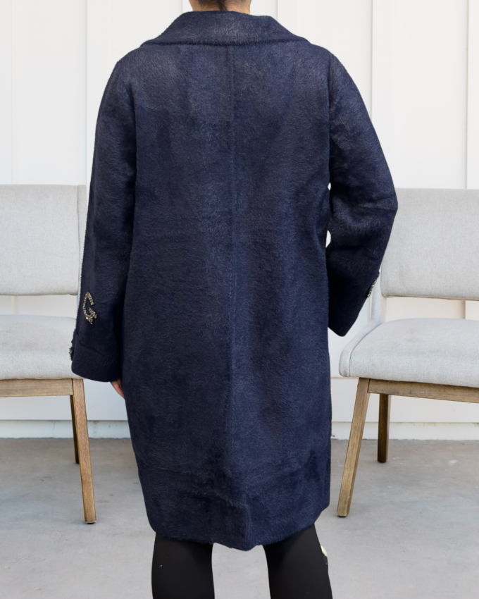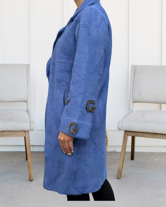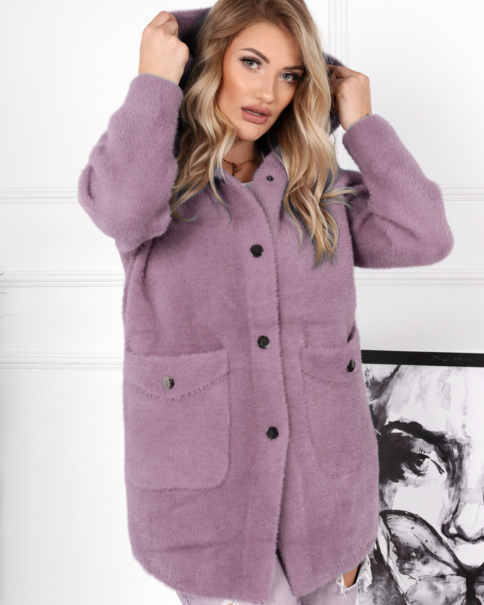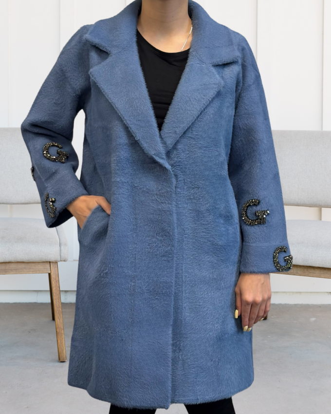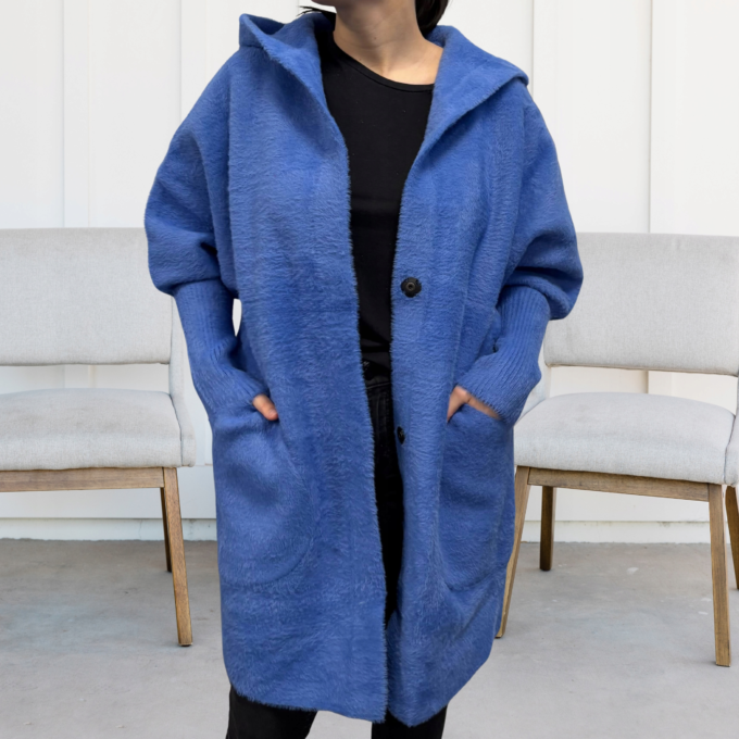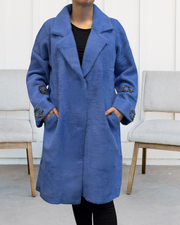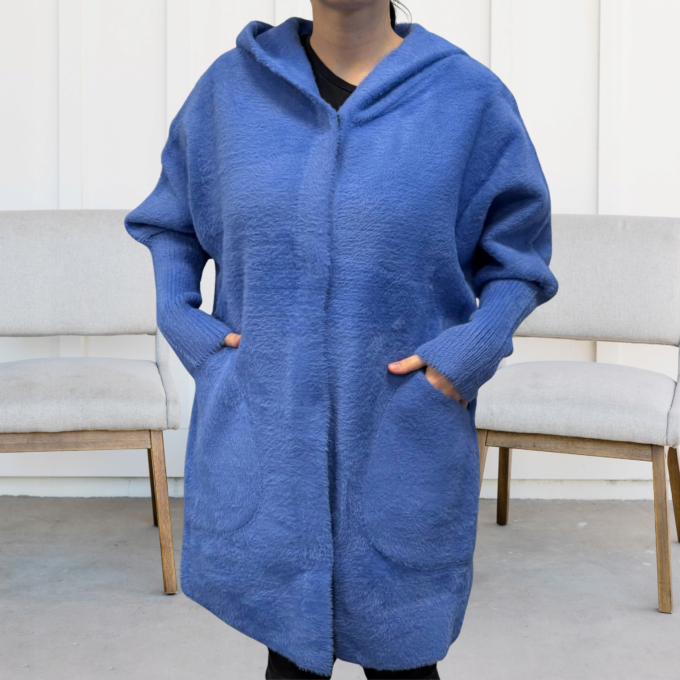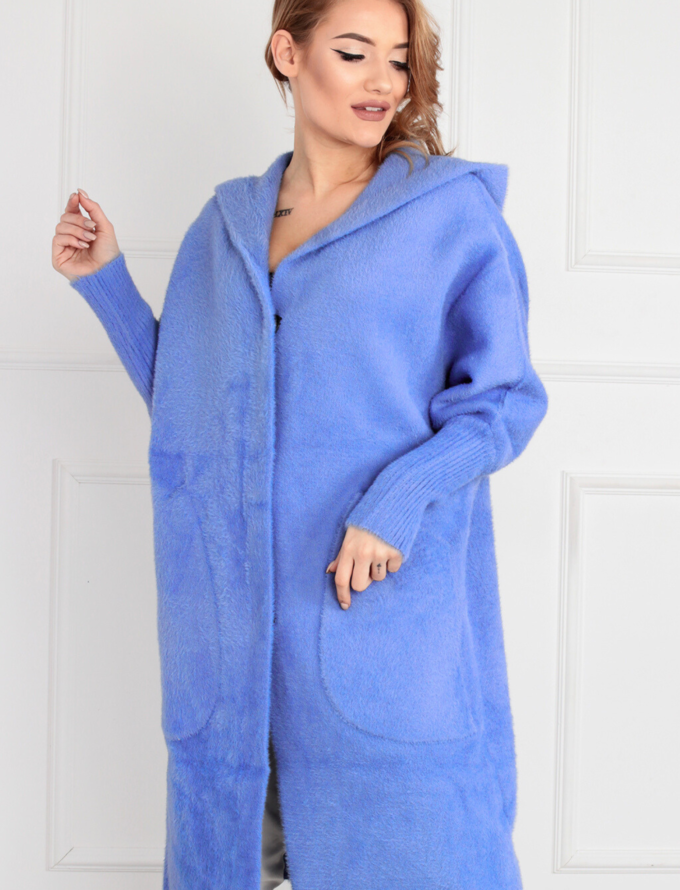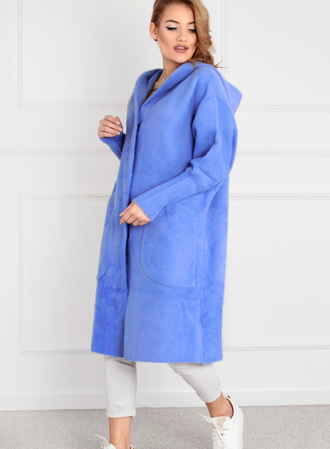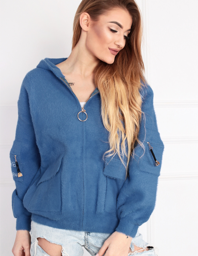 Kurtka damska parka modna wygodna kaptur futro zimowa ciepła niebieska 2232