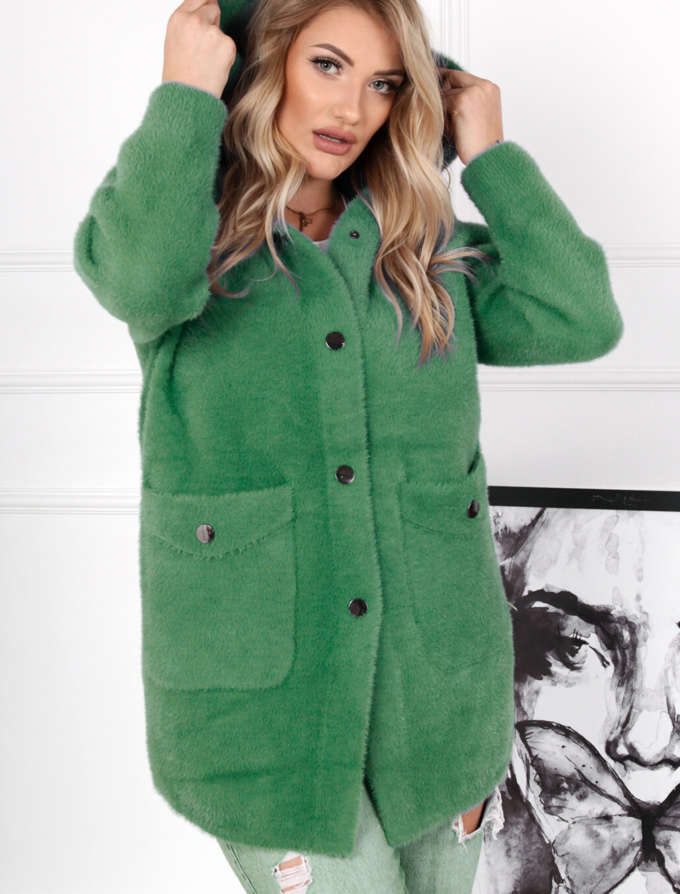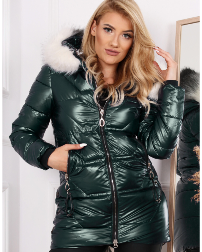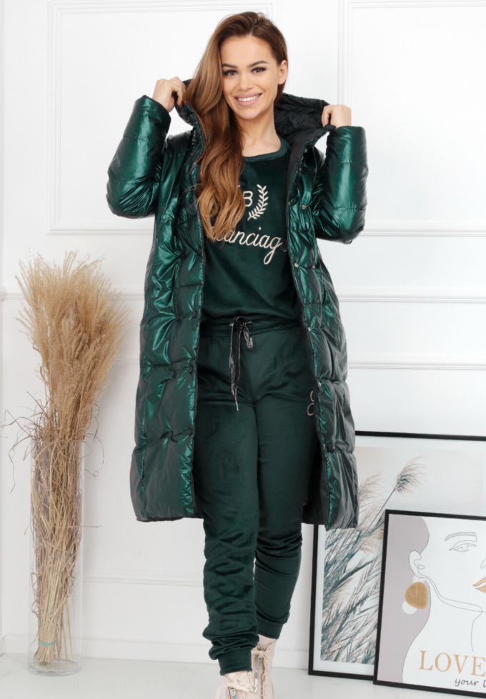 Kurtka damska pikowana płaszcz dwustronny z kapturem butelkowa zielona 2215