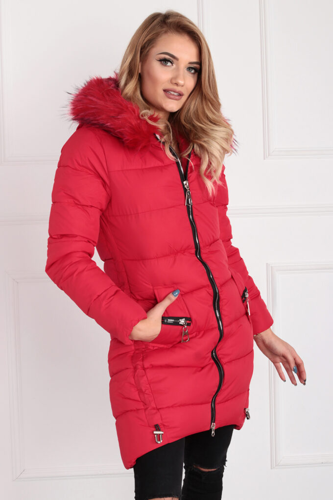 Kurtka damska parka modna wygodna kaptur futro zimowa ciepła czarna 2232