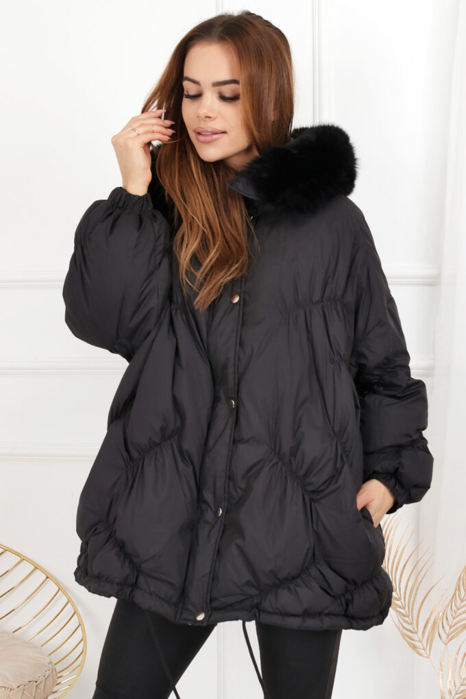 Kurtka puchowa damska modna wygodna elegancka ciepła czarna 2237