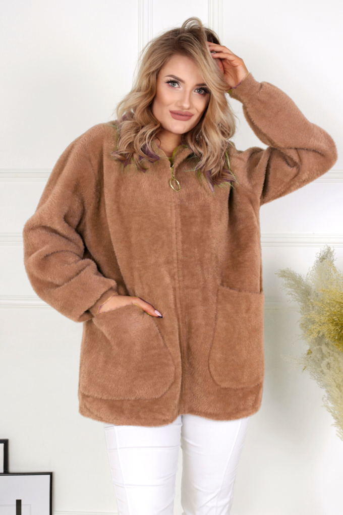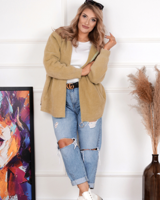 Kurtka damska modna wygodna kobieca długa klasyczna beżowa 1917