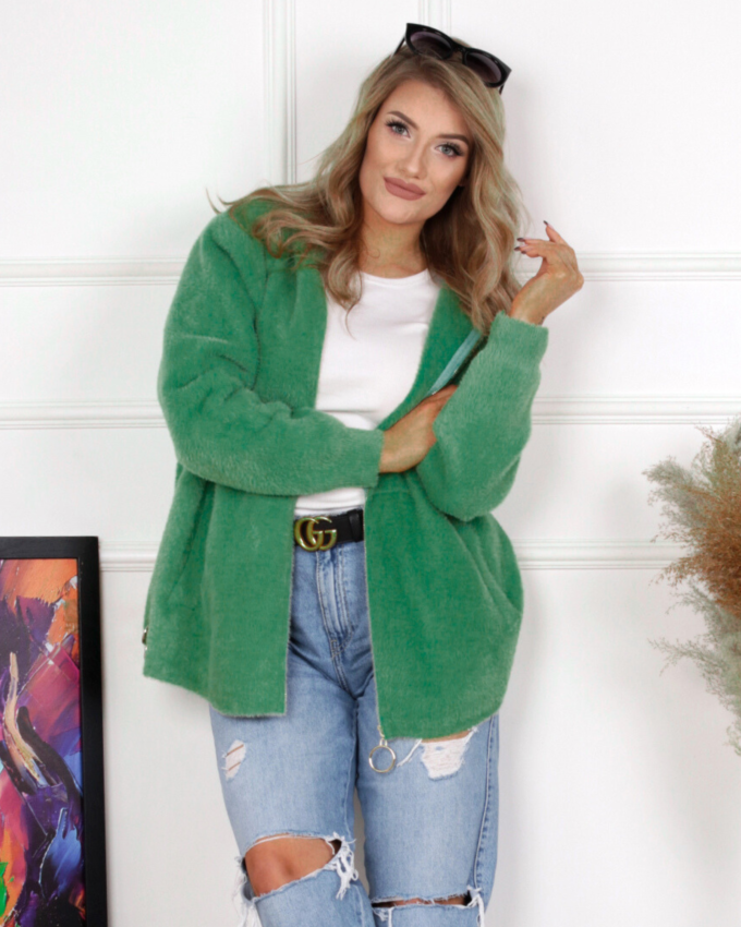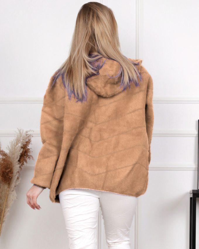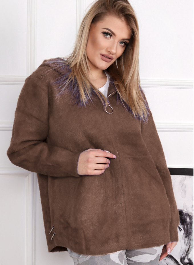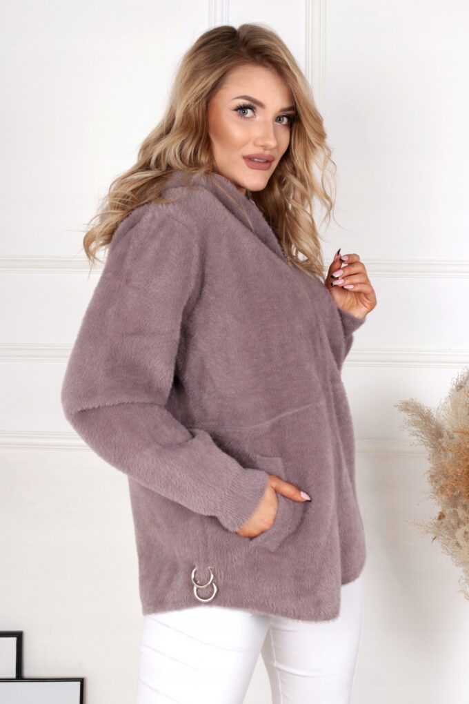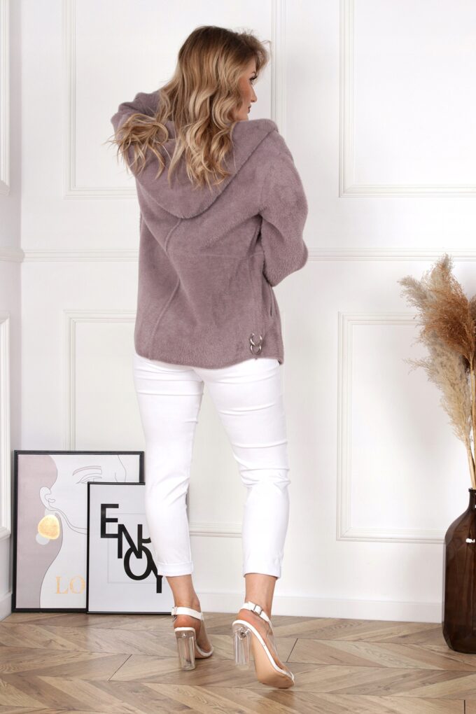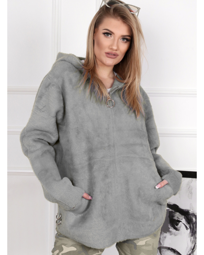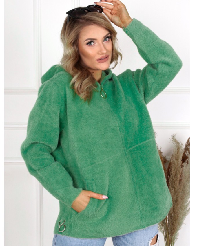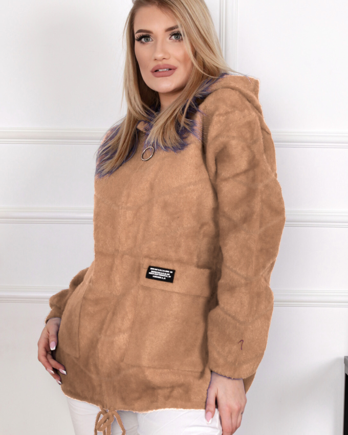 Bluza damska z kapturem modna wygodna welurowa khaki 2953