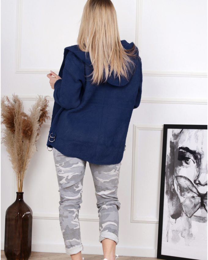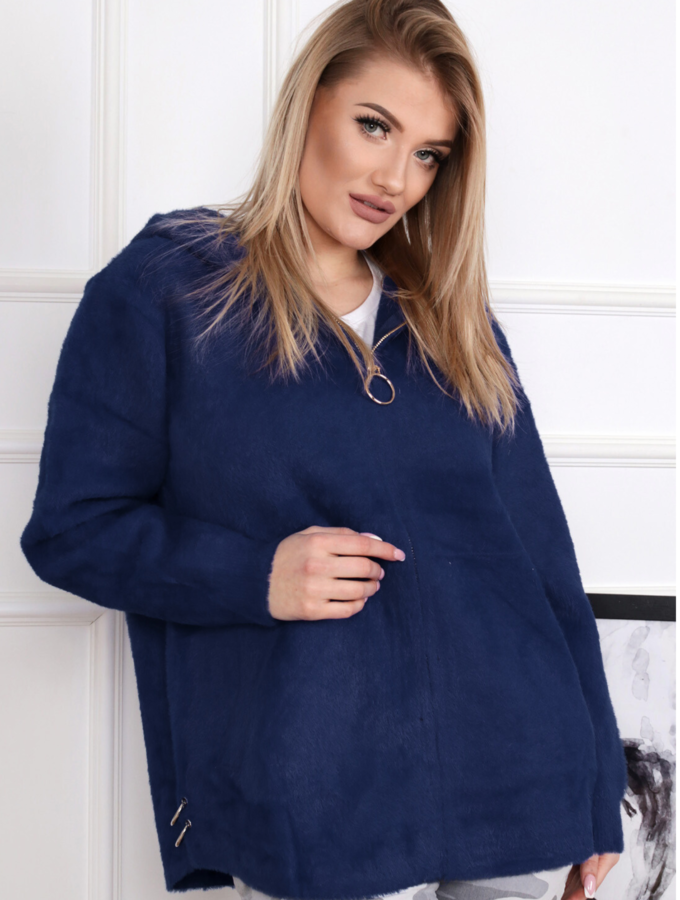 Kurtka damska parka modna wygodna kaptur futro zimowa ciepła niebieska 2232