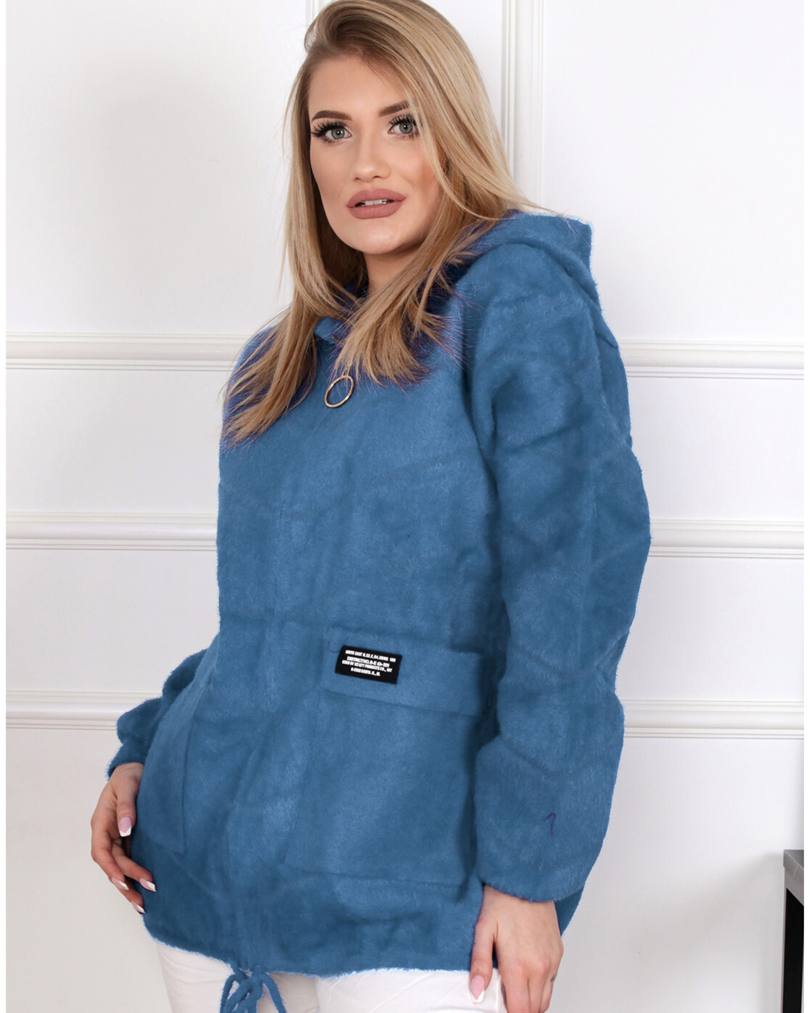 Alpaka damska płaszcz kurtka sweter ciepła krótka kaptur suwak wygodna jeansowa 2142