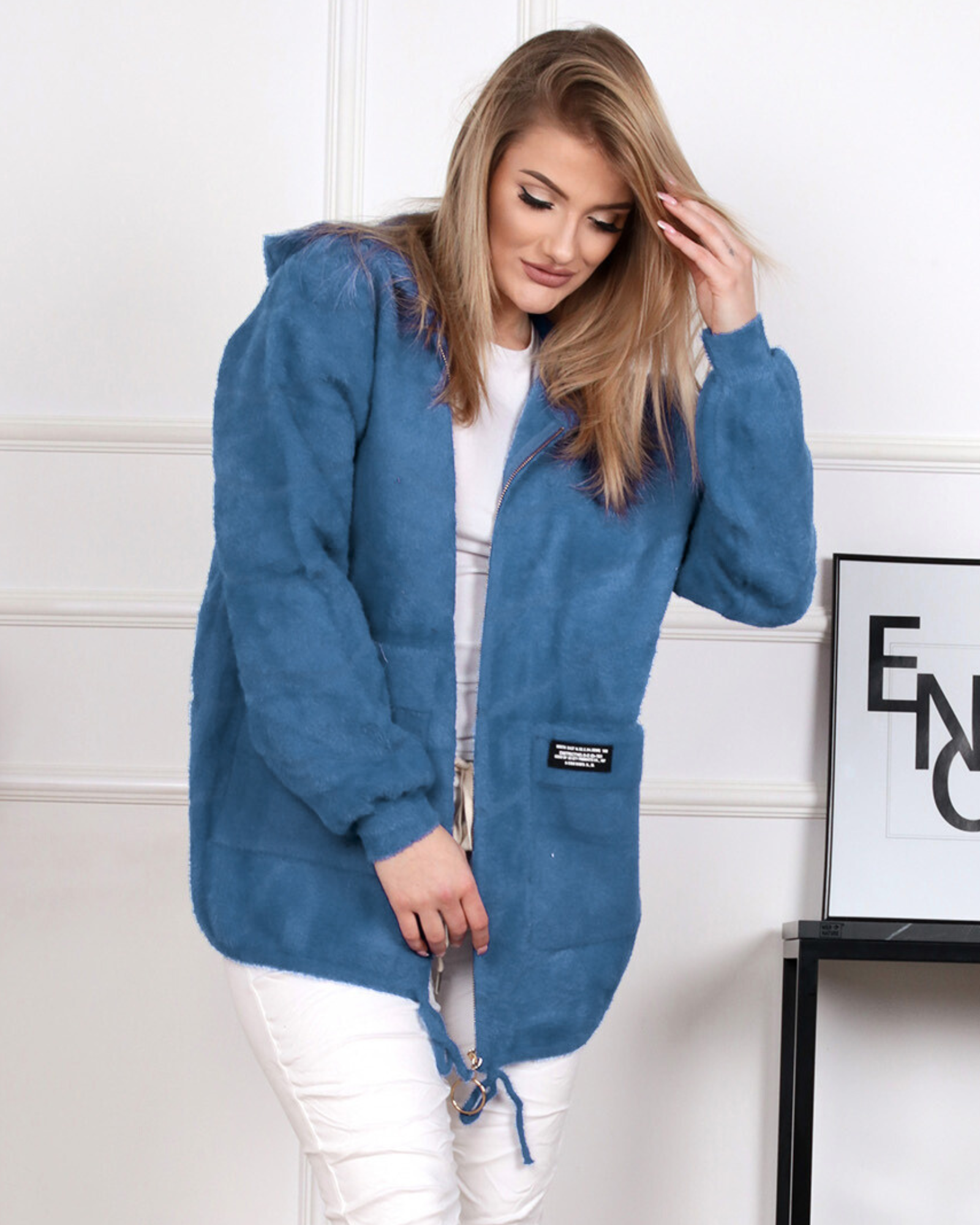 Napisz pierwszą opinię o „Alpaka damska płaszcz kurtka sweter ciepła krótka kaptur suwak wygodna jeansowa 2142”
