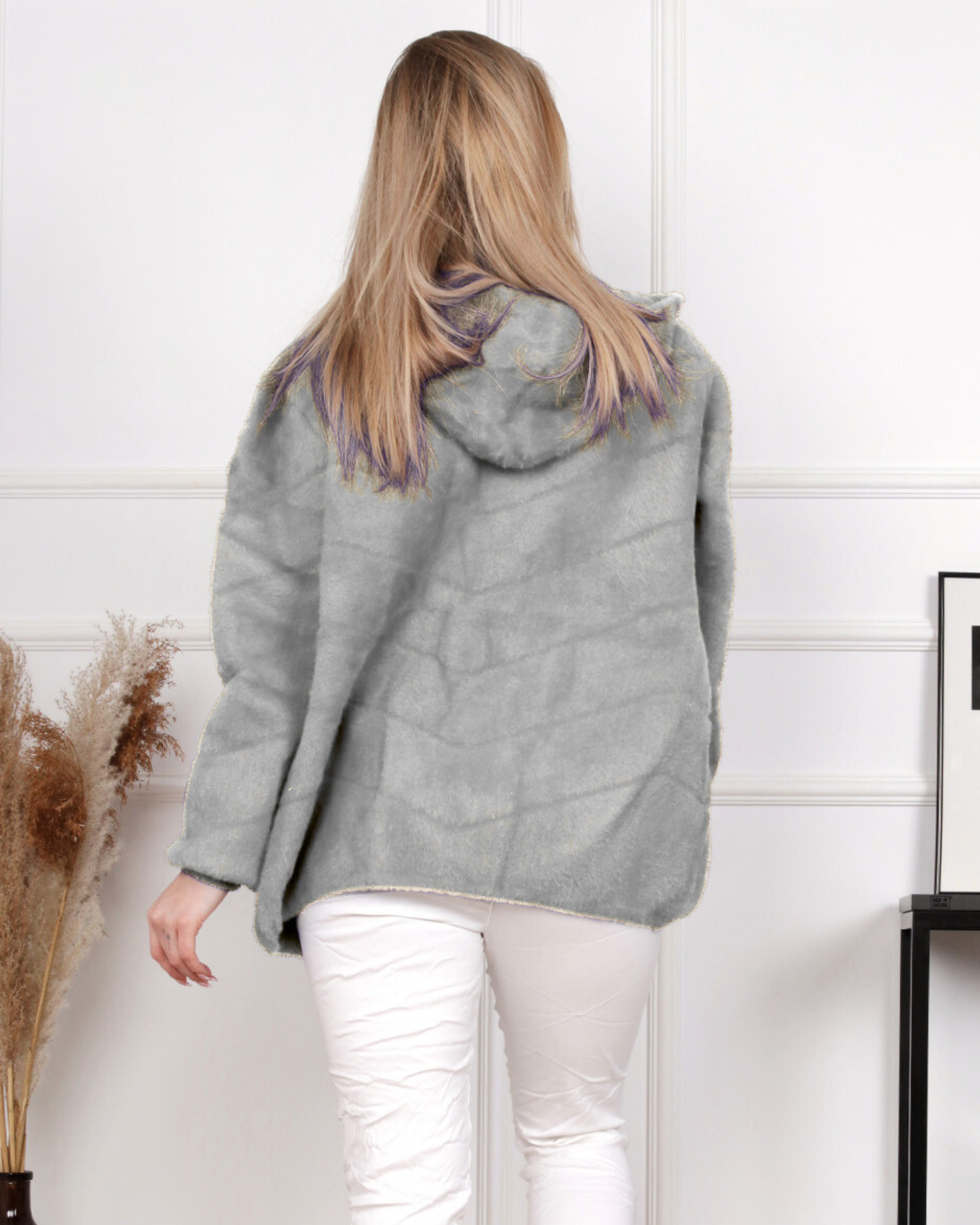 Napisz pierwszą opinię o „Alpaka damska płaszcz kurtka sweter ciepła krótka kaptur suwak wygodna szara 2142”