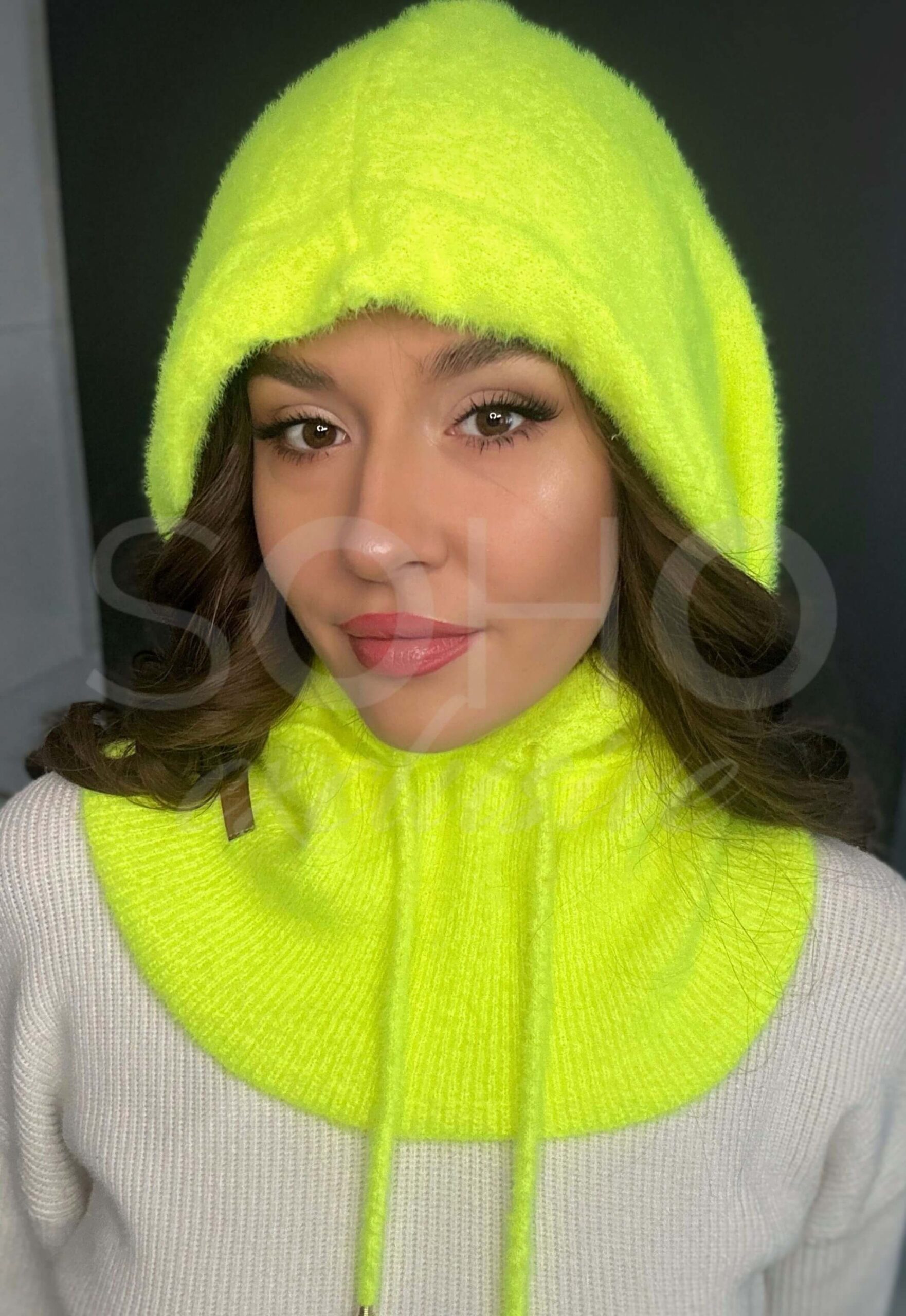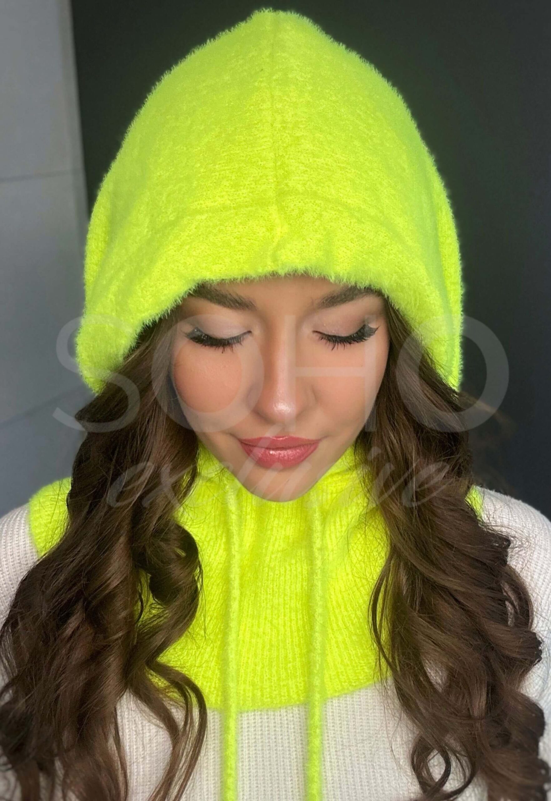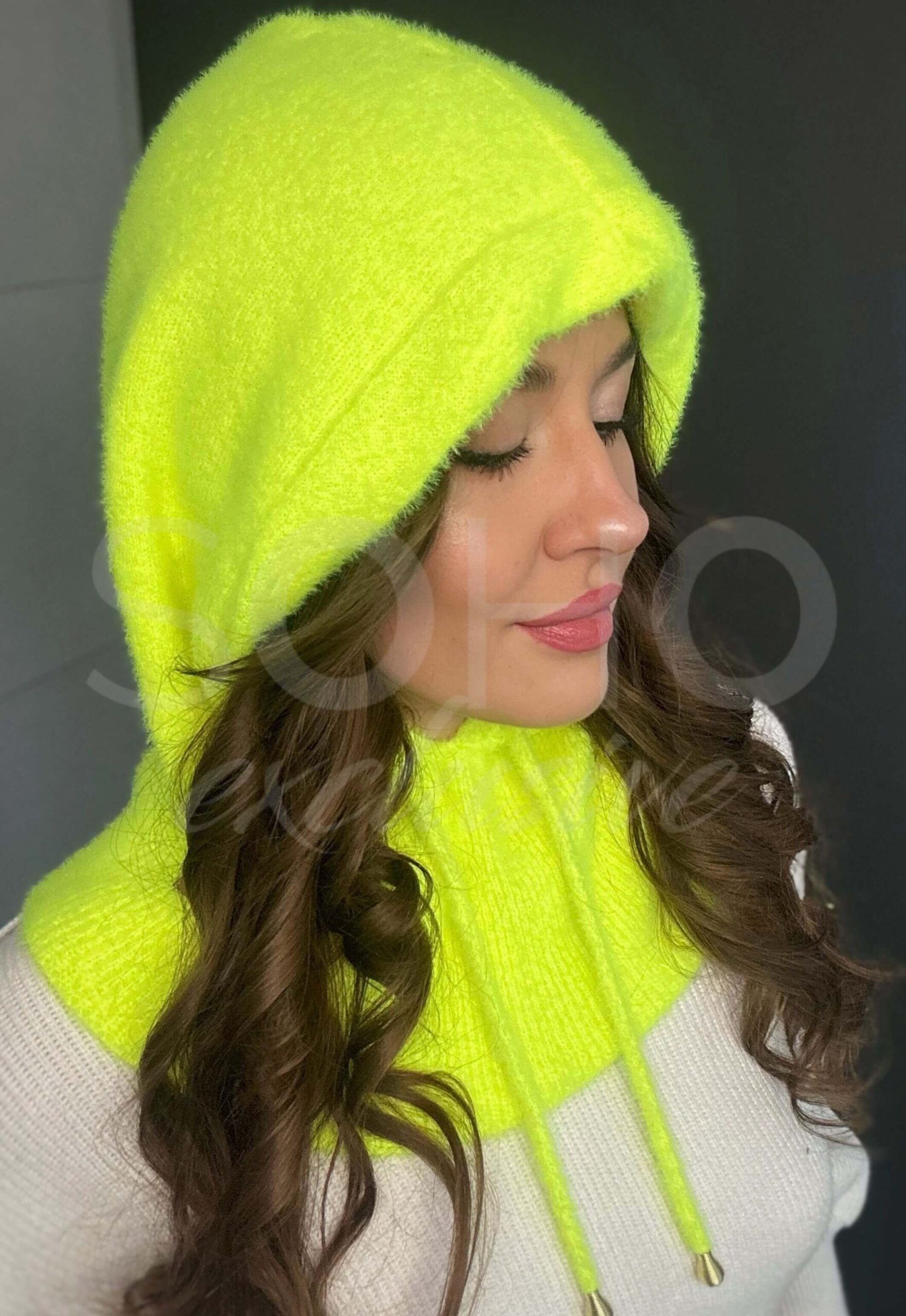 Balaclava kaptur czapka kominiarka komin golf alpaka uniseks polski neonowa żółta 3061