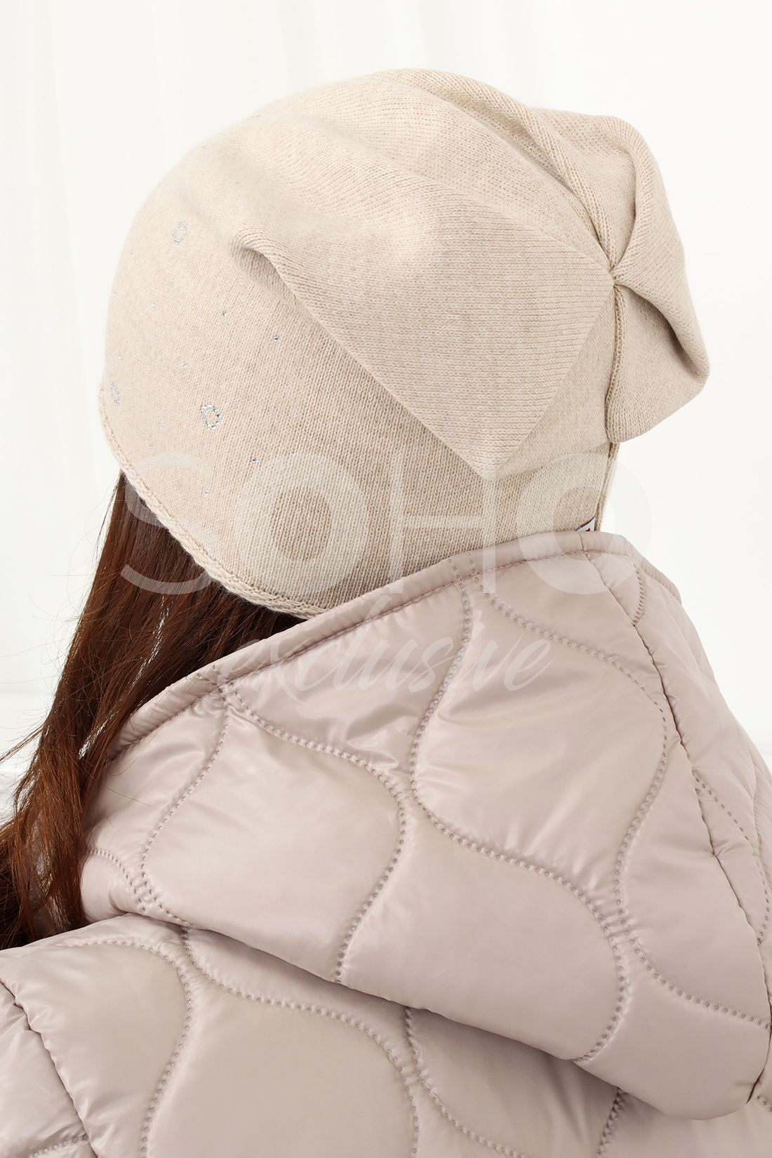 Czapka damska modna wygodna ciepła elegancka beżowa 2475