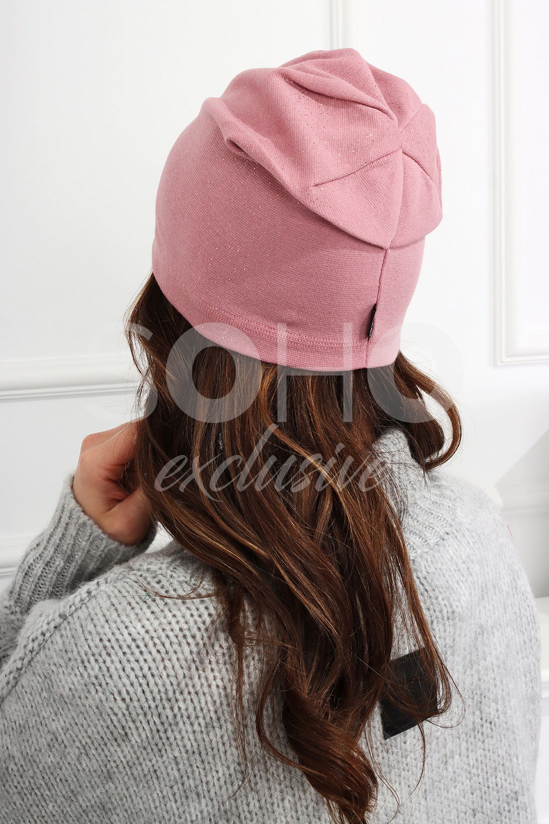 Czapka typu beanie/krasnal, delikatnie opadająca.