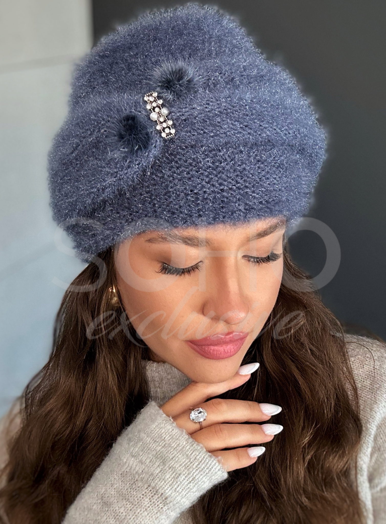 Czapka z elegancką ozdobą.