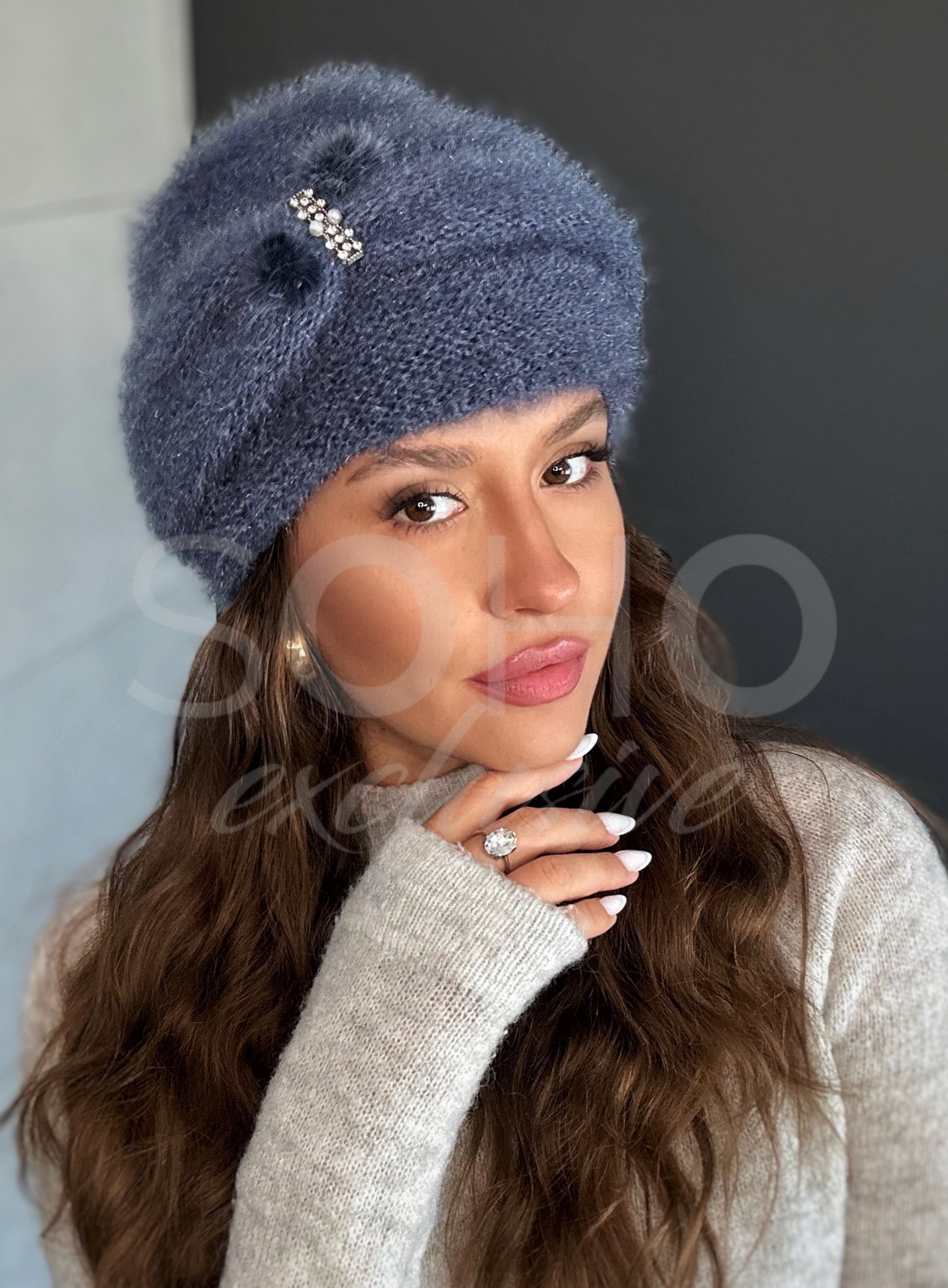 Czapka damska jesień zima wiosna ciepła wygodna kobieca elegancka jeansowa 2968