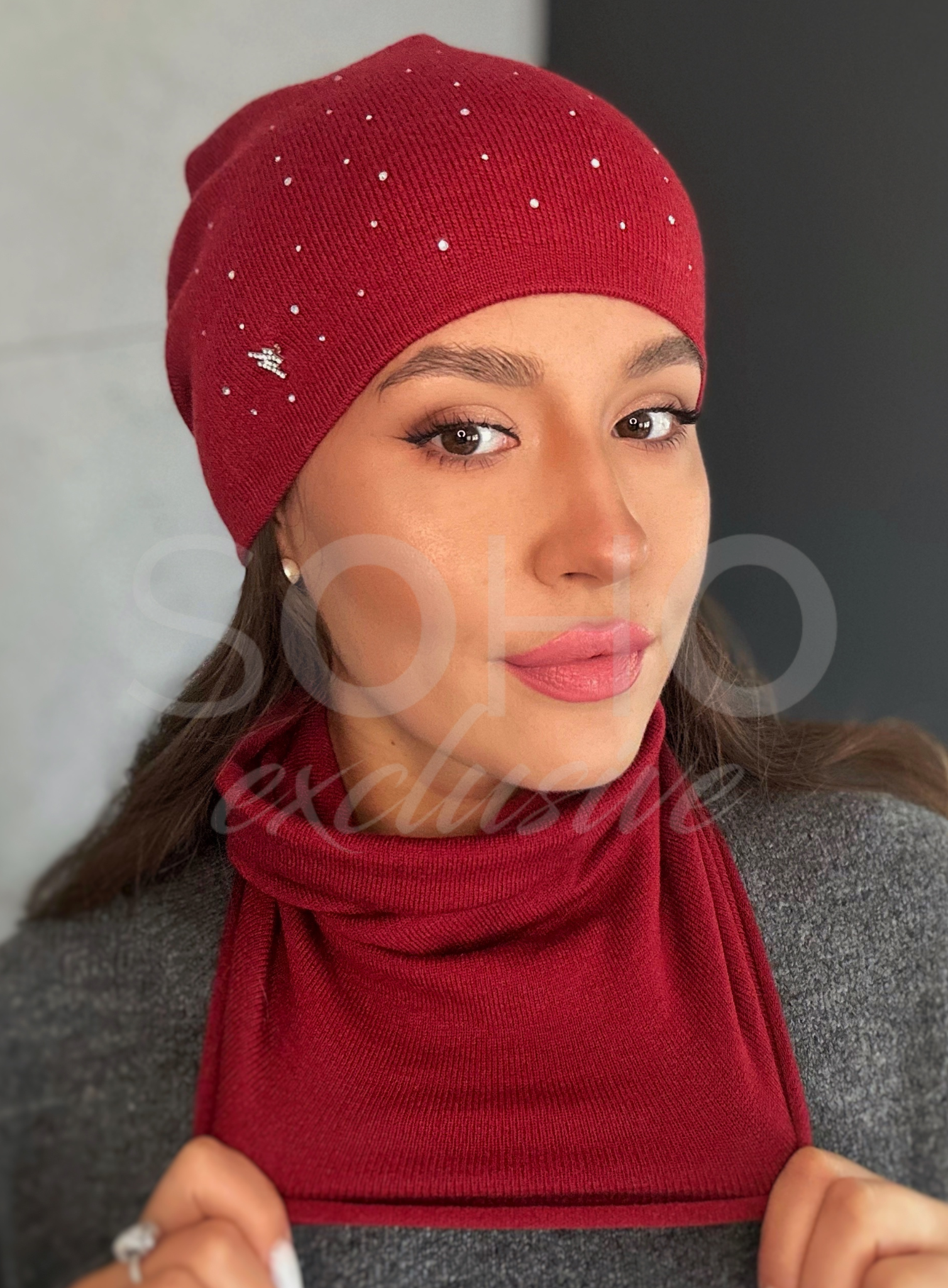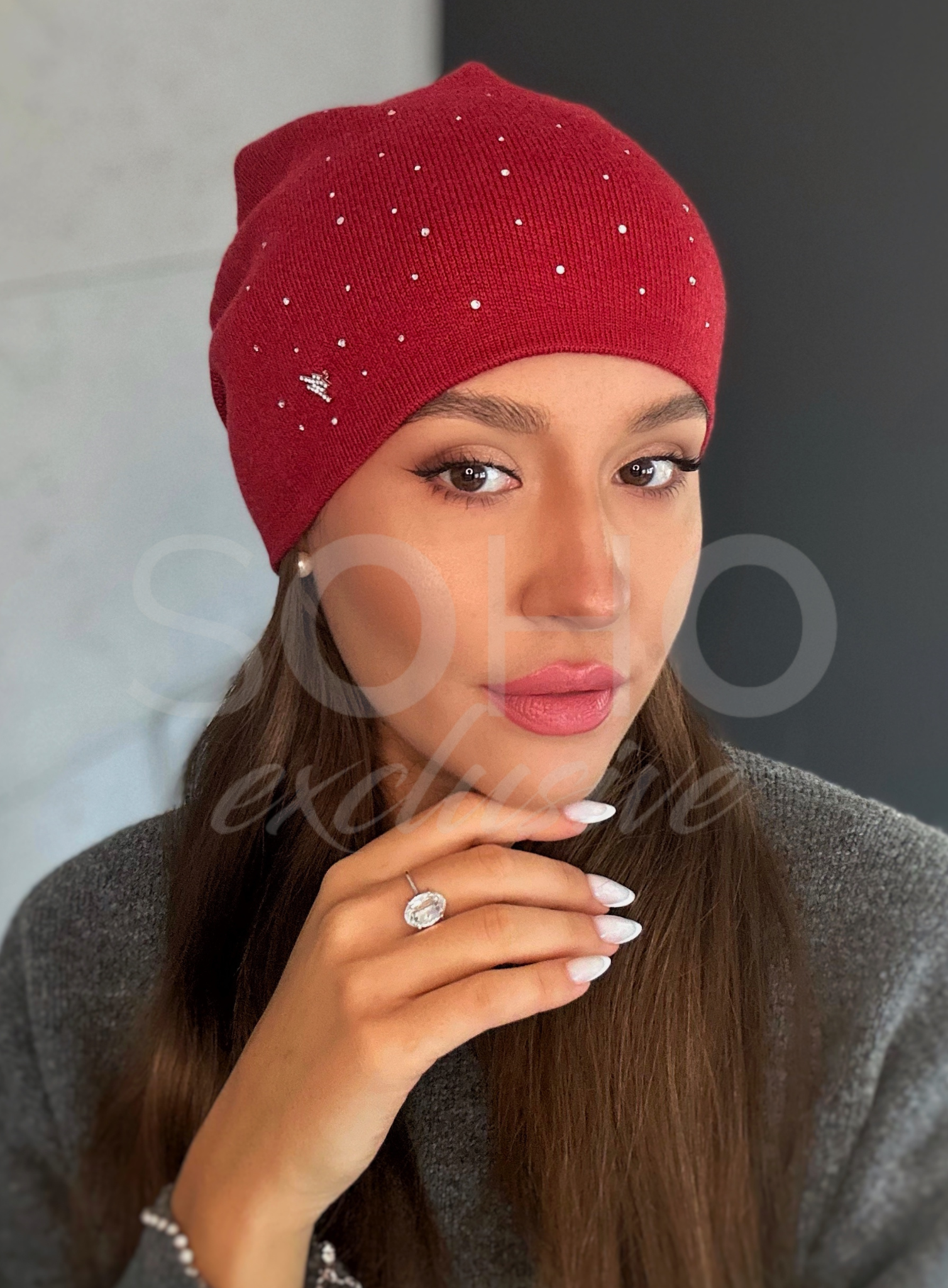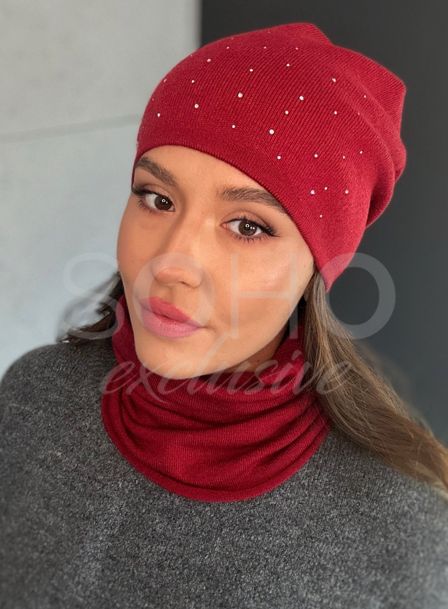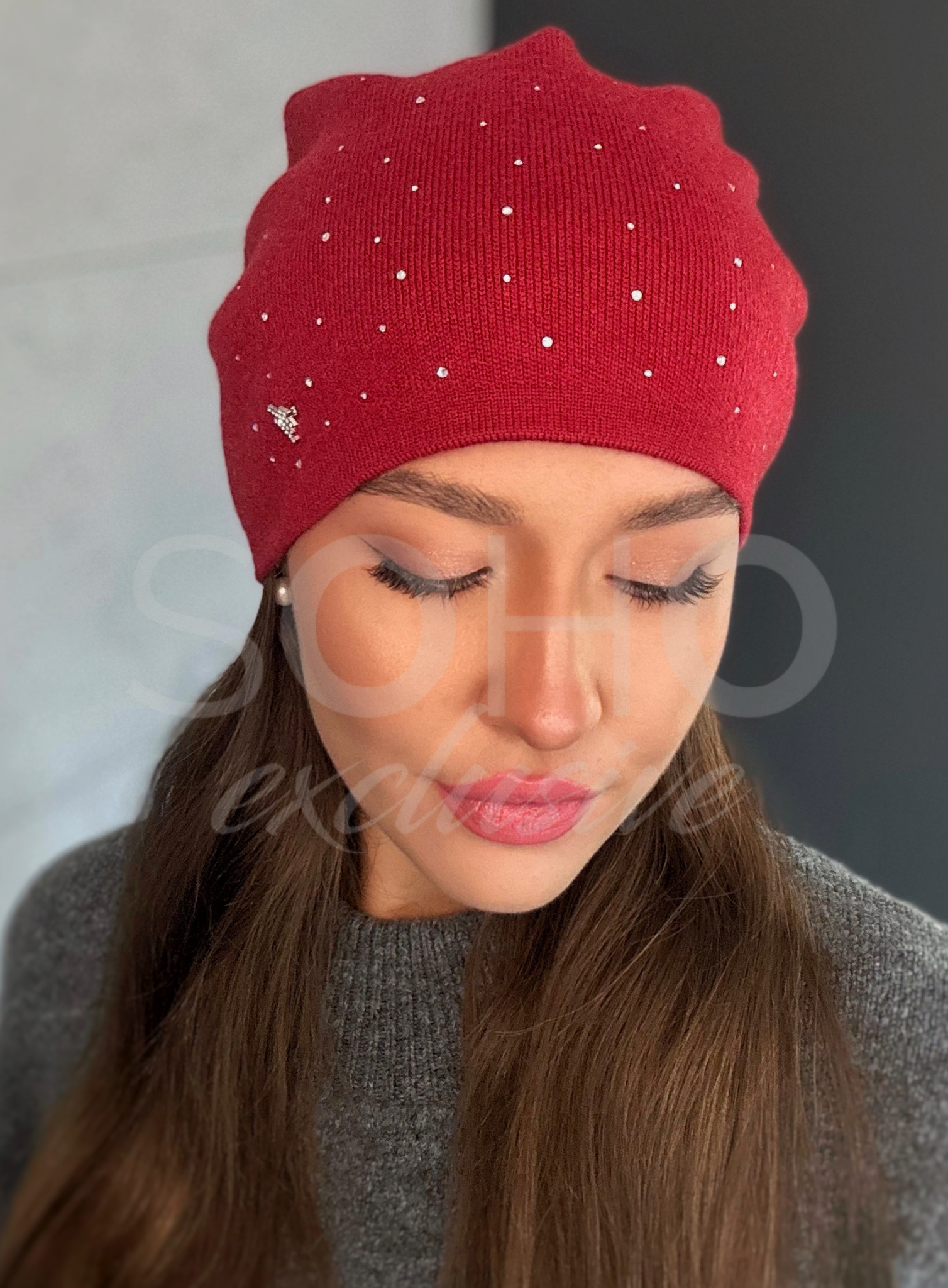 Czapka damska kobieca beanie elegancka jesień zima wiosna z wiskozy bordowa 3030
