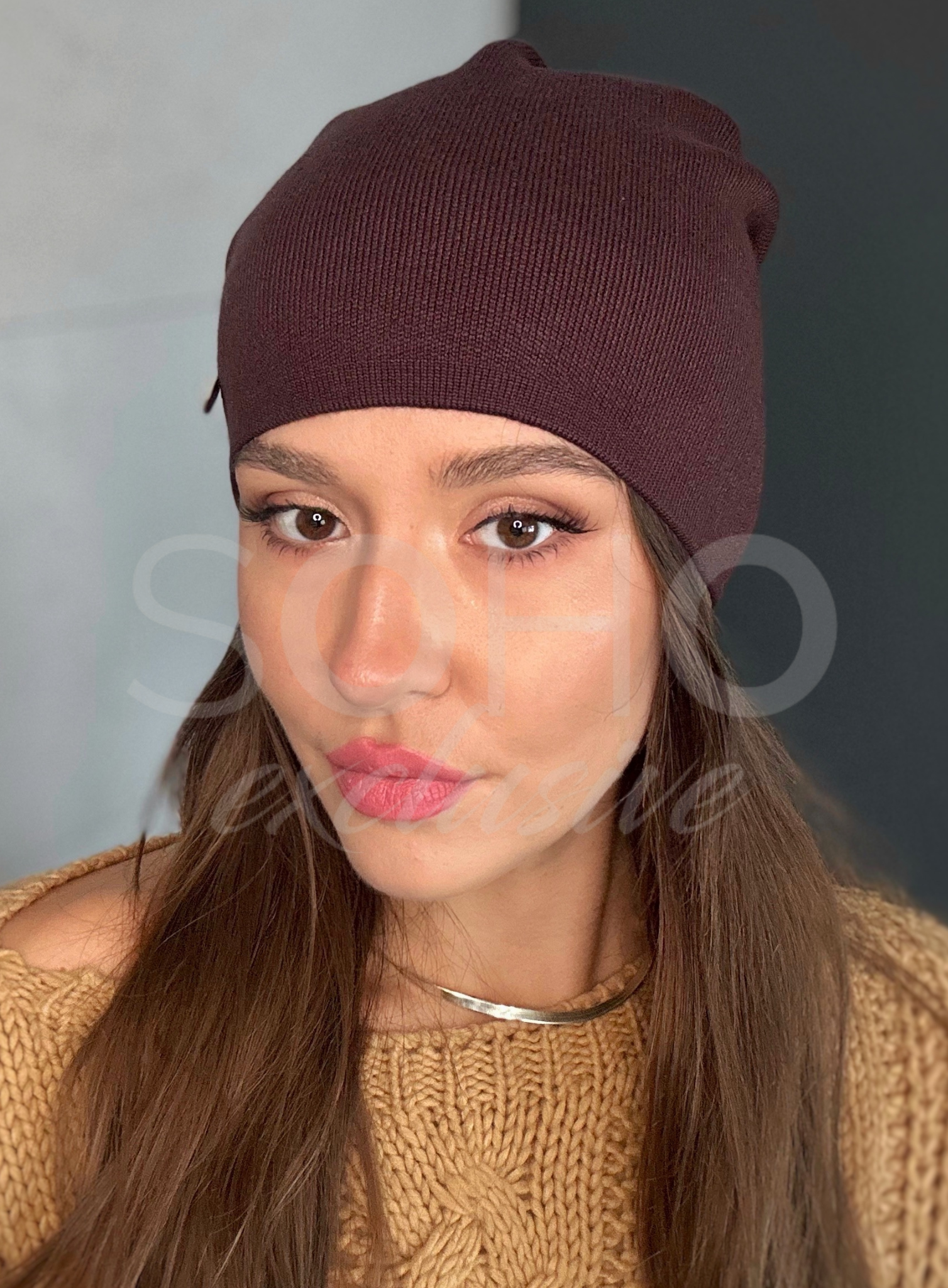 Czapka damska kobieca beanie elegancka jesień zima wiosna z wiskozy czekoladowa 3032