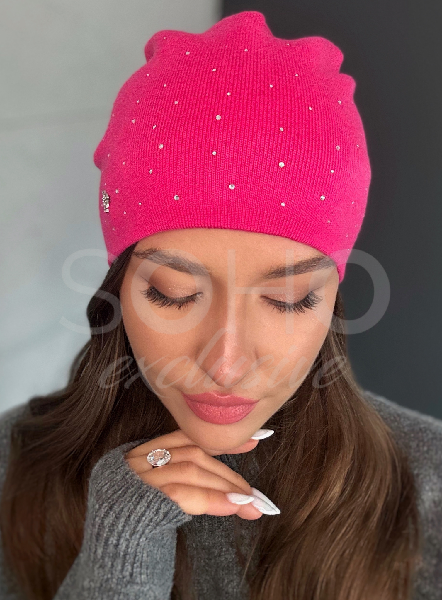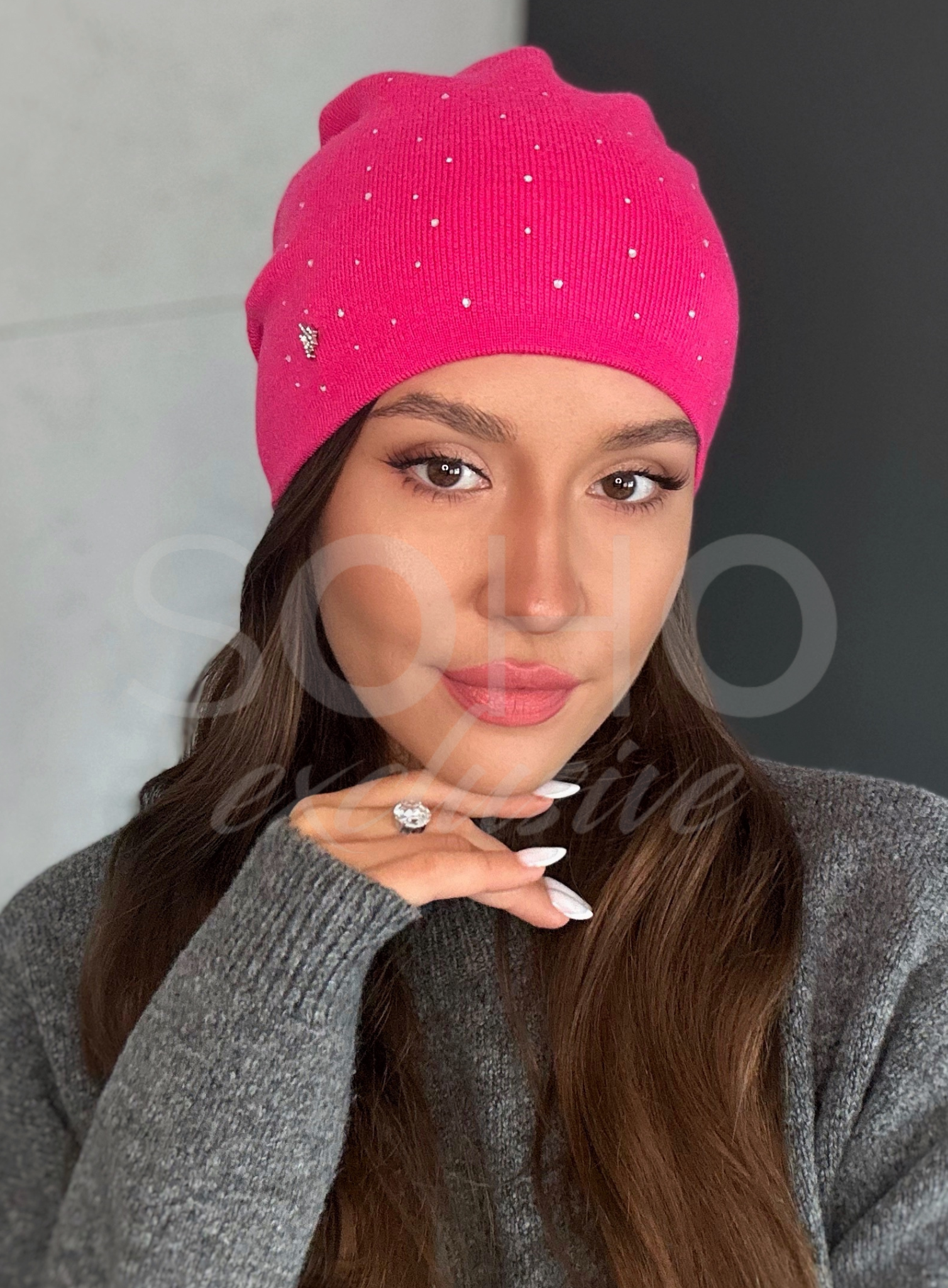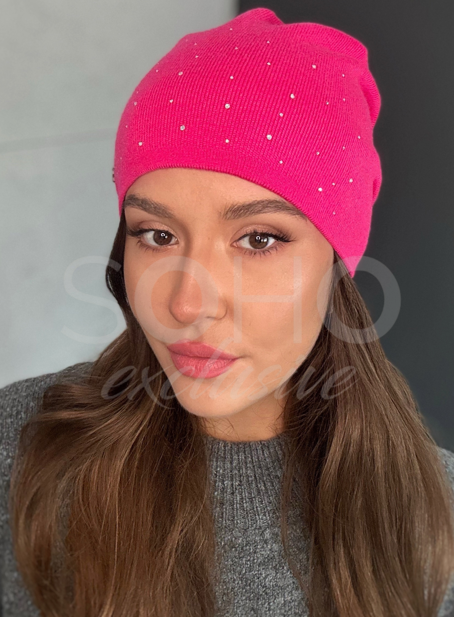 Czapka damska kobieca beanie elegancka jesień zima wiosna z wiskozy fuksjowa 3030