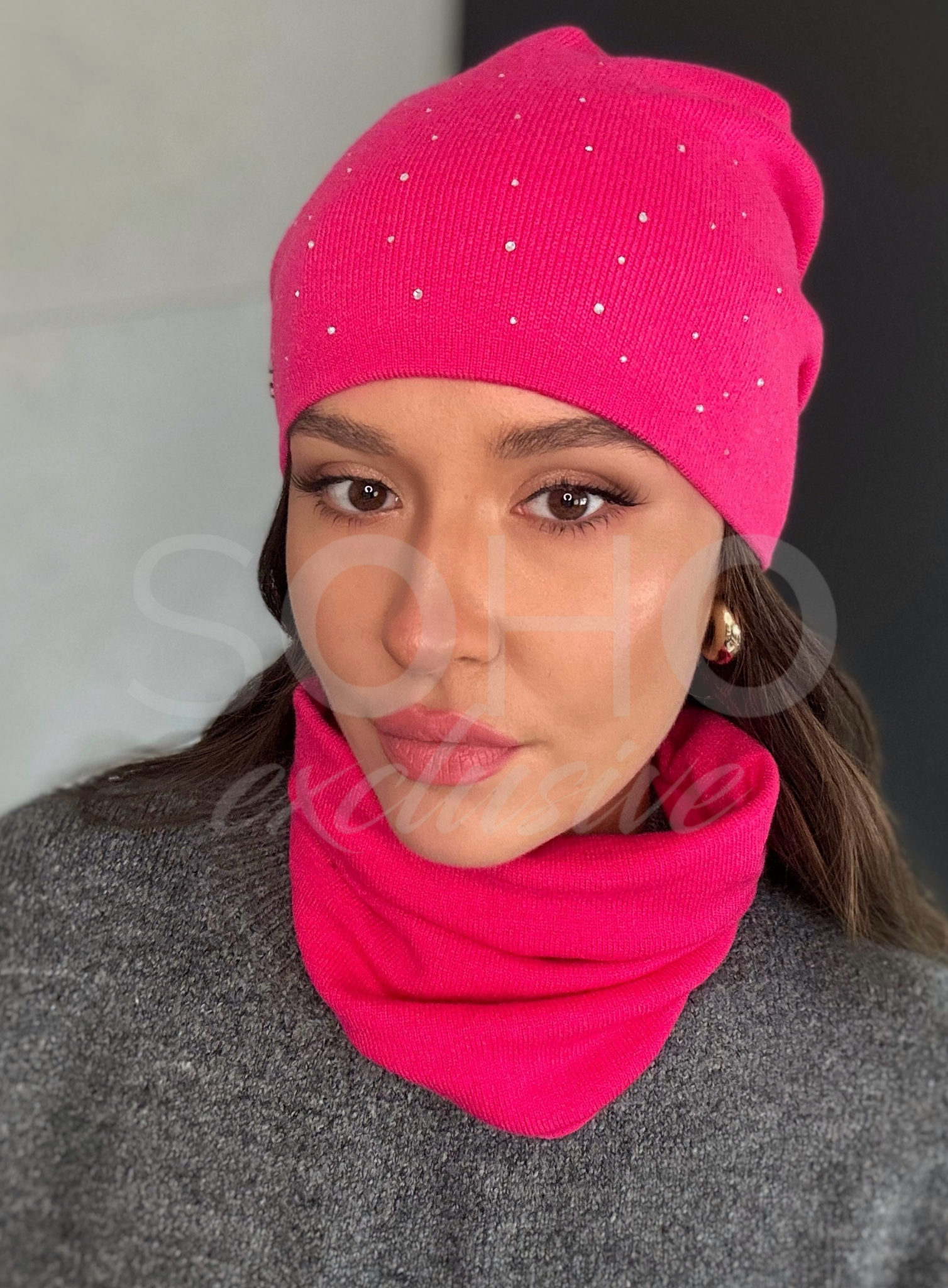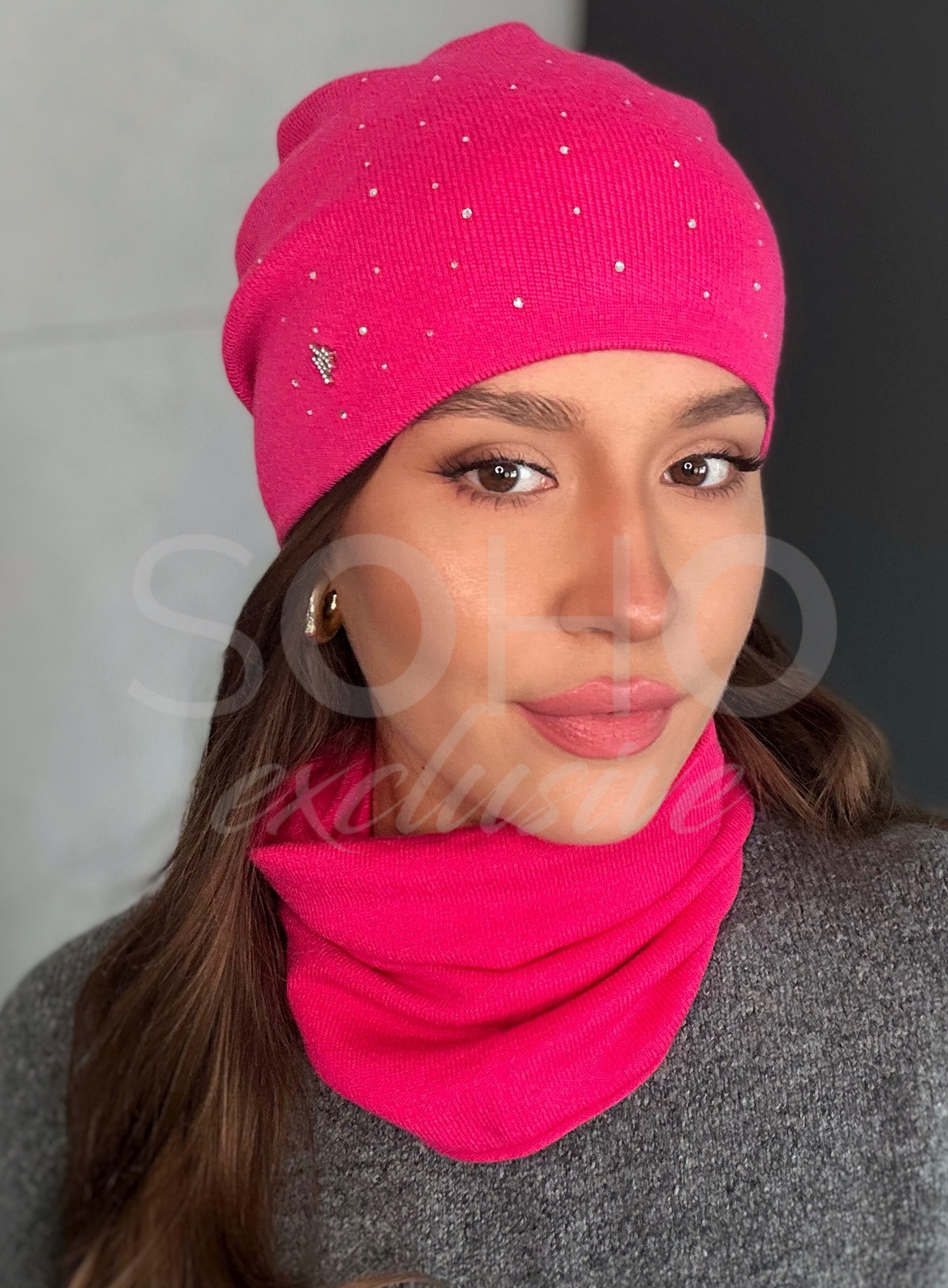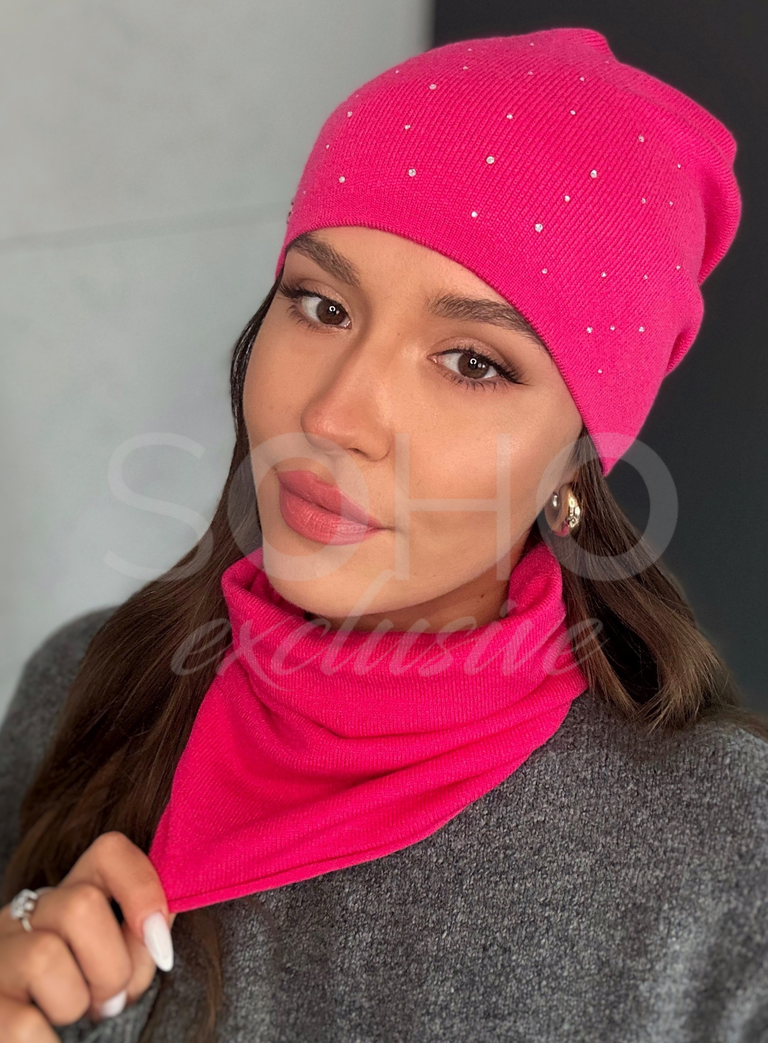Czapka damska kobieca beanie elegancka jesień zima wiosna z wiskozy fuksjowa 3030