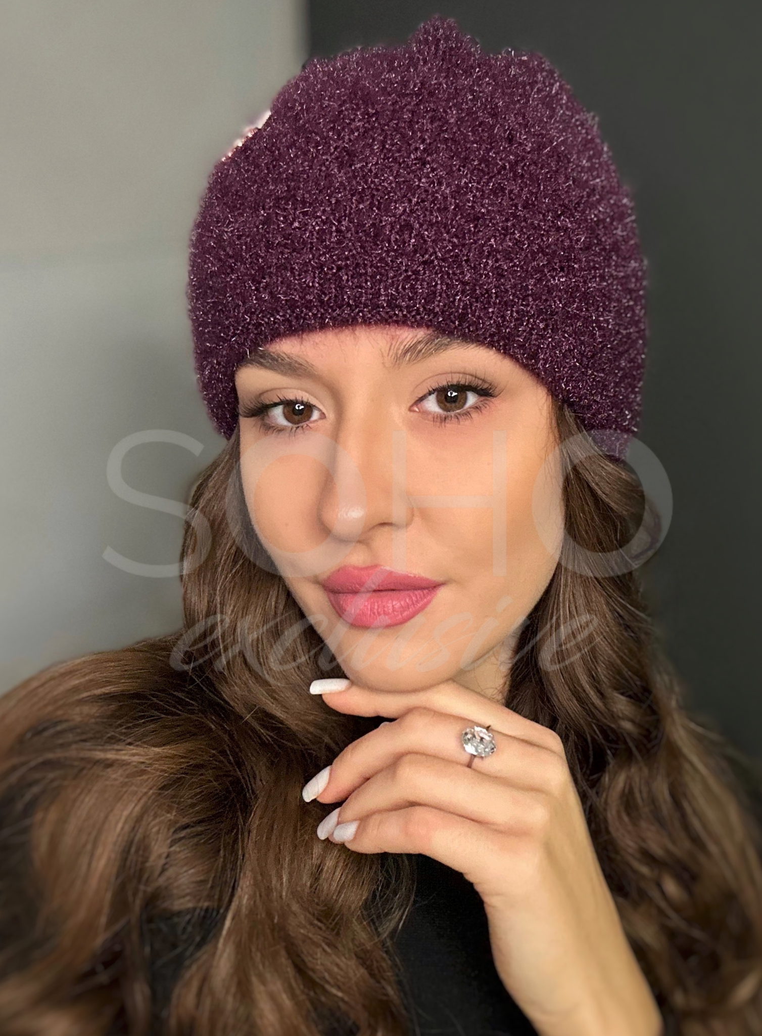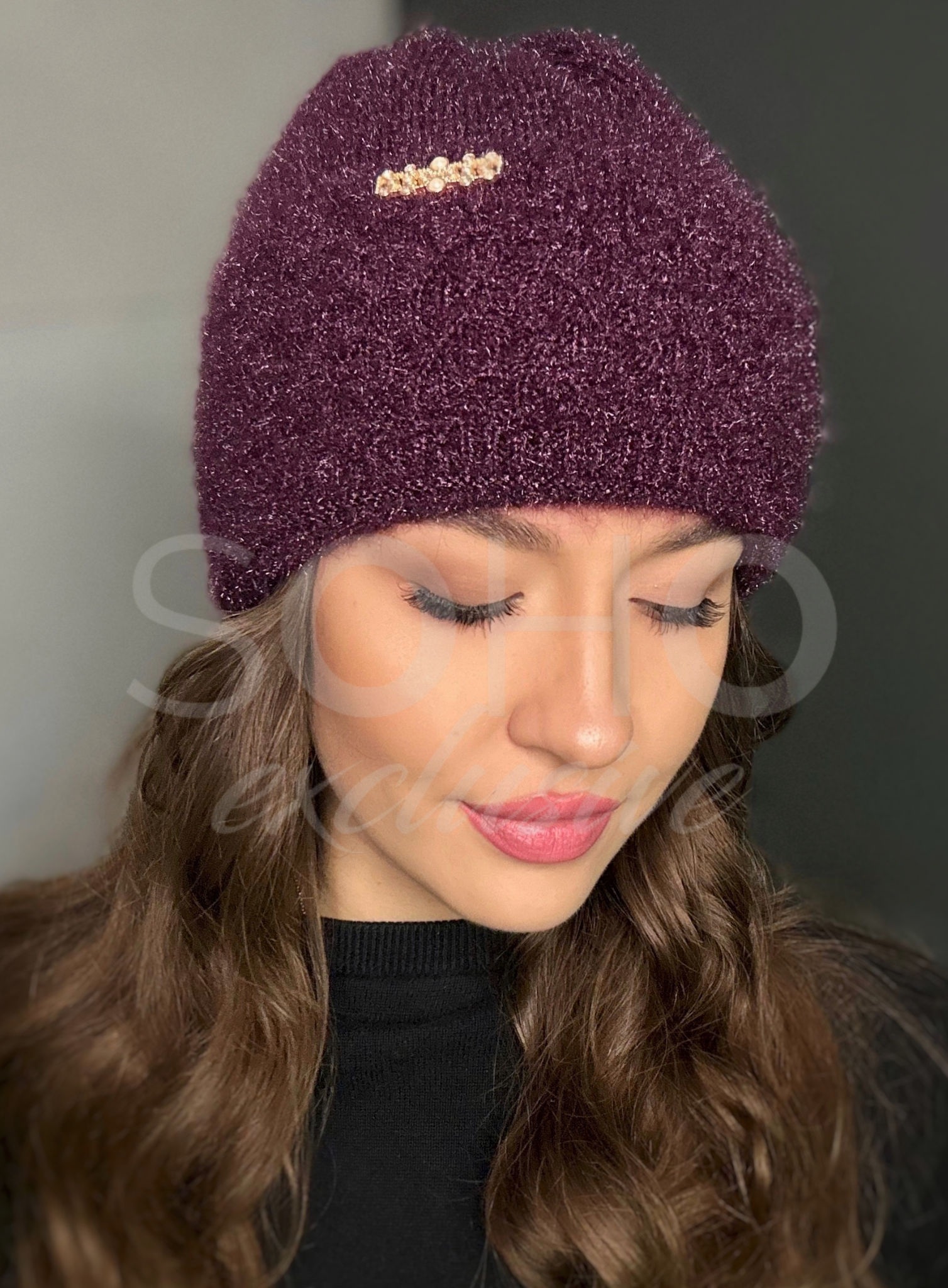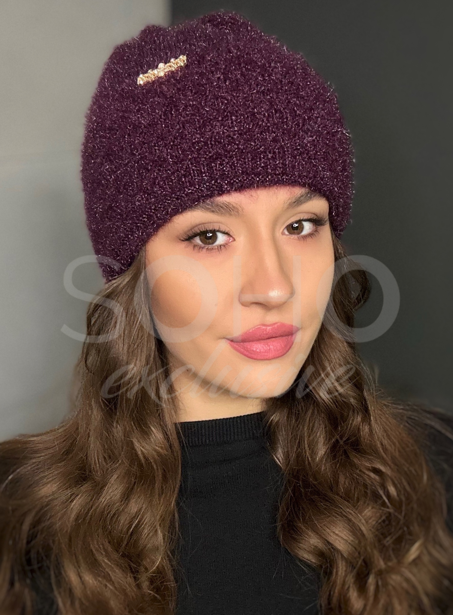 Czapka damska kobieca beanie elegancka jesień zima wiosna z wiskozy śliwkowa 3044