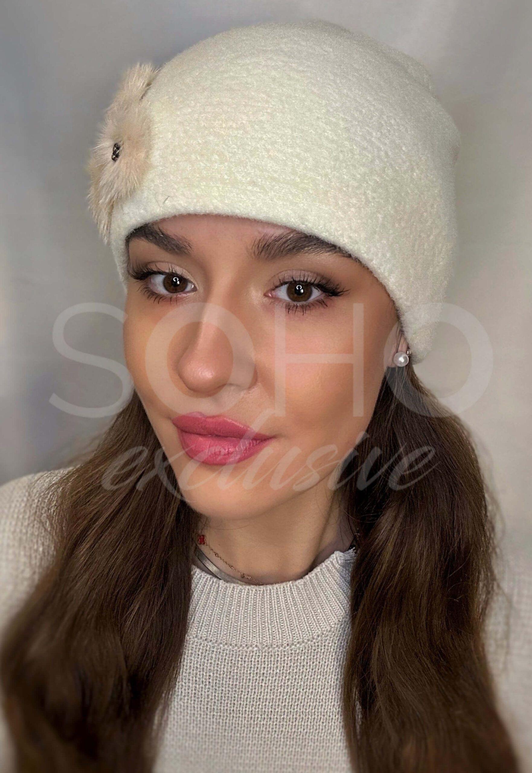 Czapka damska kobieca jesień zima wiosna ciepła wygodna elegancka ecru 3074