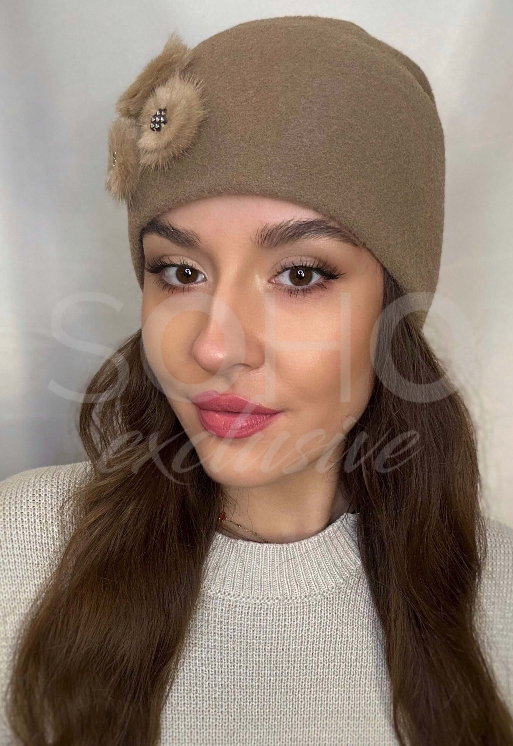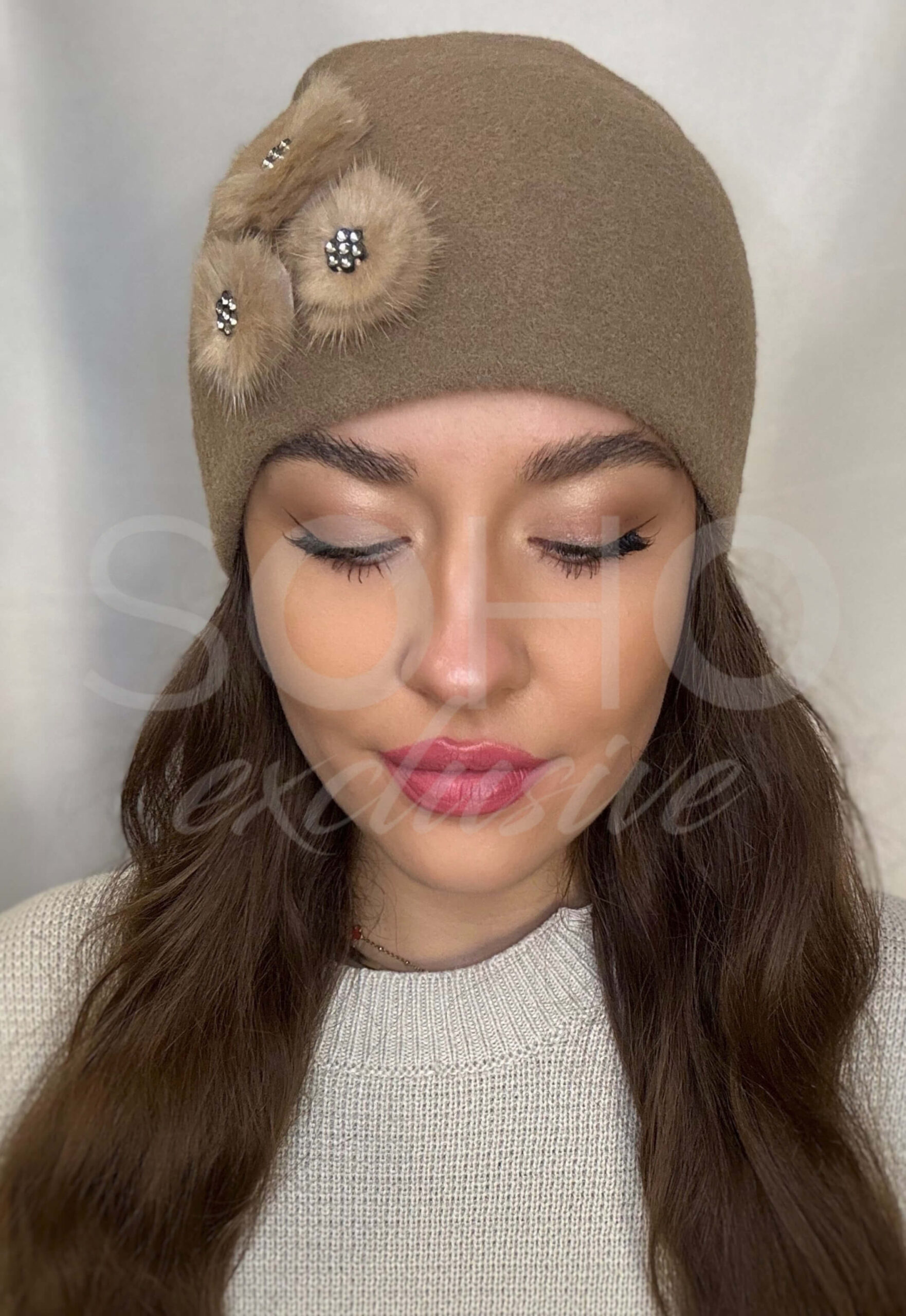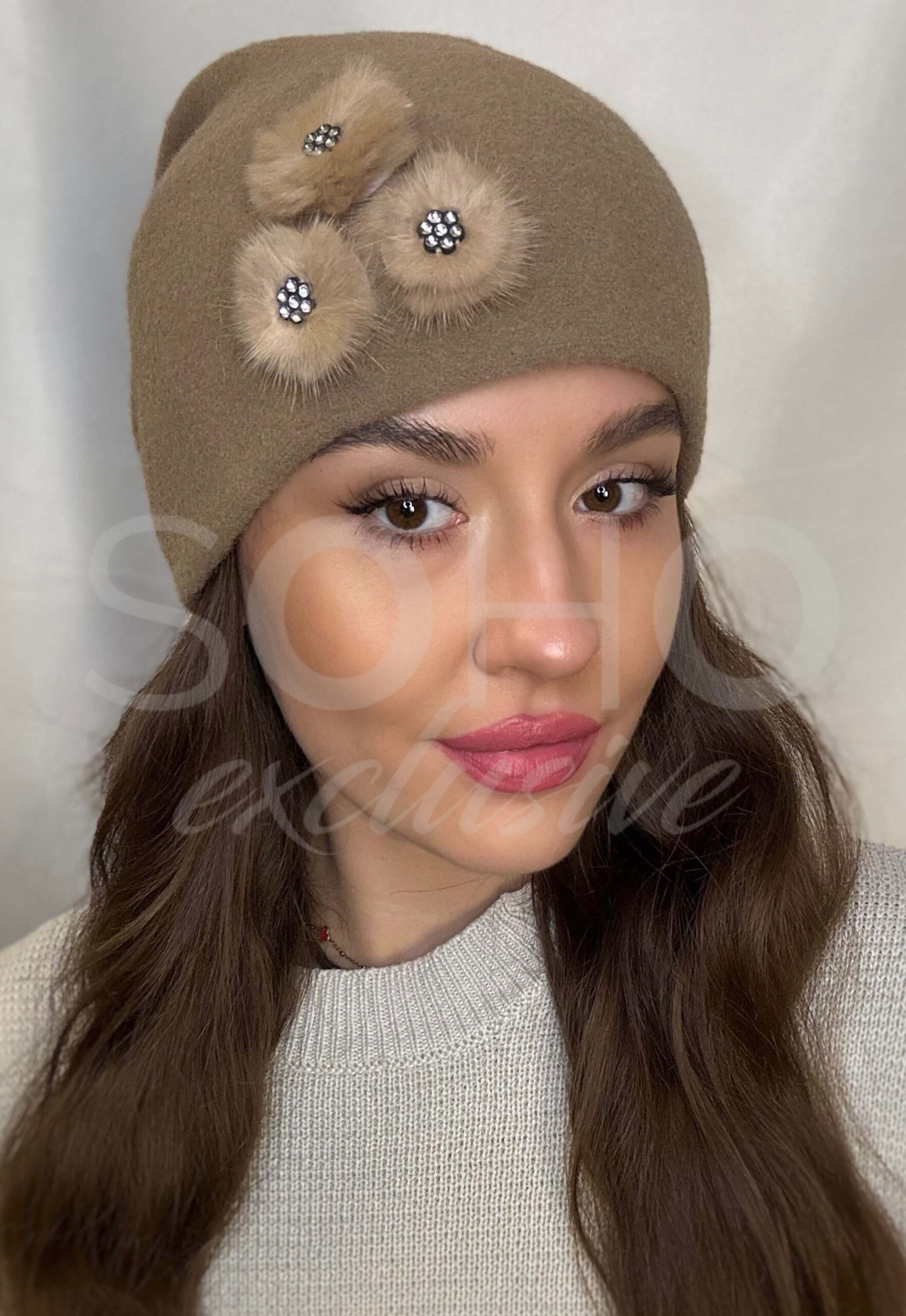 Czapka damska kobieca jesień zima wiosna ciepła wygodna elegancka mokka 3074