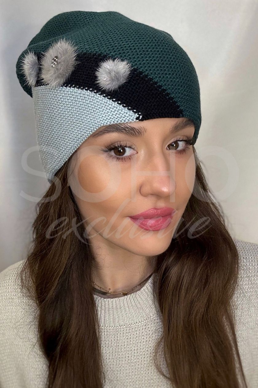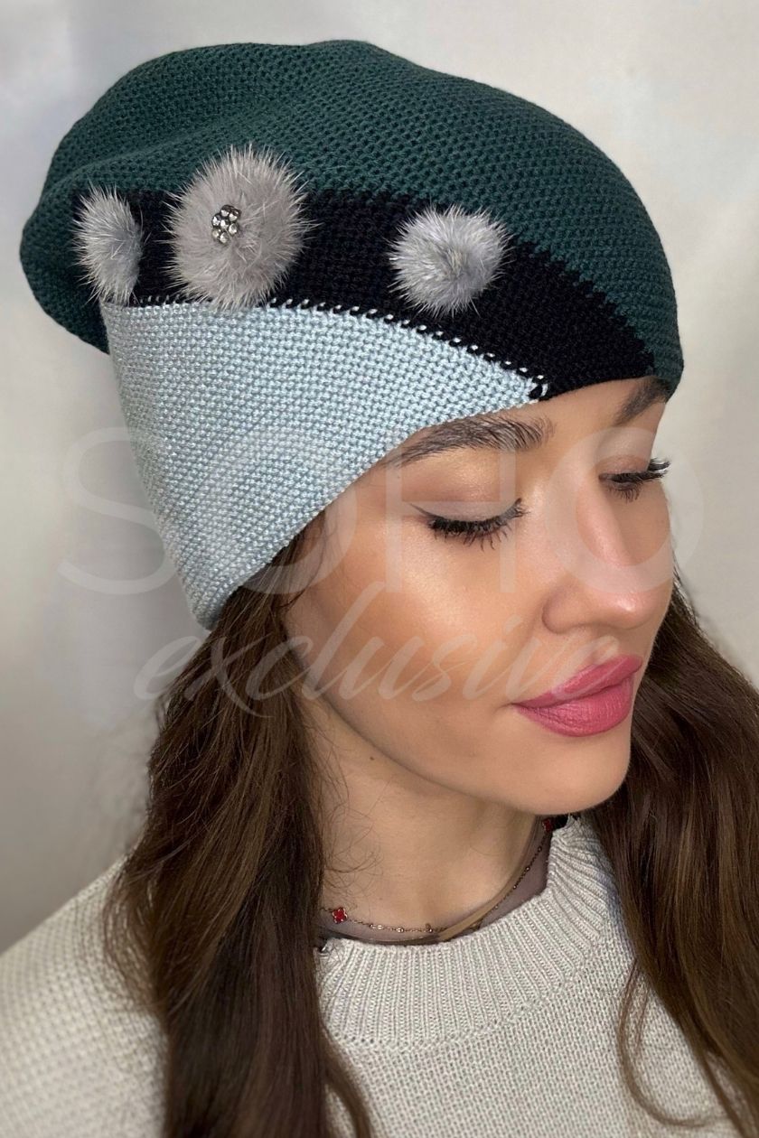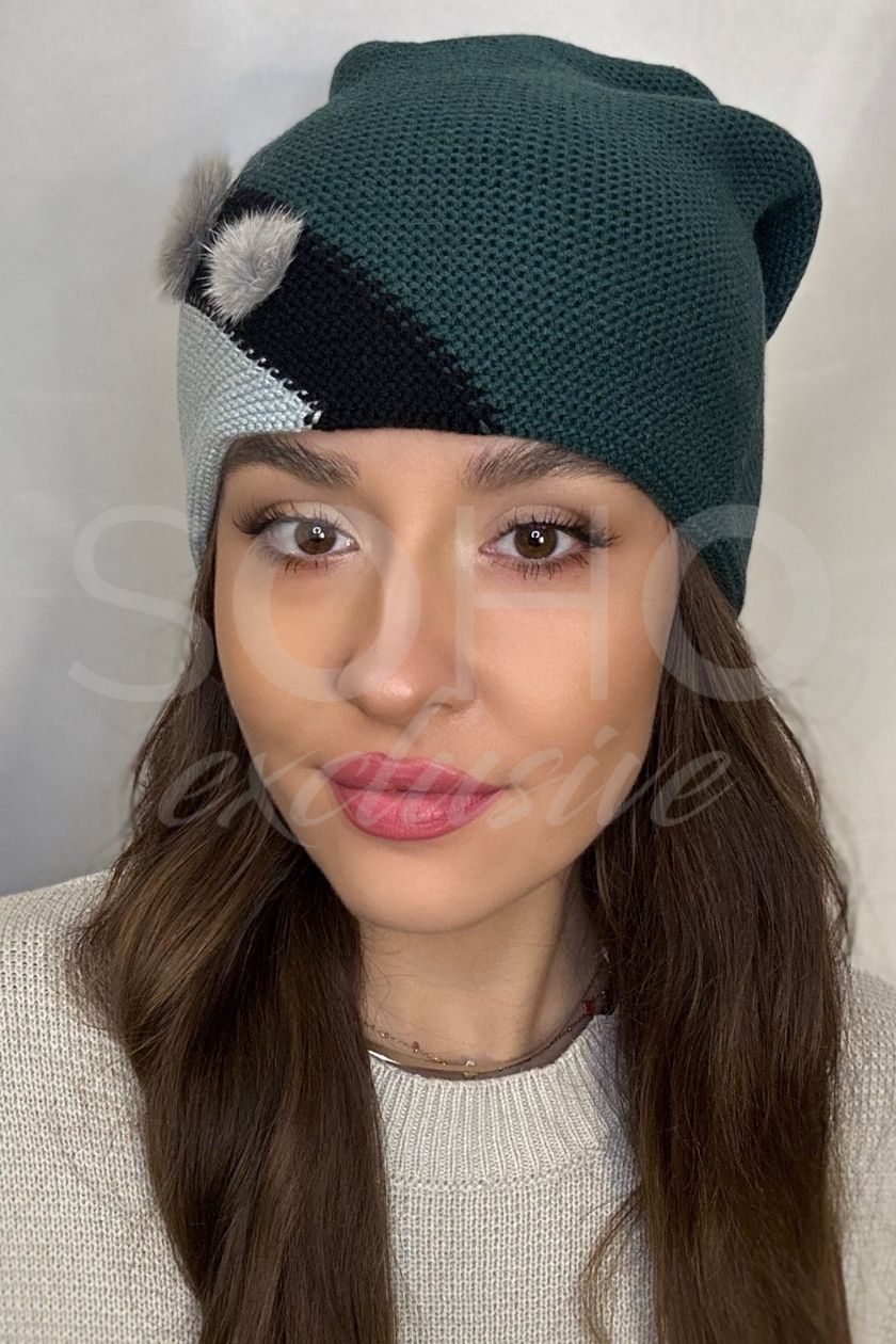 Czapka damska kobieca jesień zima wiosna ciepła zimowa wygodna ładna butelkowa zielona 3059