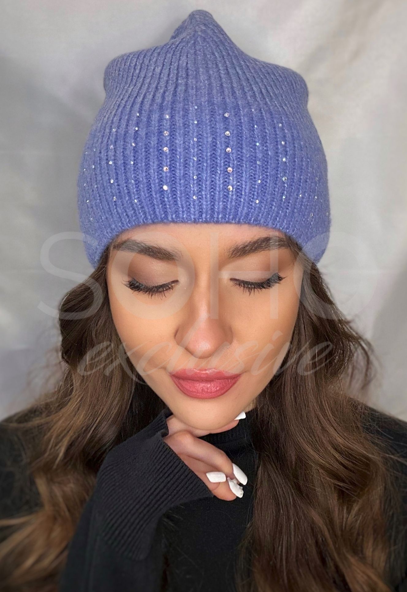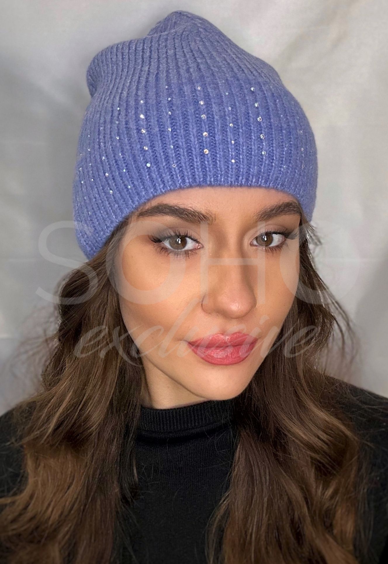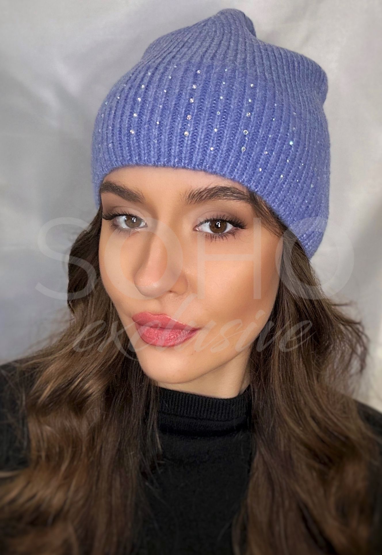 Czapka damska kobieca młodzież beanie jesień zima wiosna wełna wiskoza lawendowa 3056