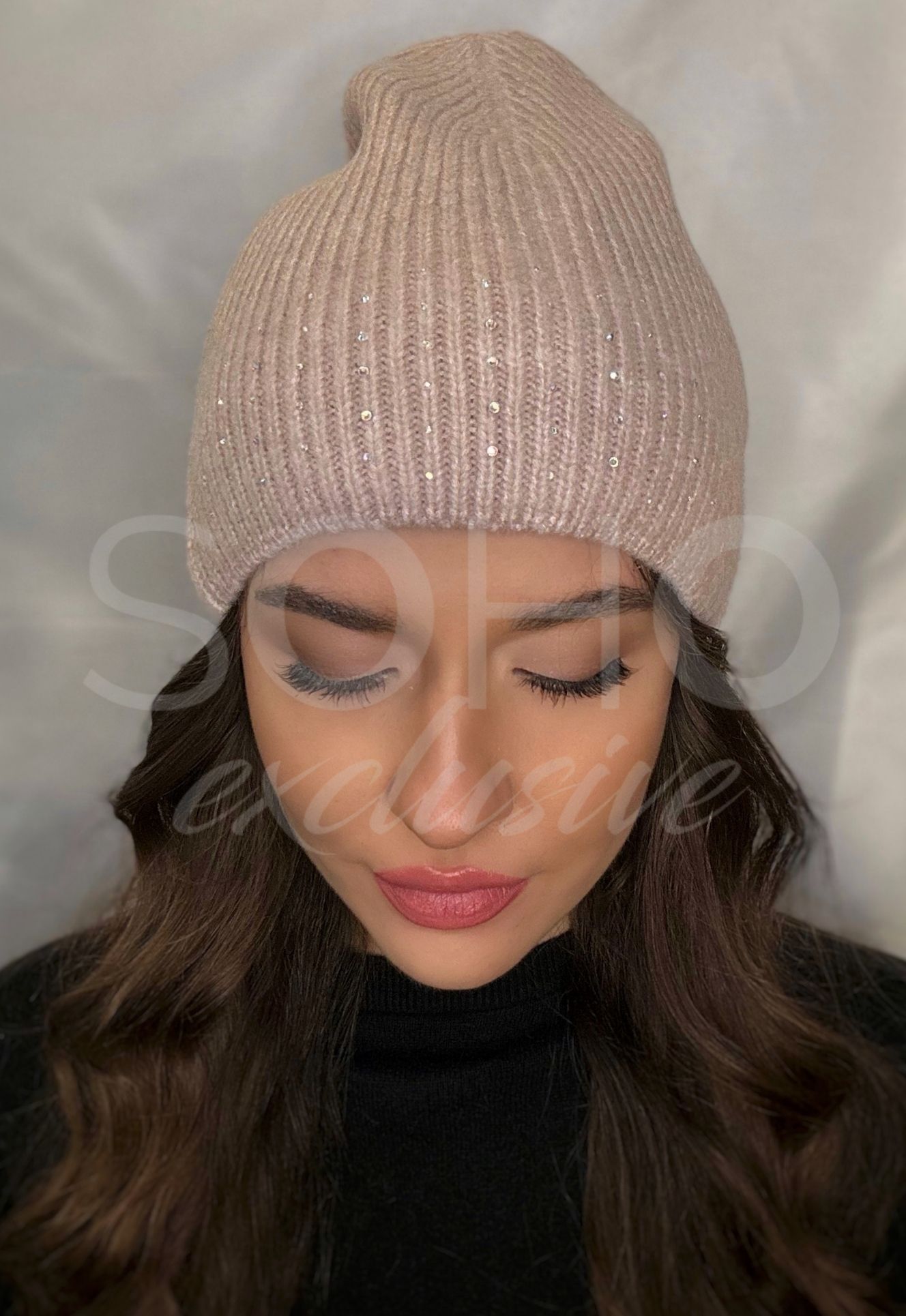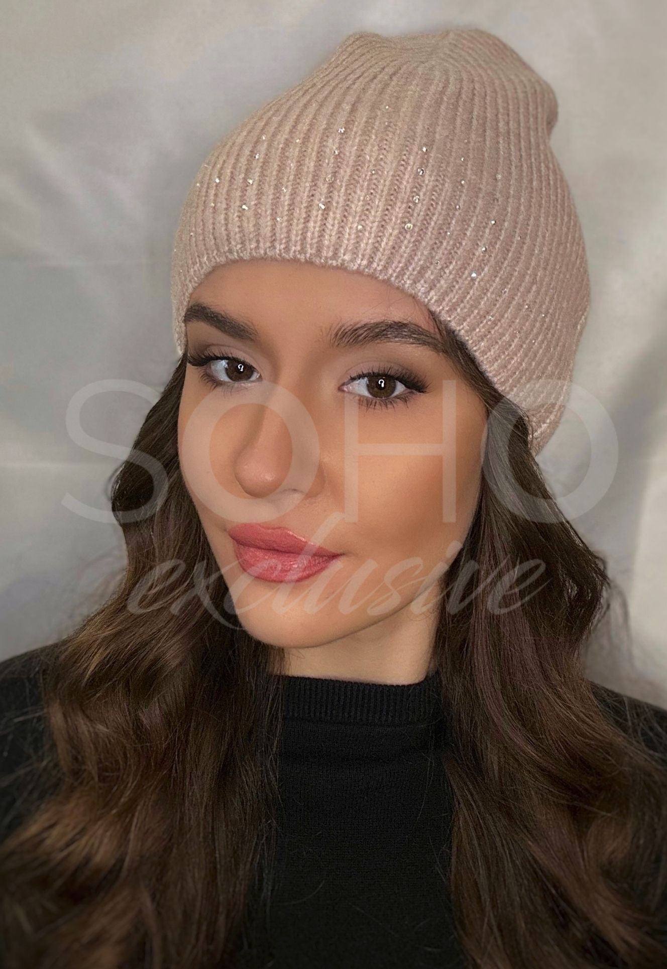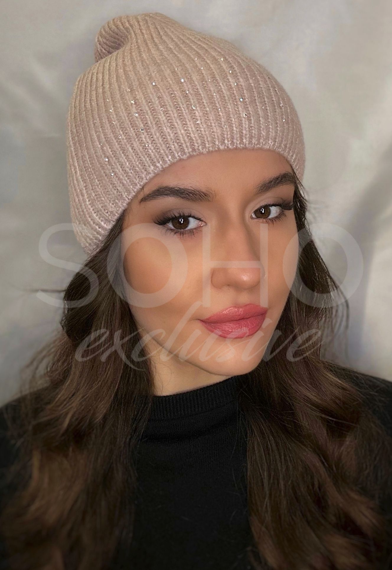Czapka damska kobieca młodzież beanie jesień zima wiosna wełna wiskoza zgaszona różowa 3056