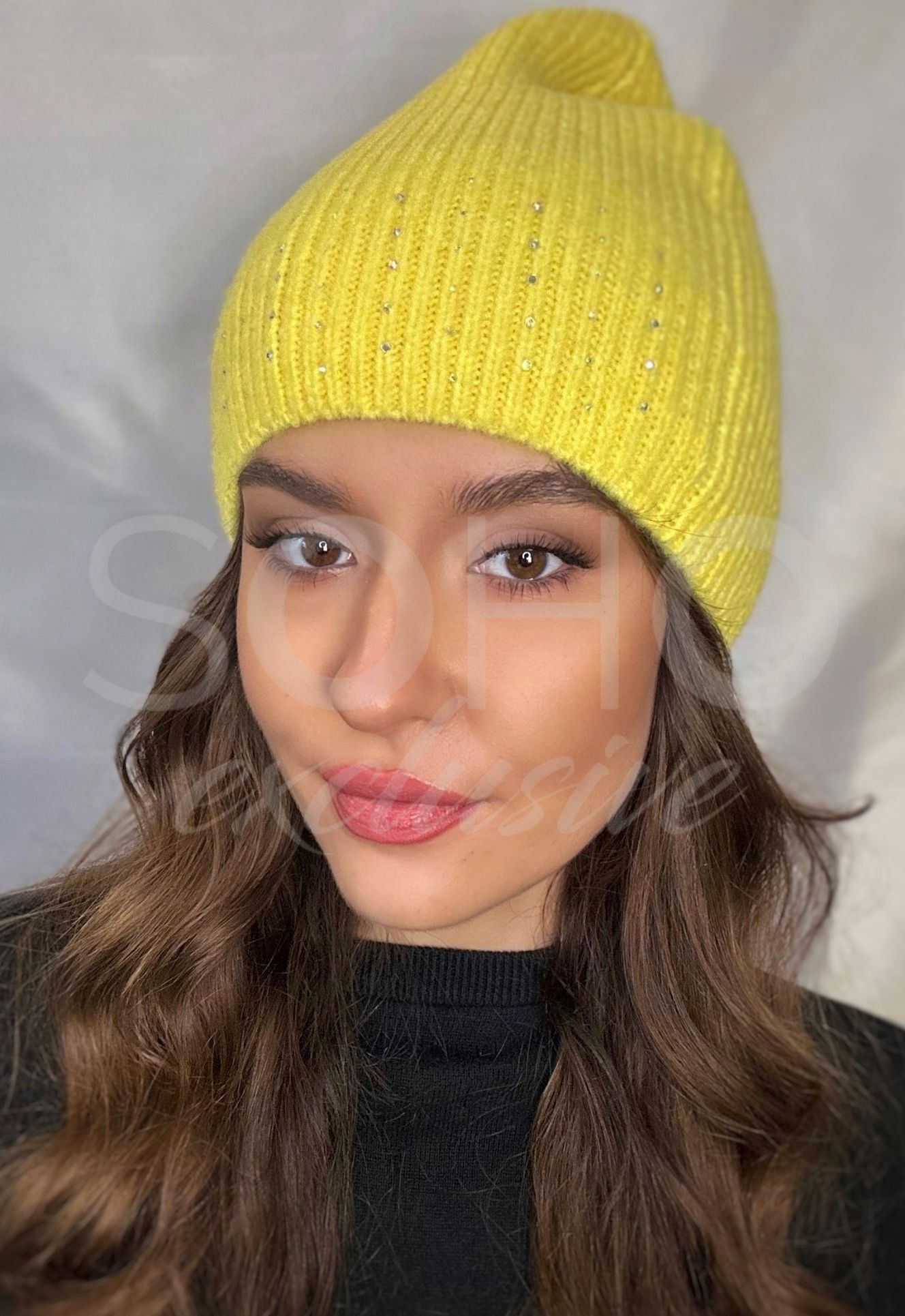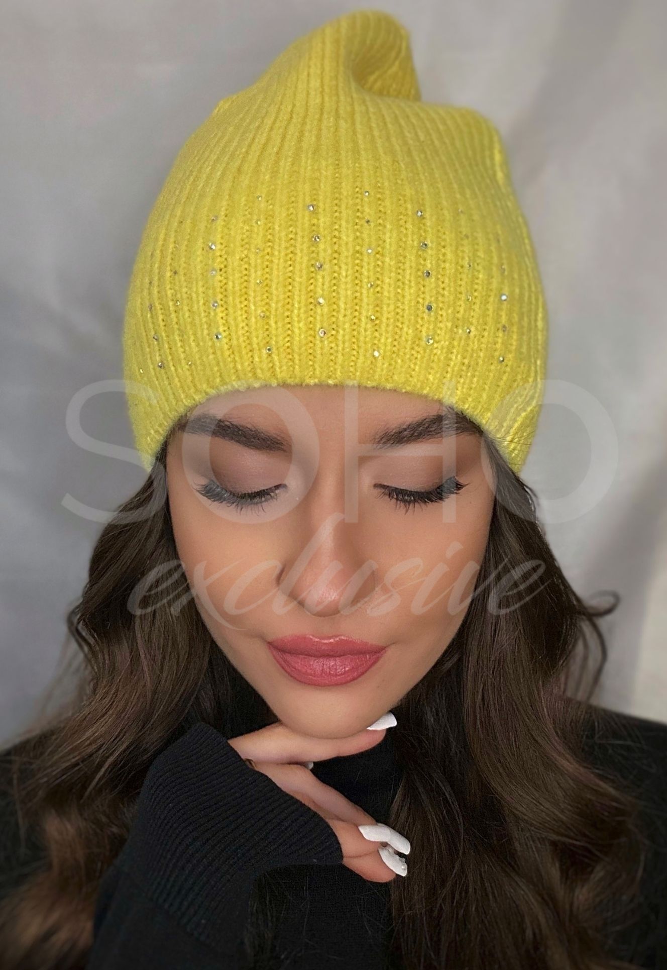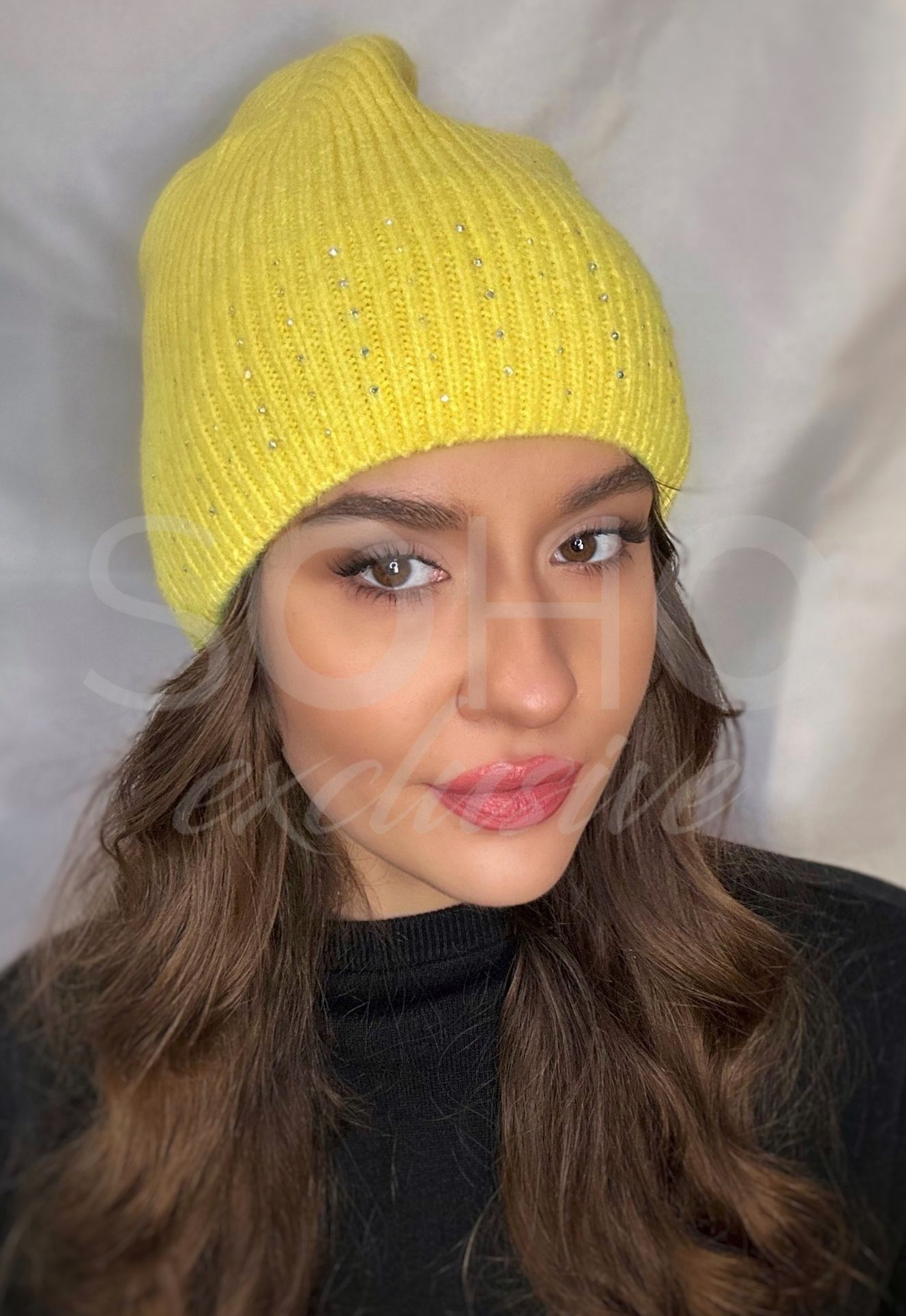 Czapka damska kobieca młodzież beanie jesień zima wiosna wełna wiskoza żółta neonowa 3056