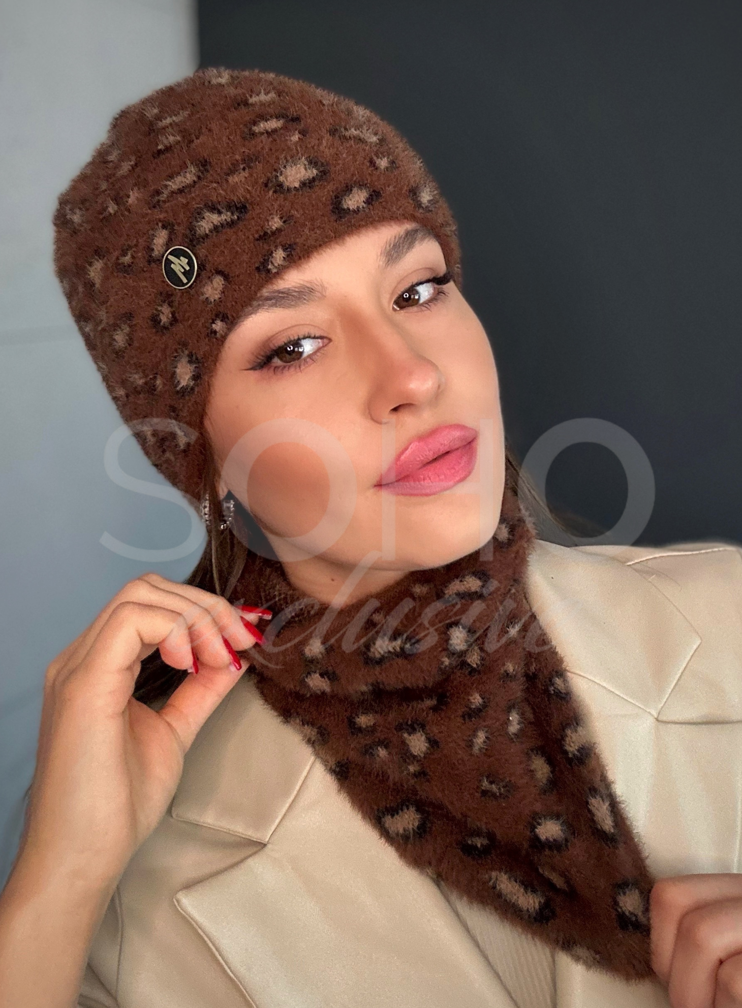 Wykonany z uciągliwego, przyjemnego materiału (alpaka touch).