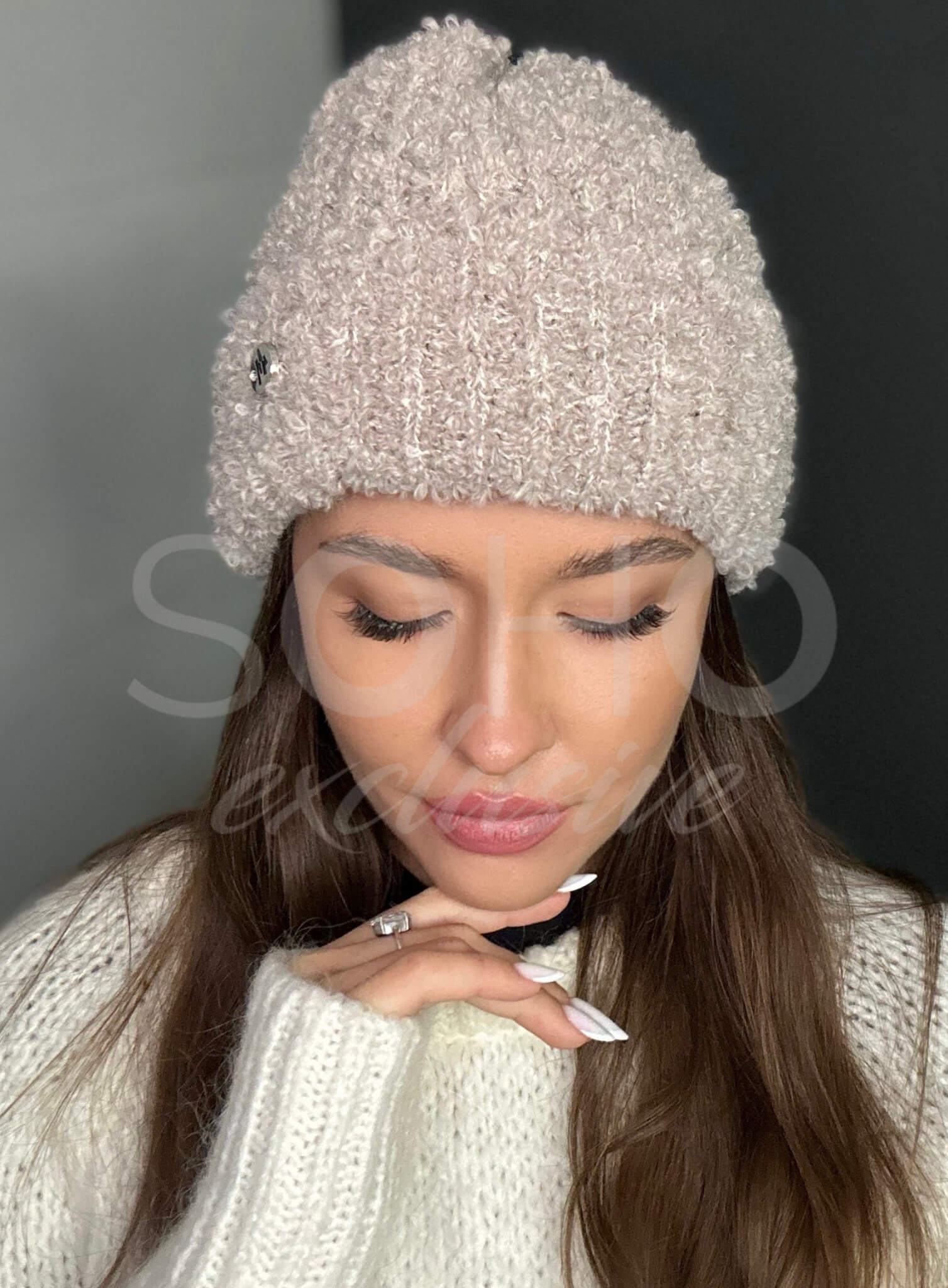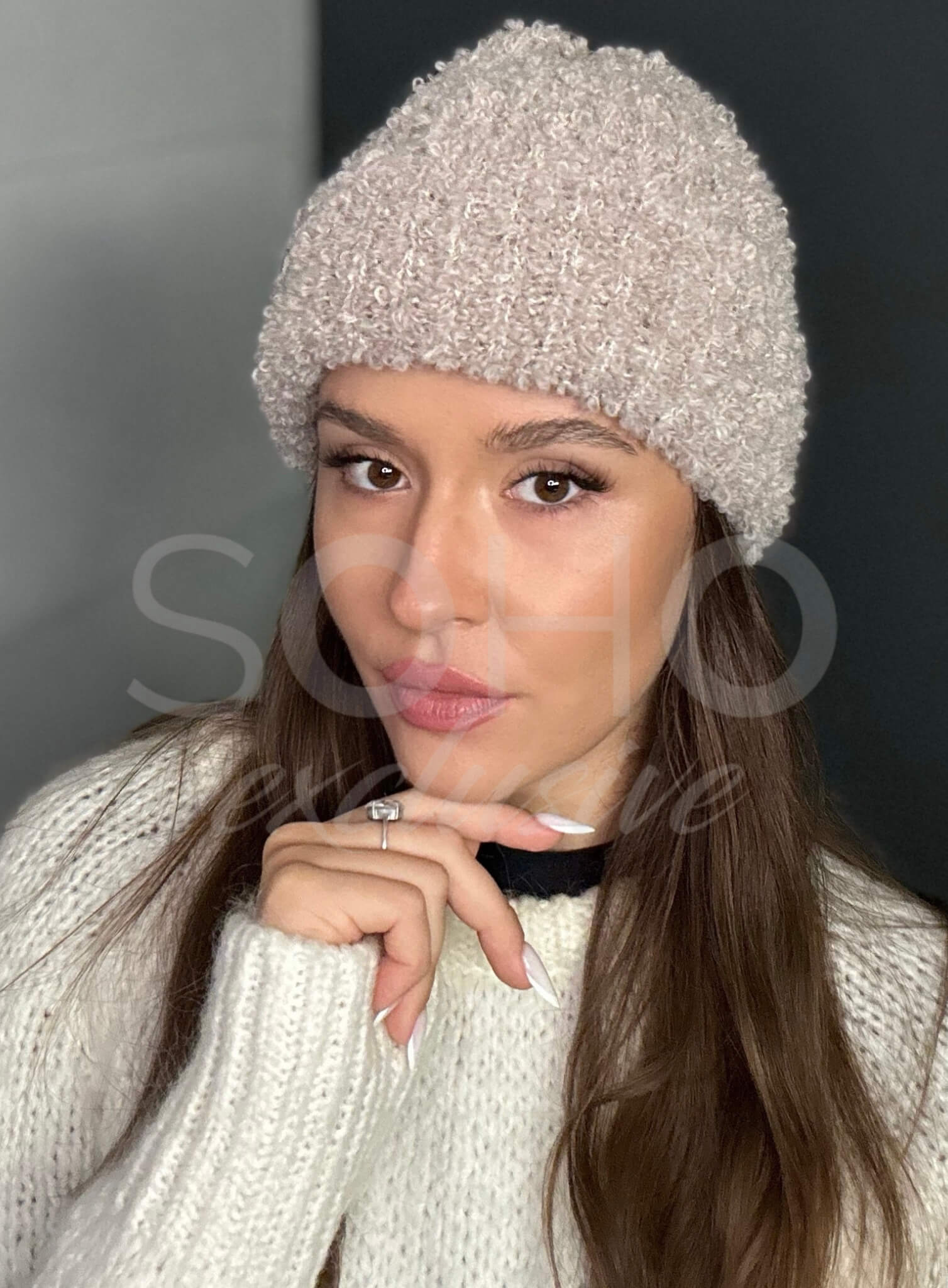 Czapka damska kobieca młodzieżowa beanie na zimę zimowa boucle kremowa 3001