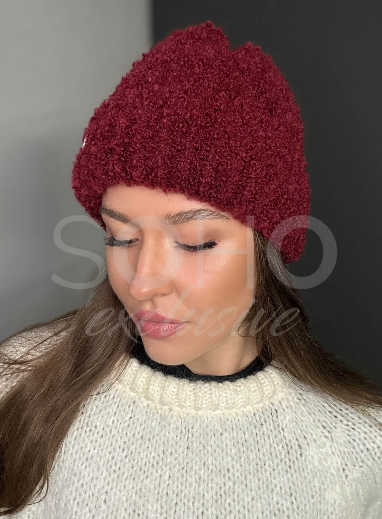 Czapka damska kobieca młodzieżowa beanie na zimę zimowa boucle bordowa 3001
