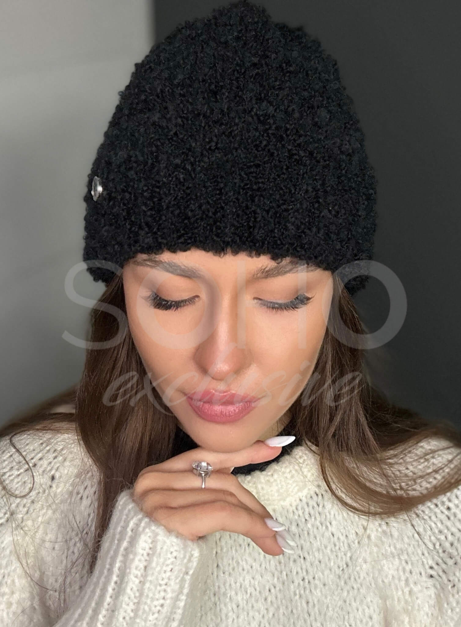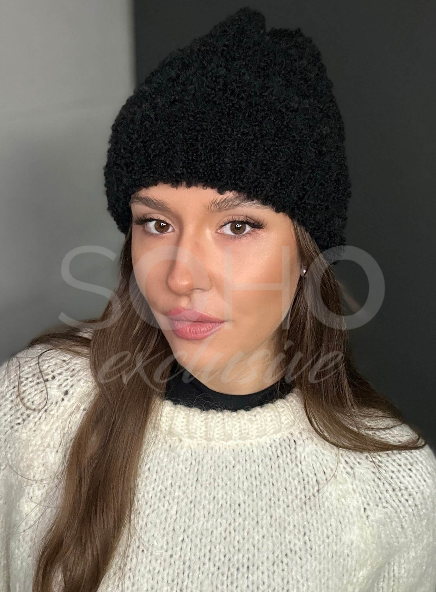Napisz pierwszą opinię o „Czapka damska kobieca młodzieżowa beanie na zimę zimowa boucle czarna 3001”