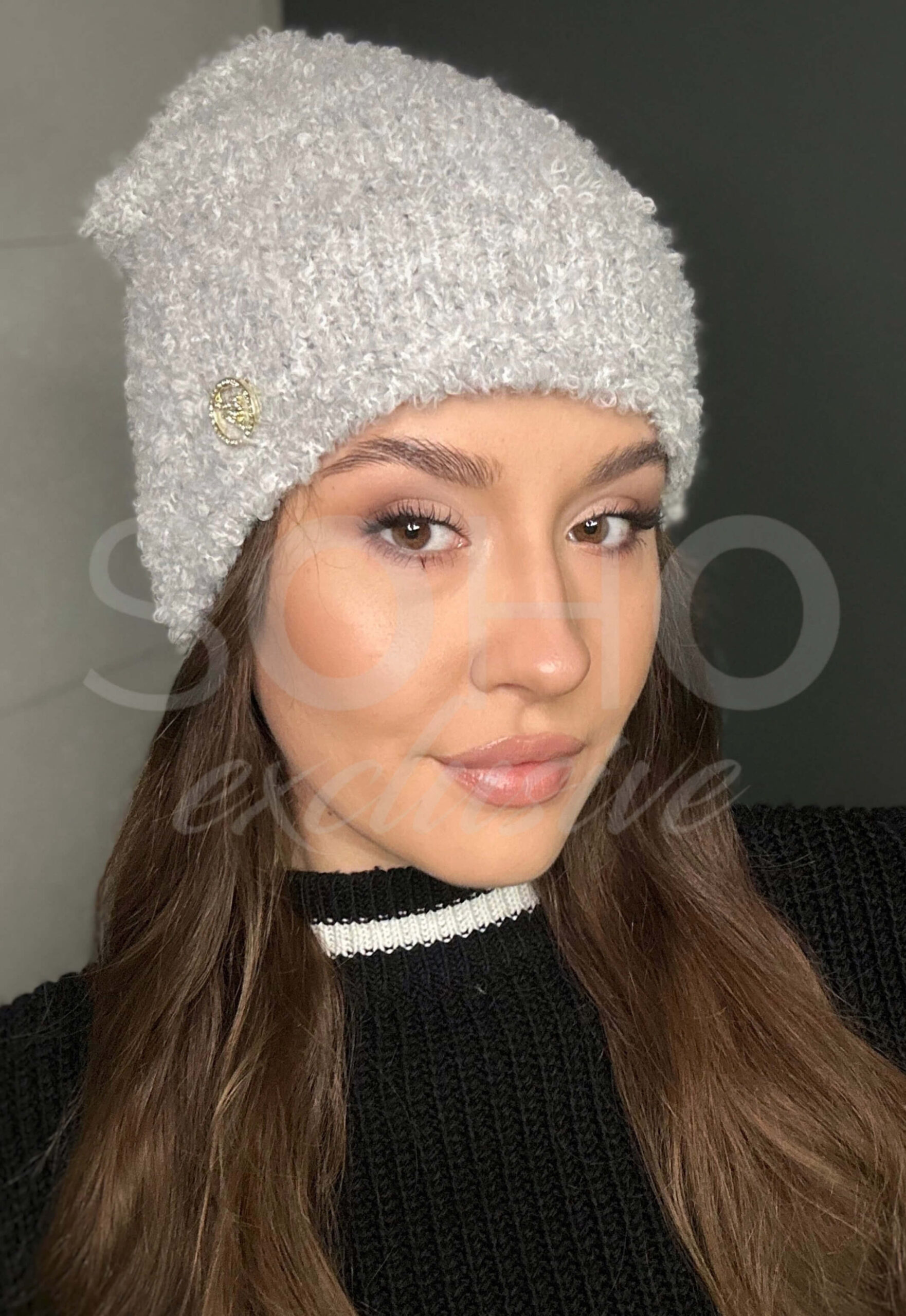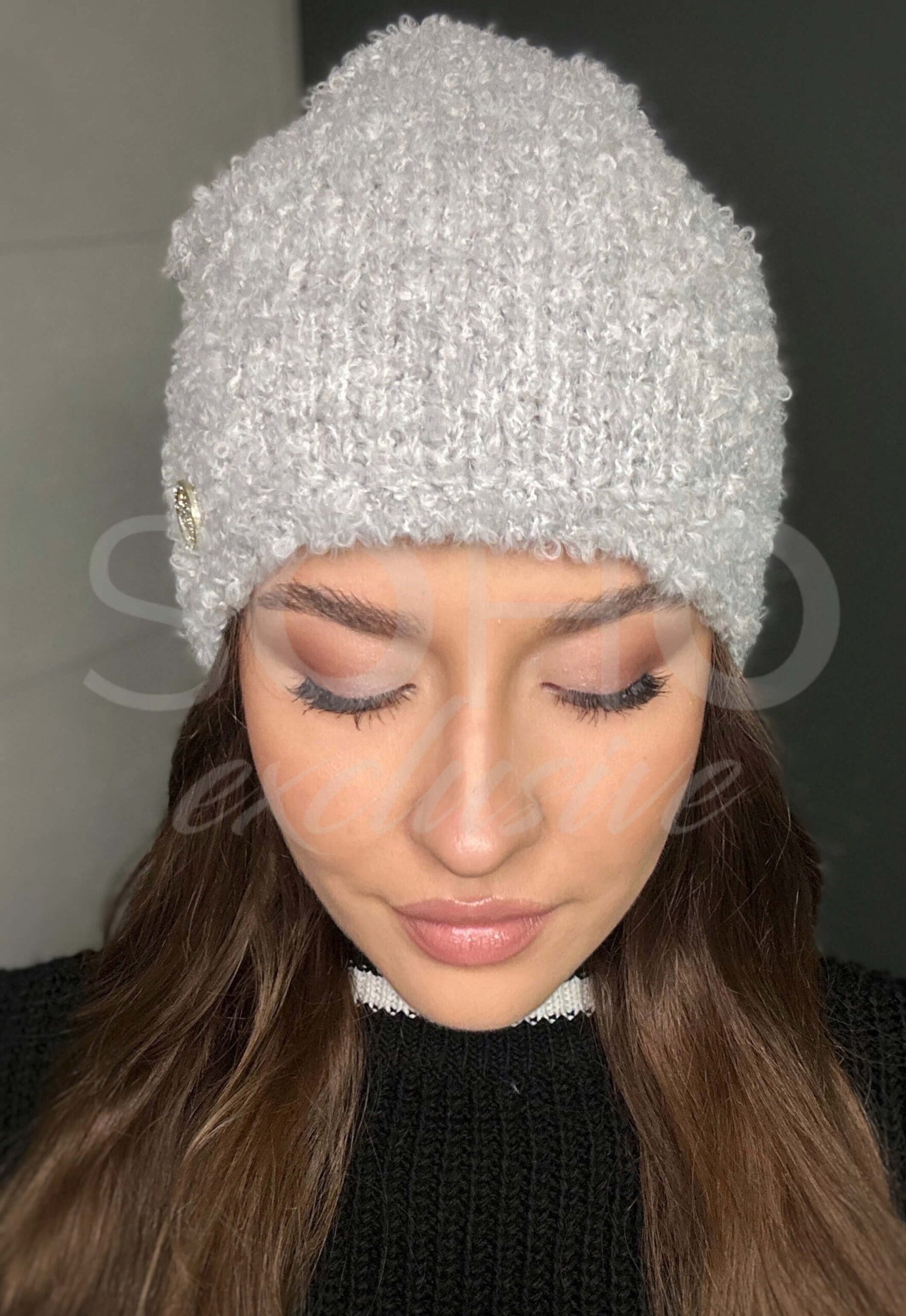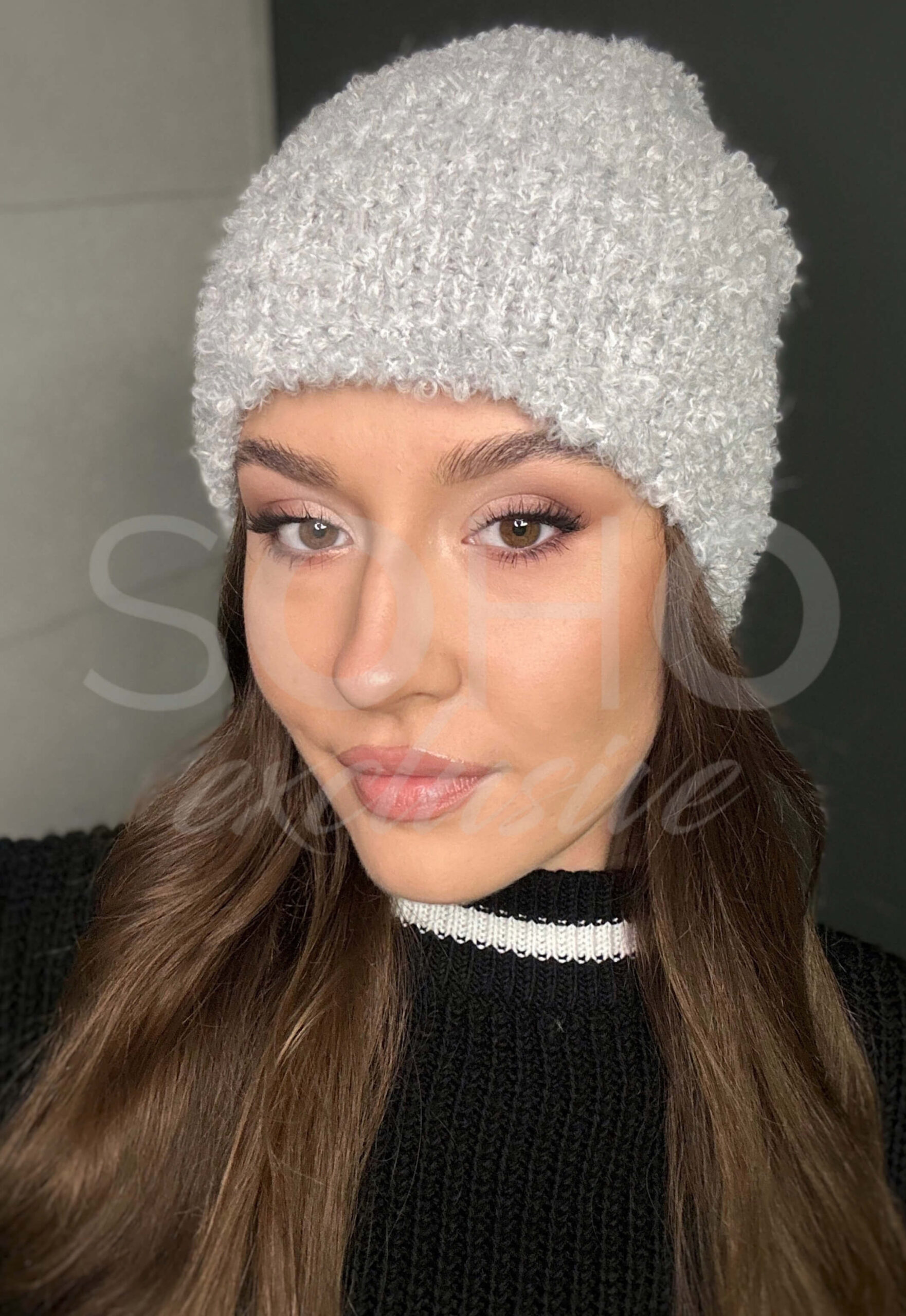 Czapka damska kobieca młodzieżowa beanie smerfetka zimowa bukla boucle szara 3072