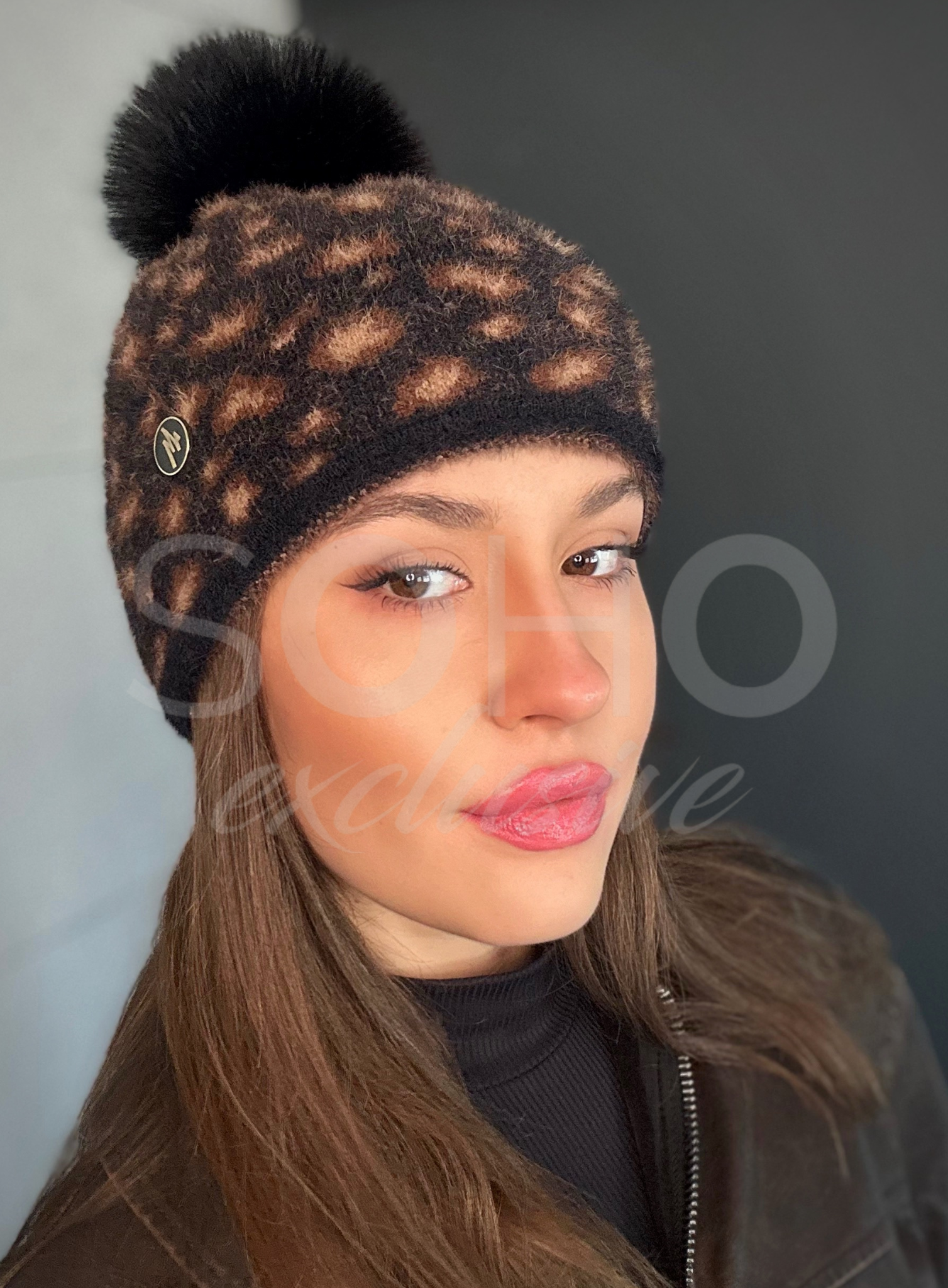 Czapka wywijana, z pięknym pomponem oraz subtelnym logowaniem.