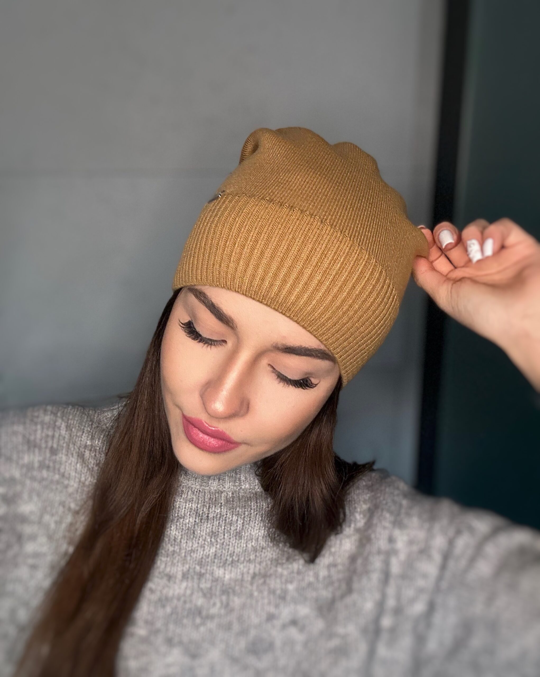 Napisz pierwszą opinię o „Czapka damska kobieca modna elegancka ciepła wiosna jesień beanie karmelowa 2919”