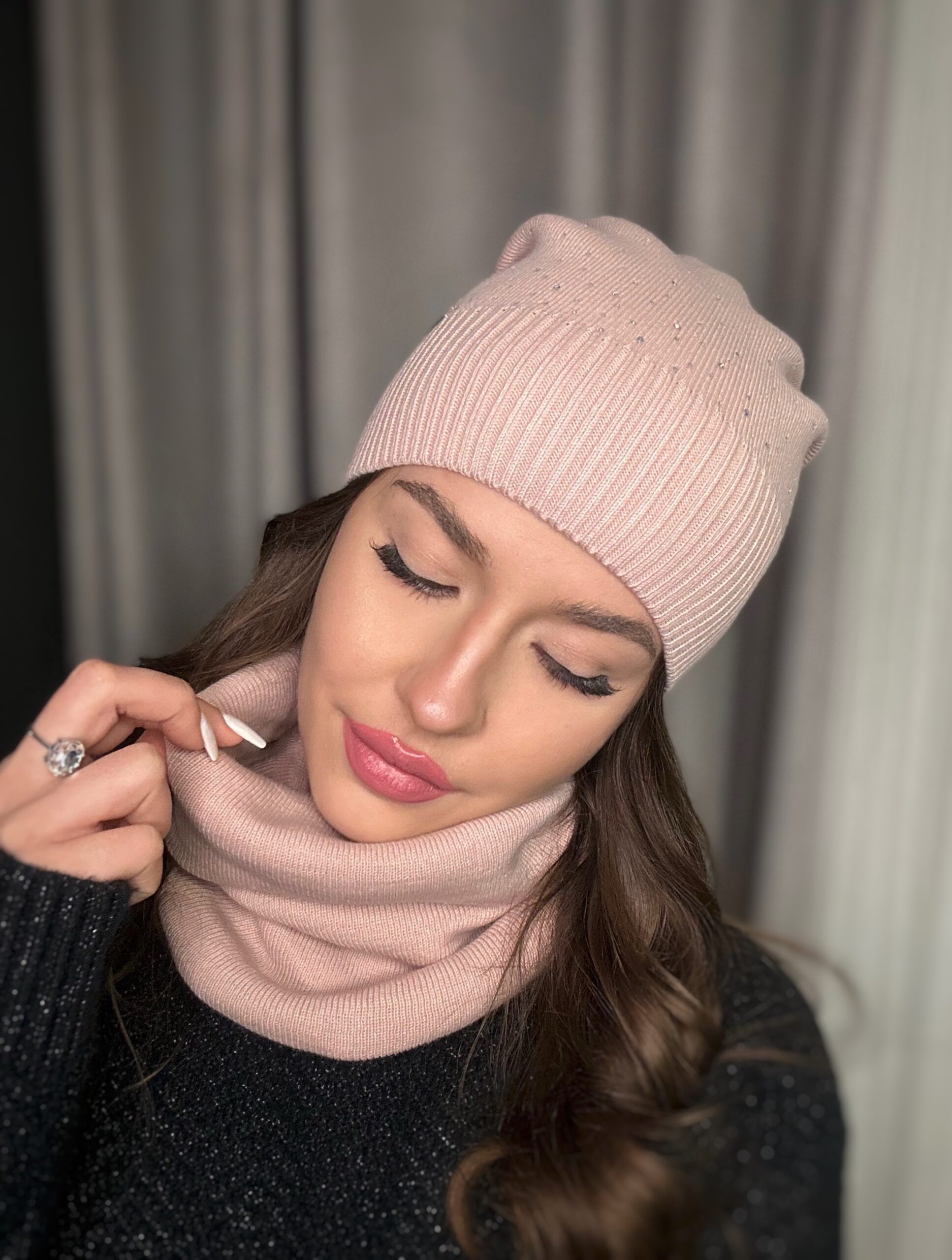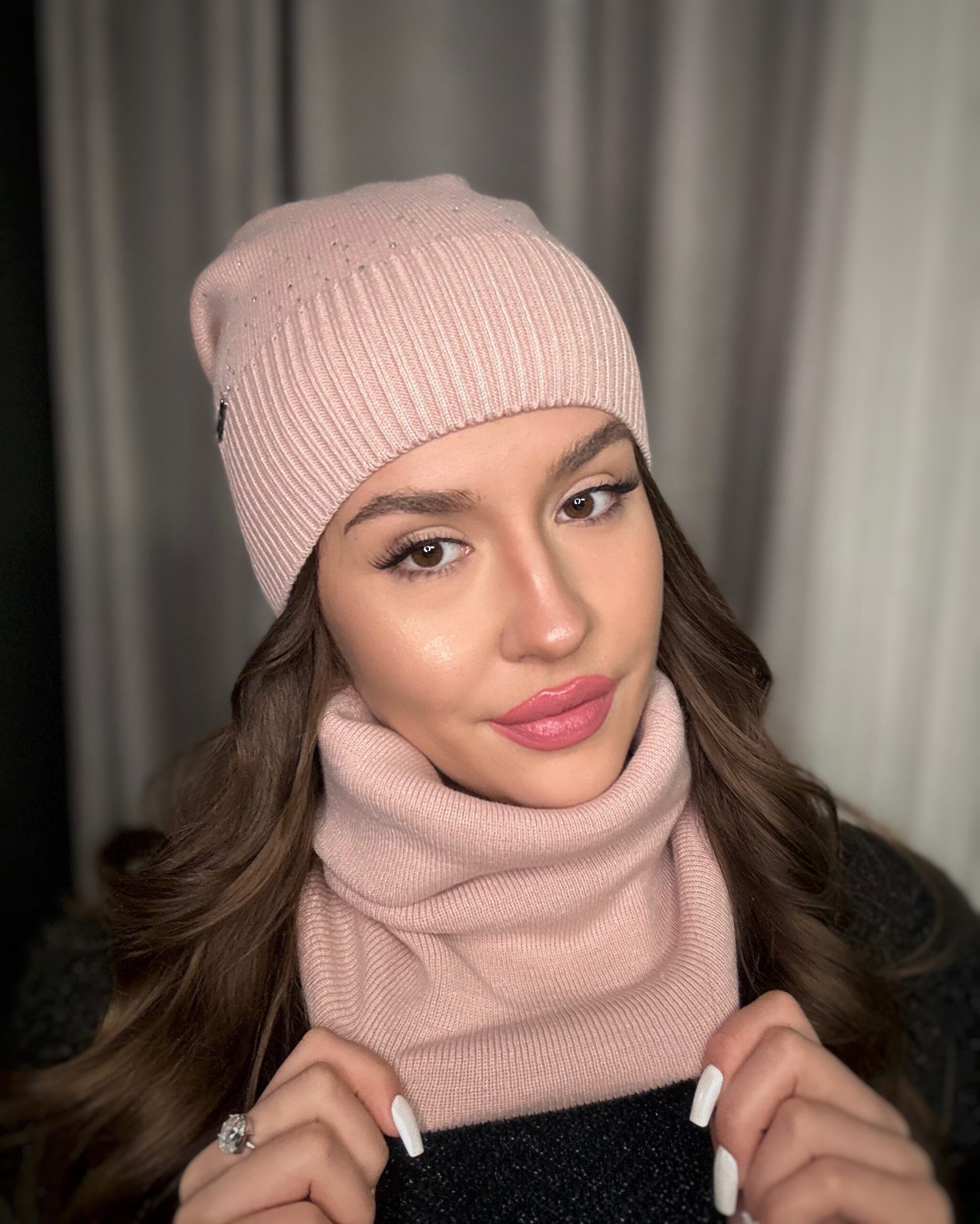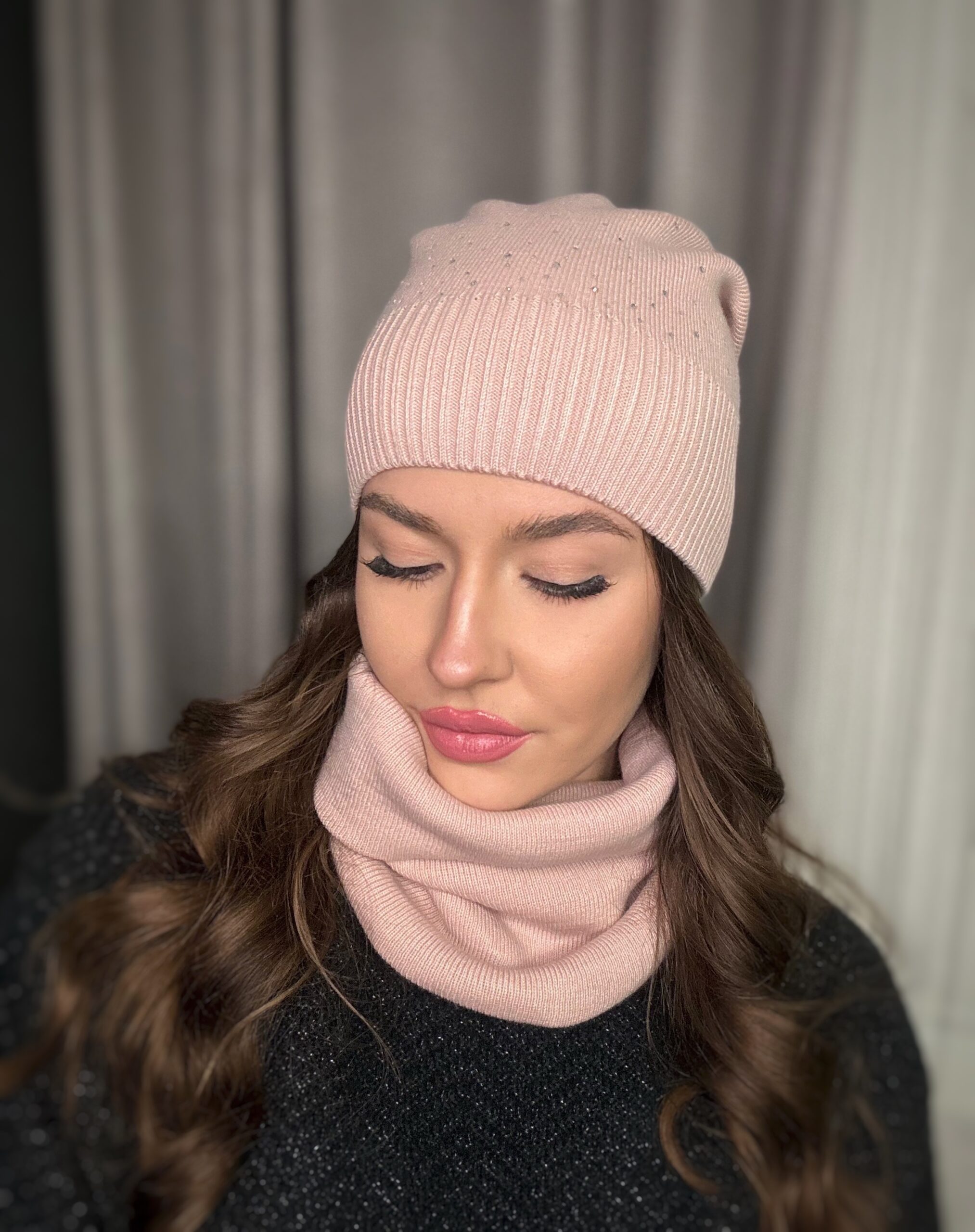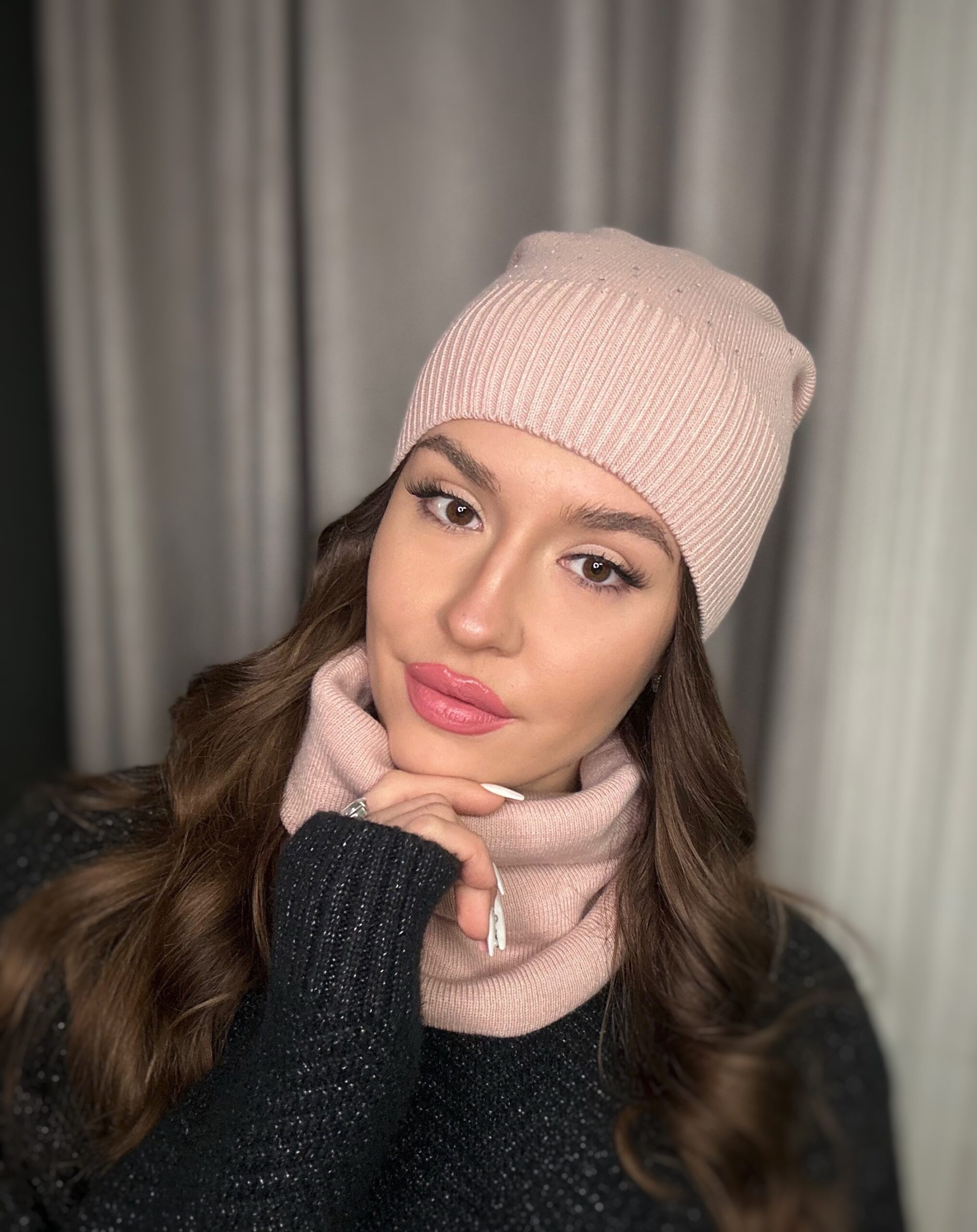 Czapka damska kobieca modna elegancka ciepła wiosna jesień beanie zgaszona różowa 2921