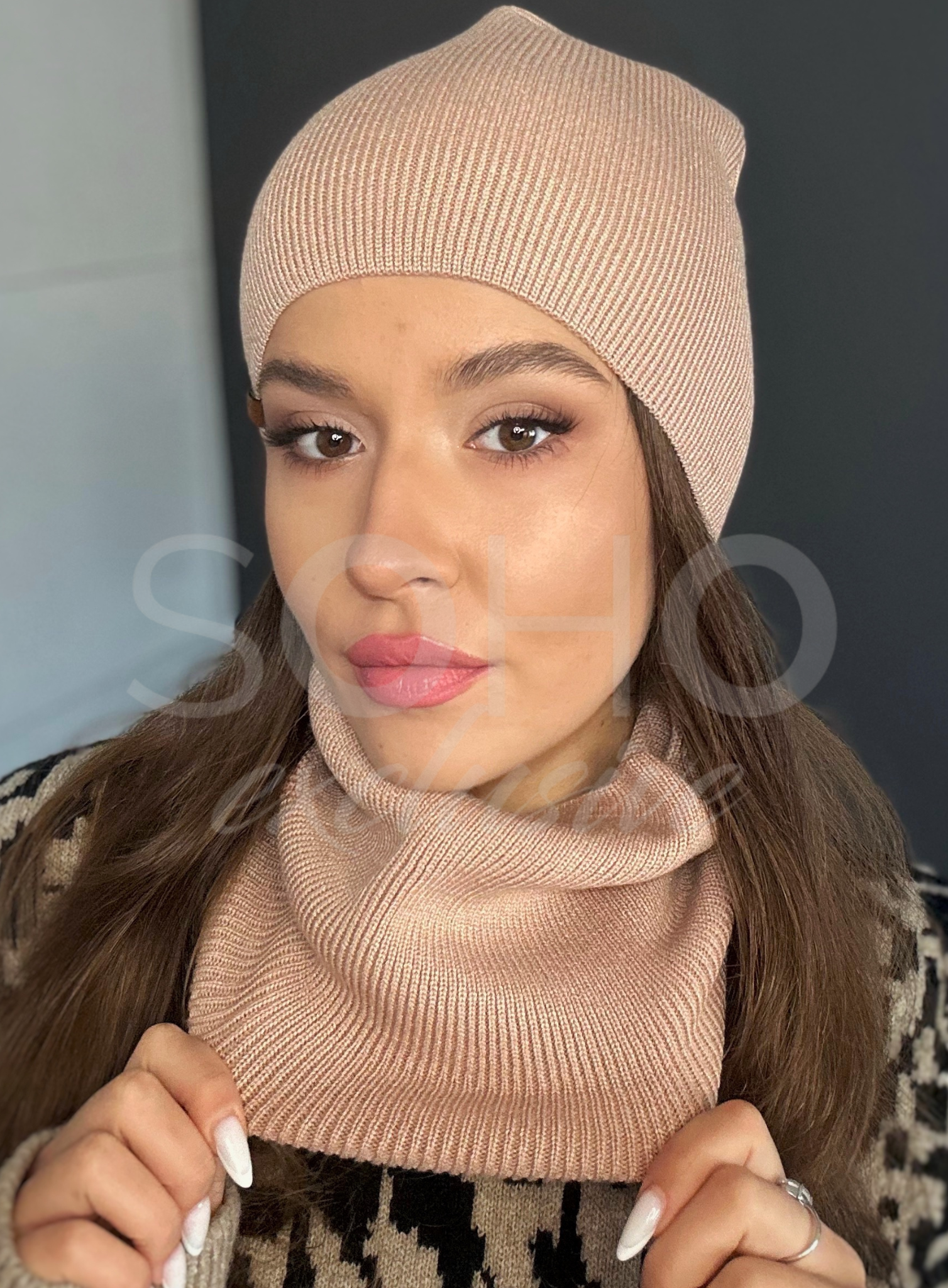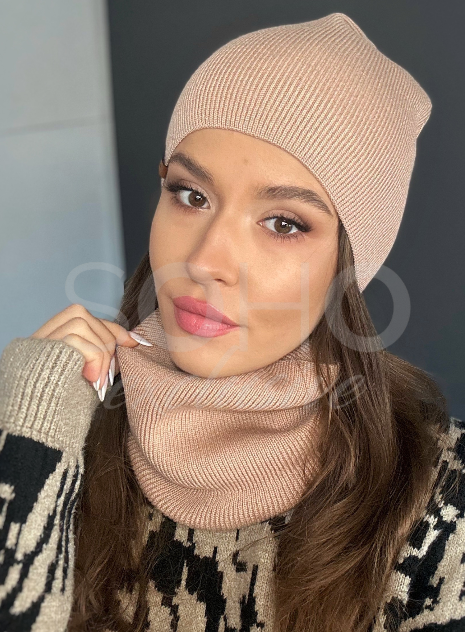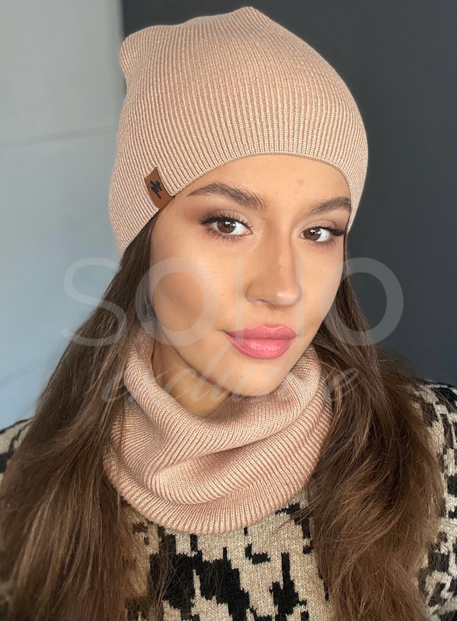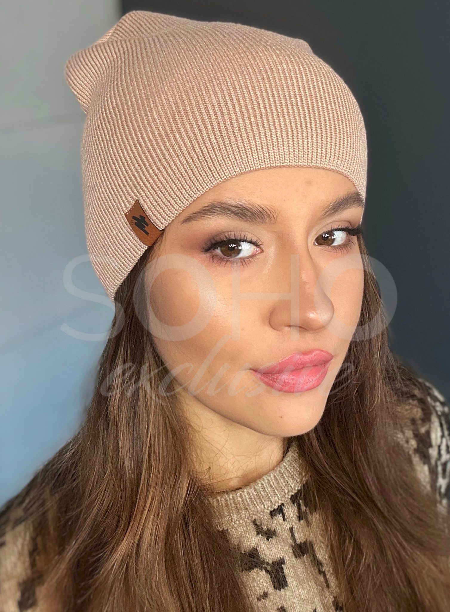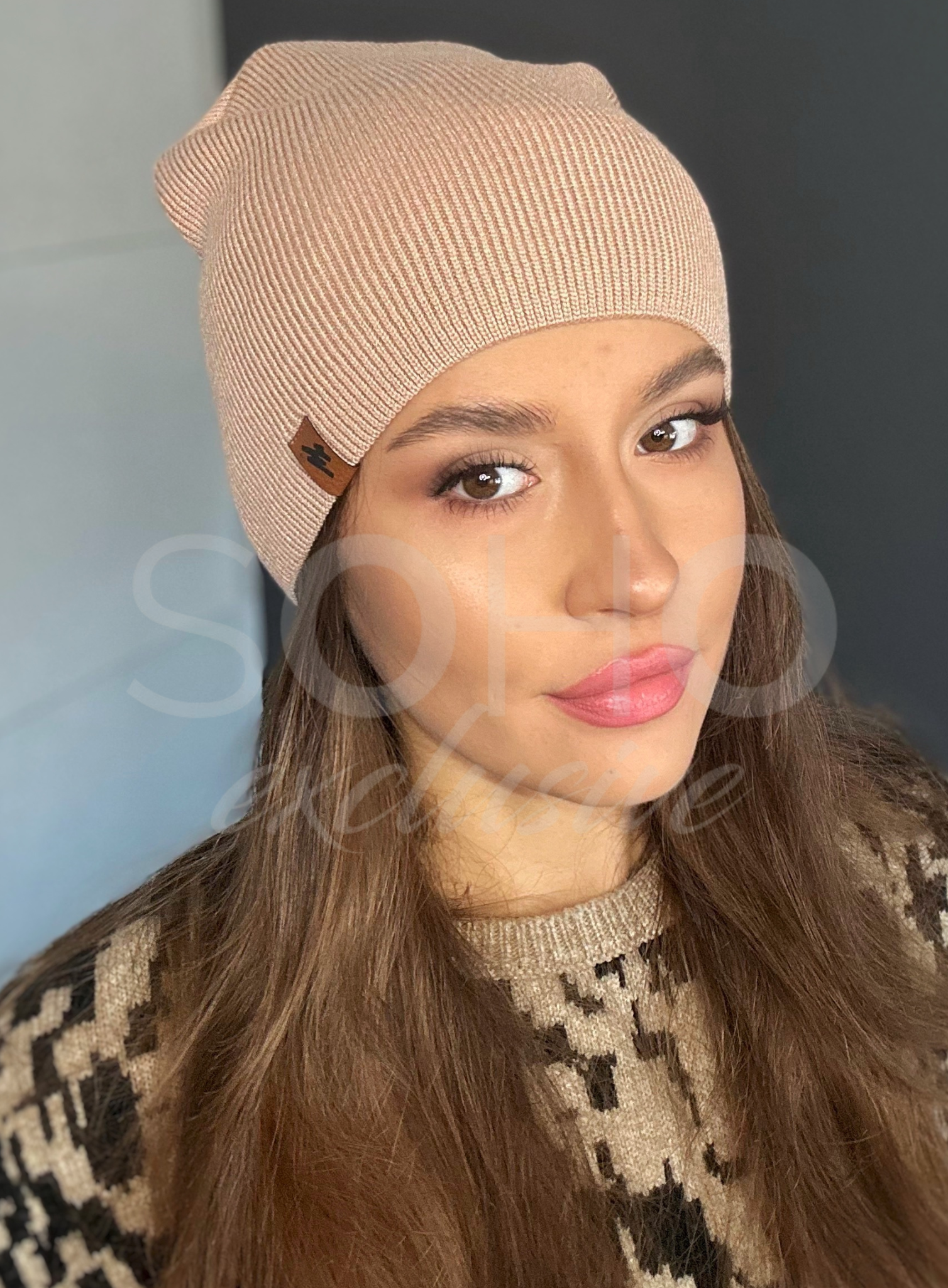 Czapka damska męska beanie jesień zima wiosna prążkowana uniseks beżowa 3020