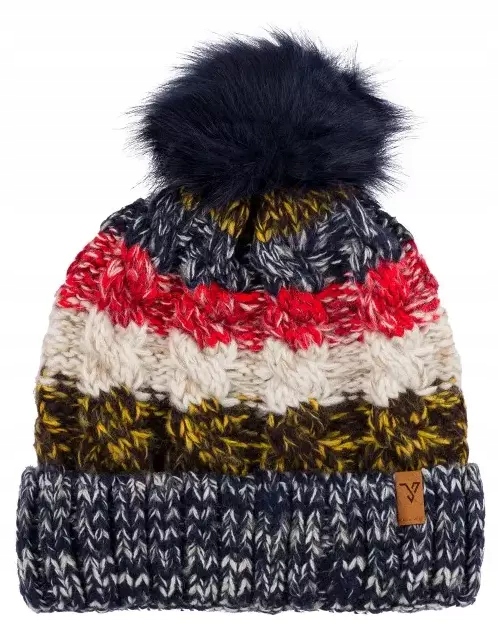 Czapka typu beanie/krasnal, wywijana, delikatnie opadająca, z fikuśnym pomponem i z eleganckim logowaniem.