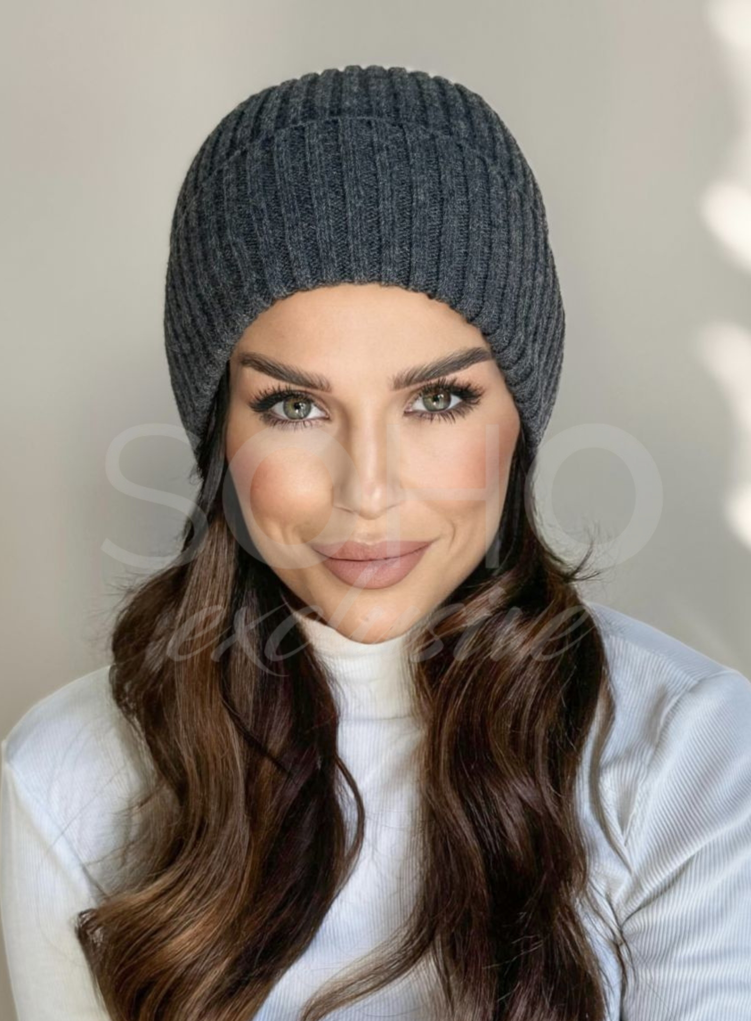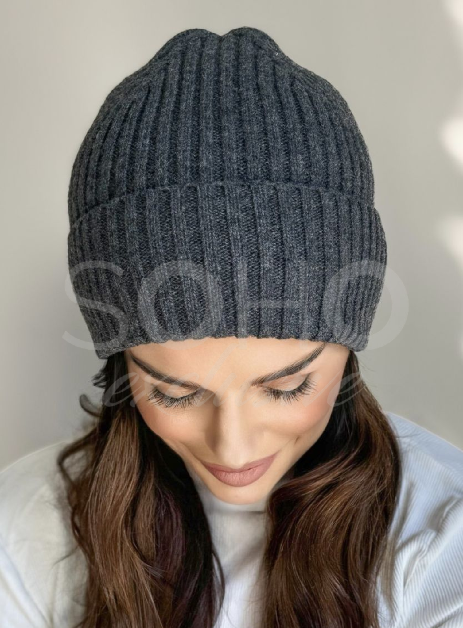 Czapka damska męska młodzieżowa jesień wiosna modna wełniana grafitowa 2985