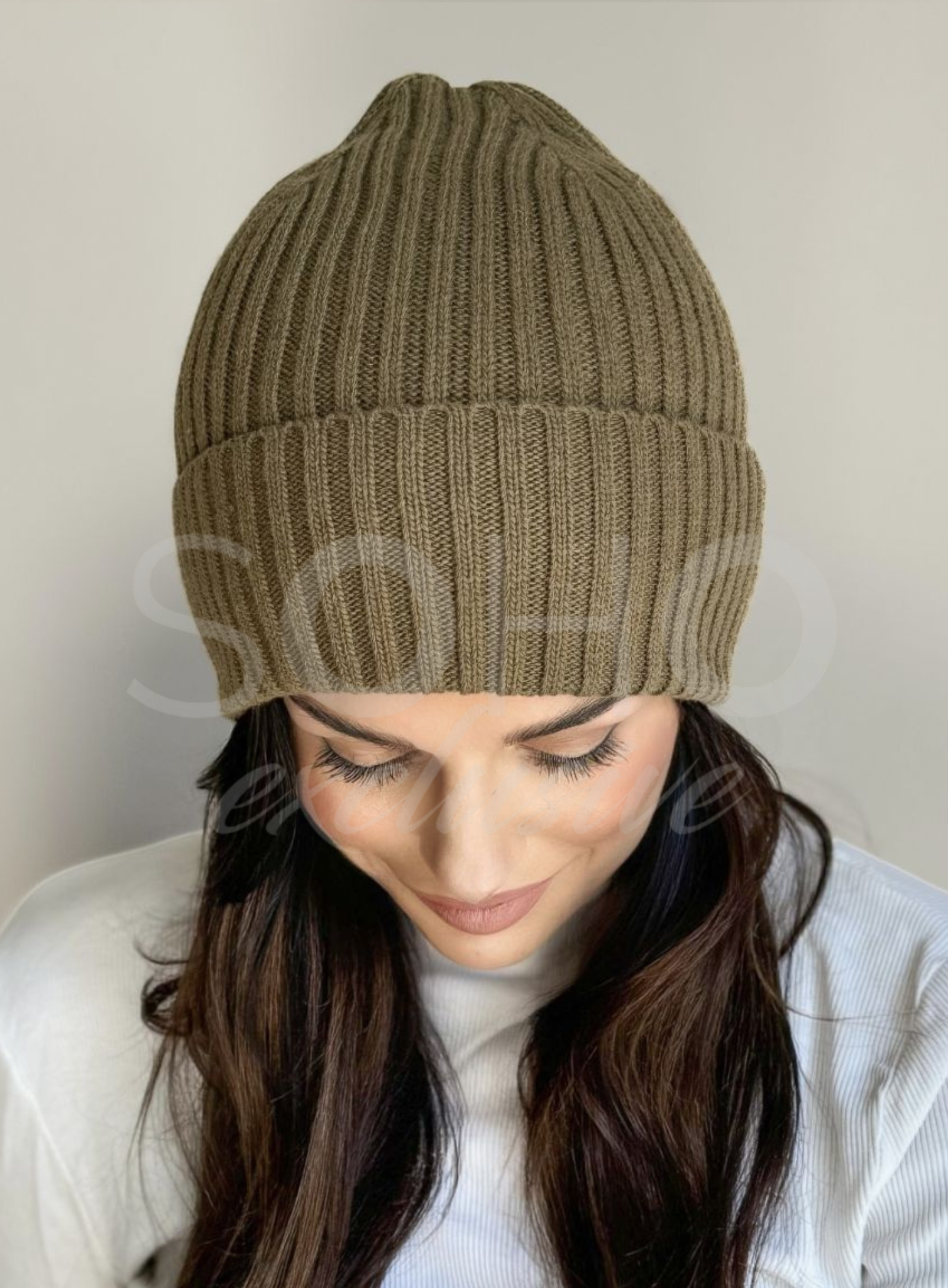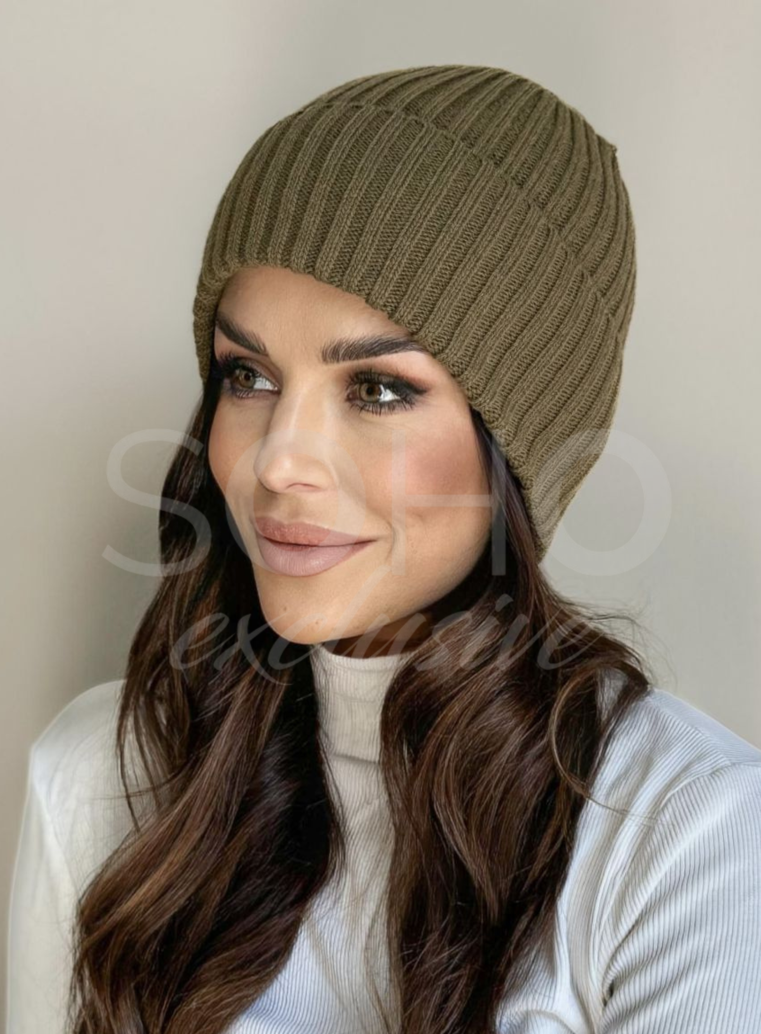 Czapka damska męska młodzieżowa jesień wiosna modna wełniana khaki 2985