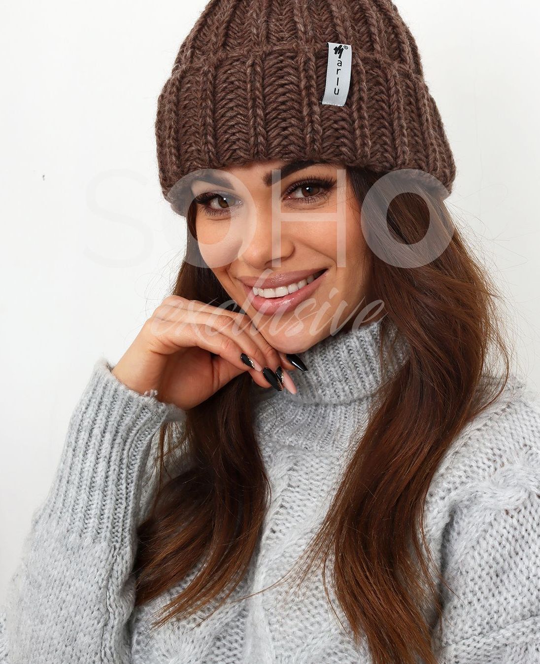 Czapka damska modna wygodna ciepła zimowa czekoladowa 2252