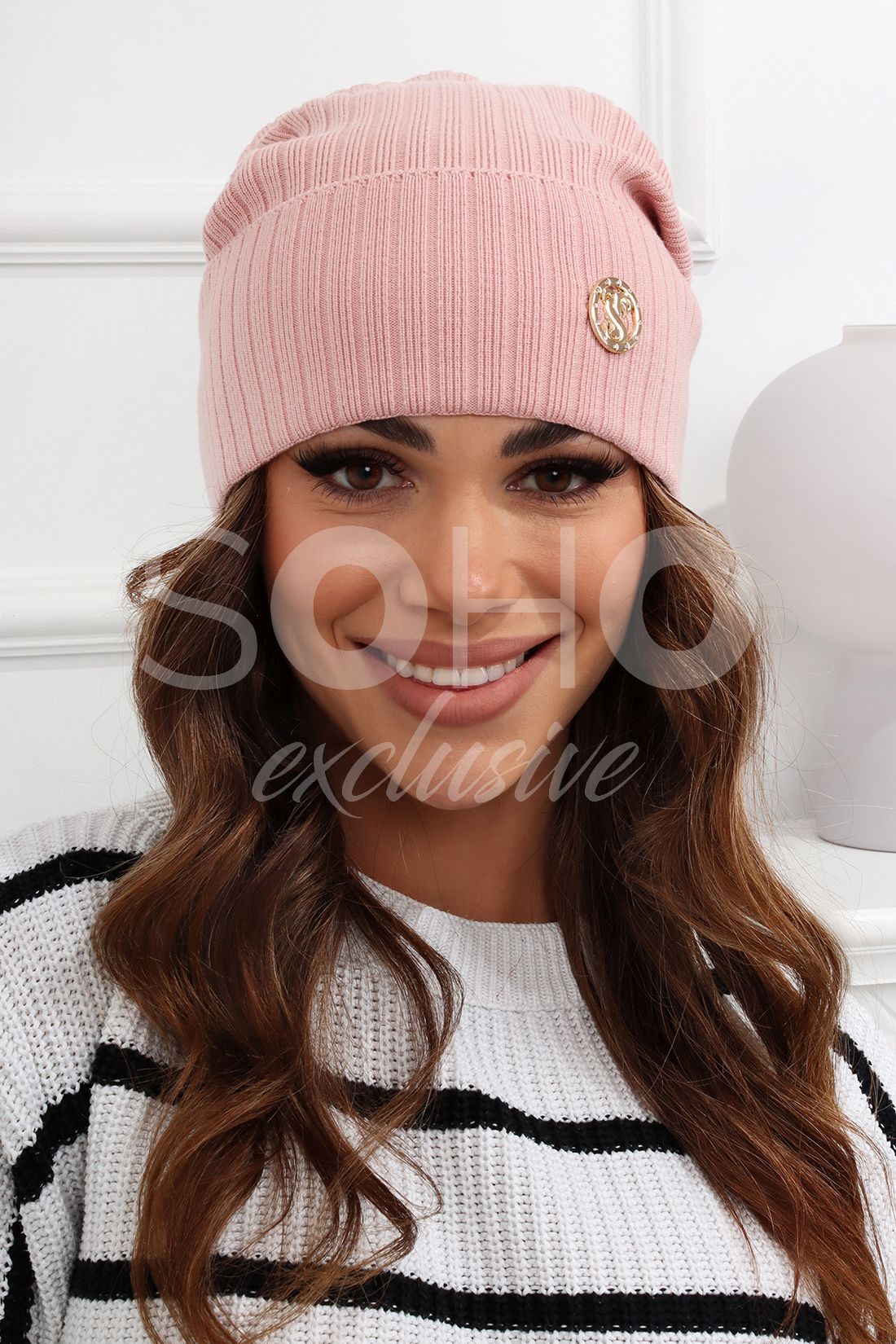 Czapka damska modna zimowa ciepła na zimę sportowa beanie różowa 2747