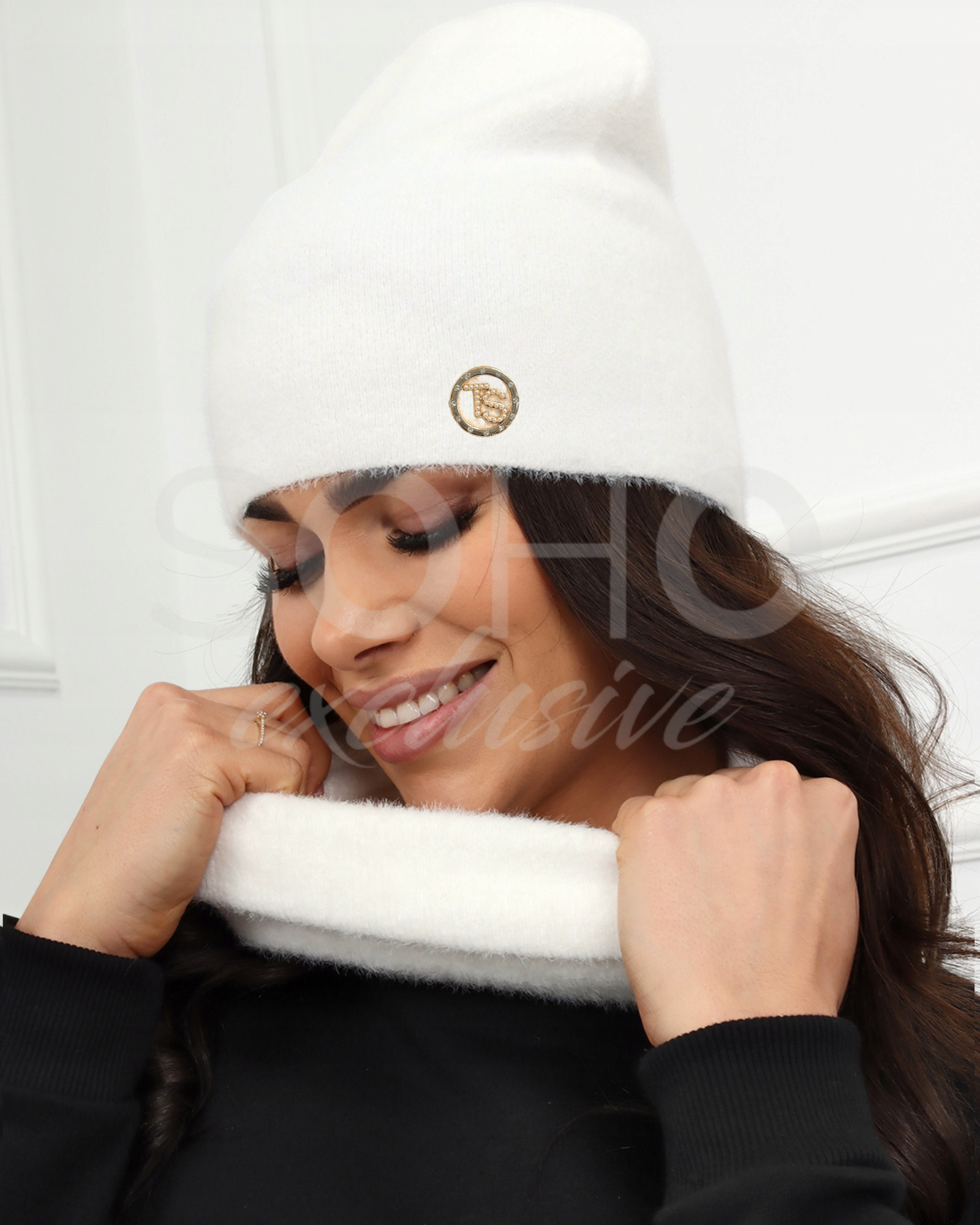 Czapka typu beanie/krasnal, delikatnie opadająca.